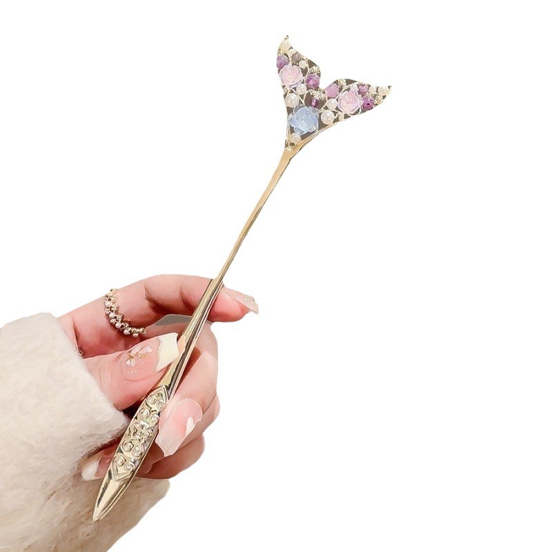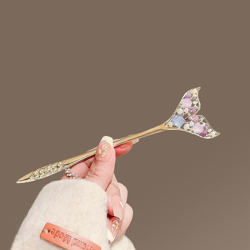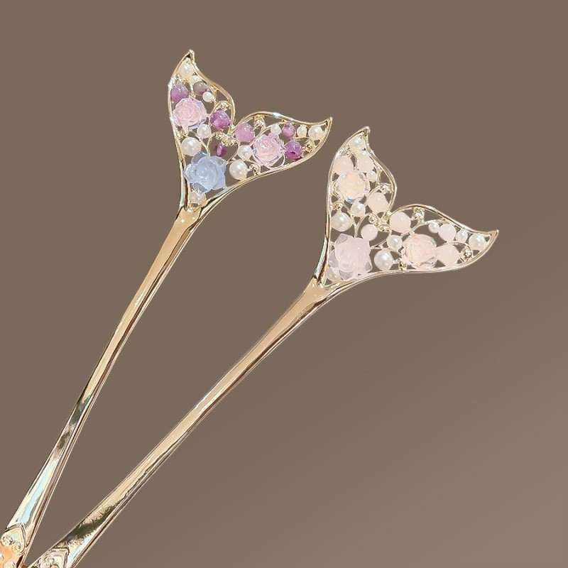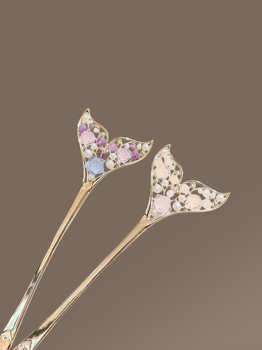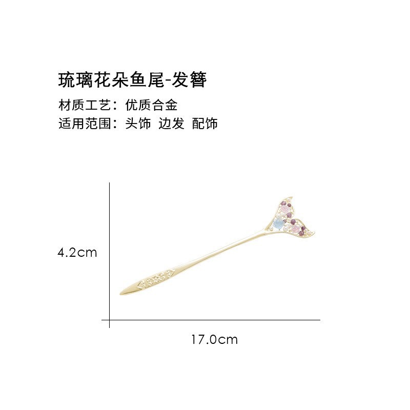 新中式琉璃花朵鱼尾发簪小众设计感发钗后脑勺高级感盘发簪子头饰