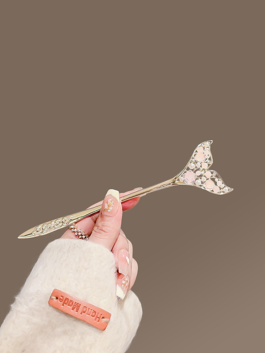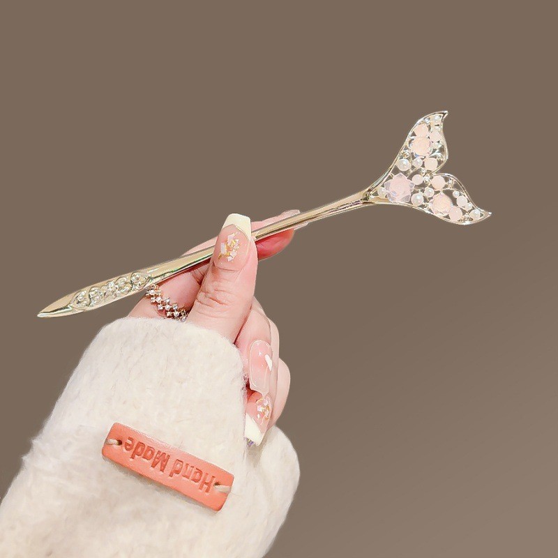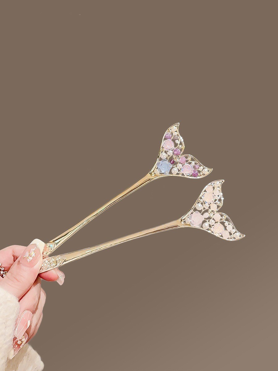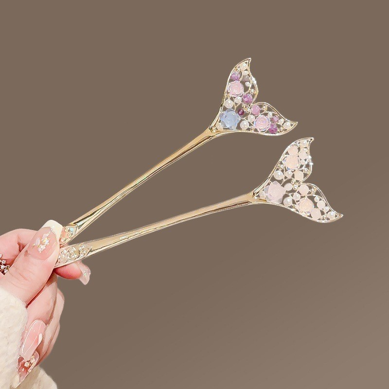 新中式琉璃花朵鱼尾发簪小众设计感发钗后脑勺高级感盘发簪子头饰