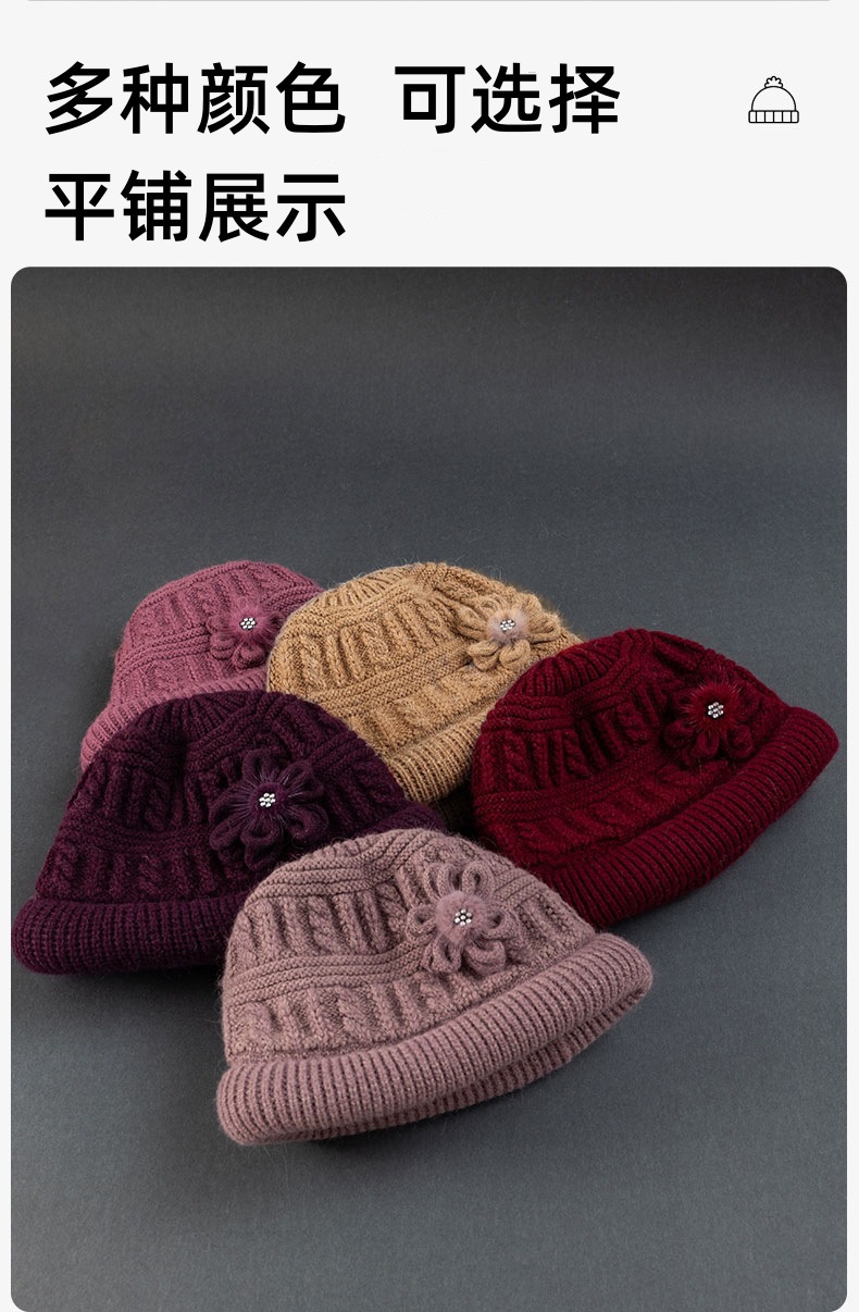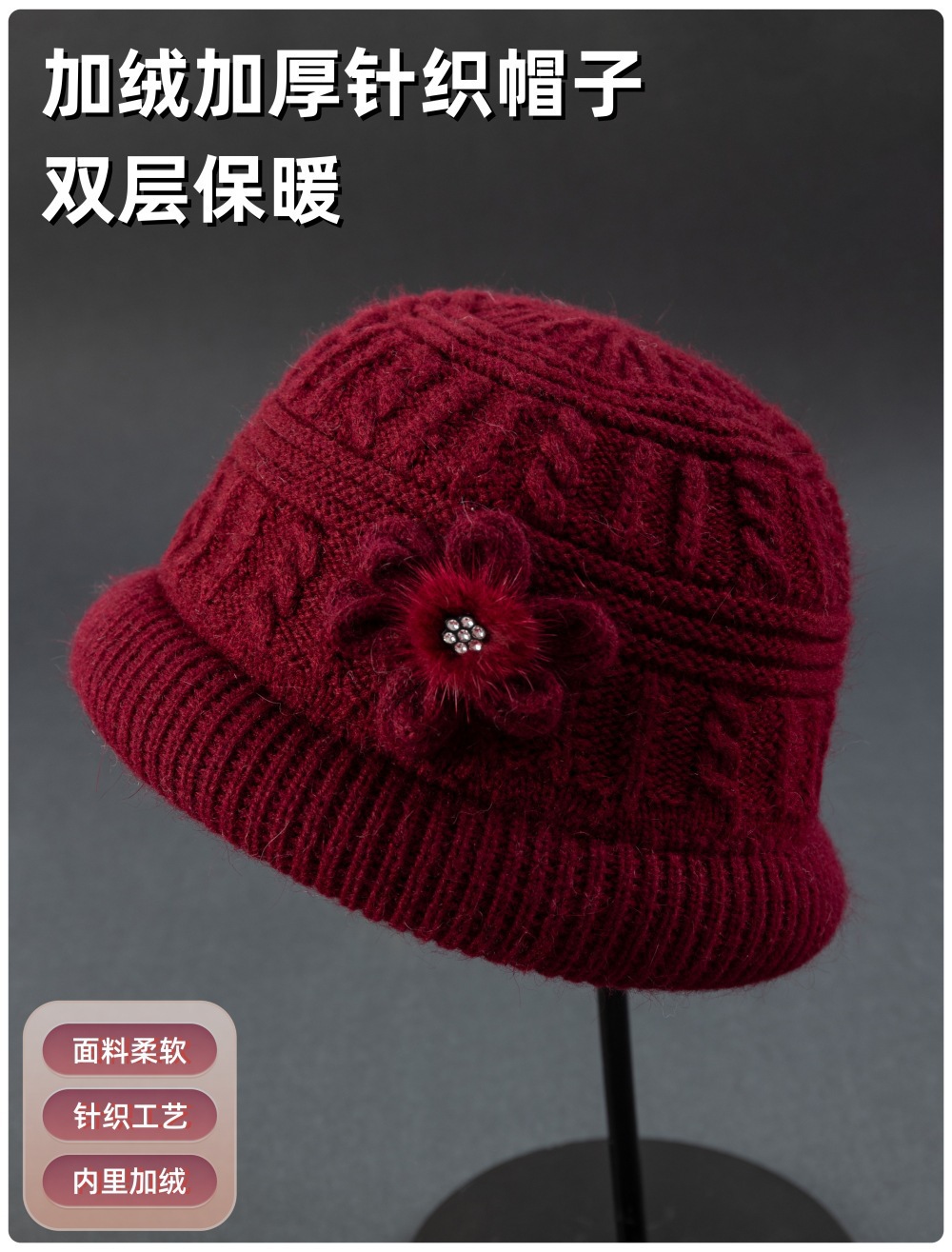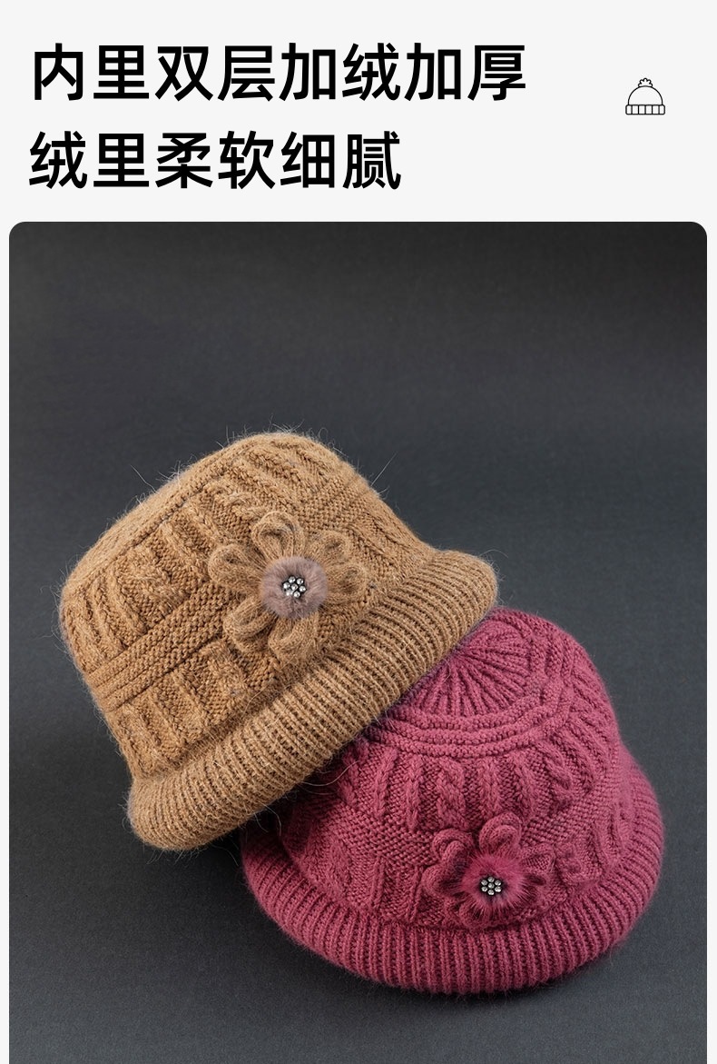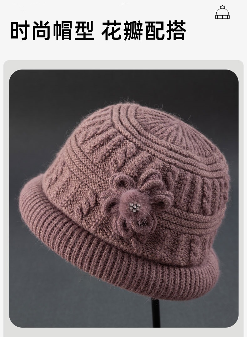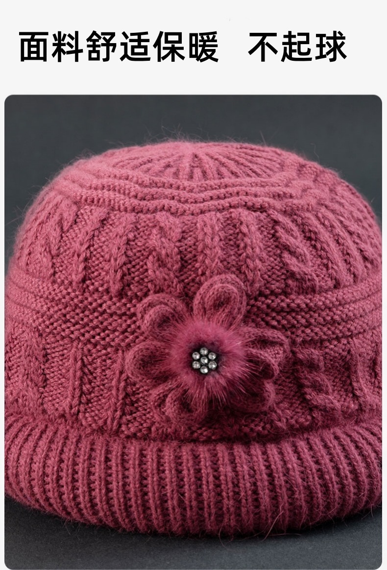 中老年人秋冬季妈妈帽子围巾套加绒加厚保暖毛线针织帽女士盆帽冬