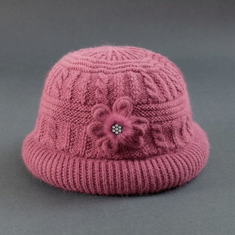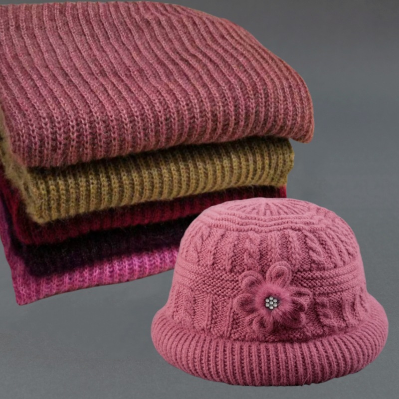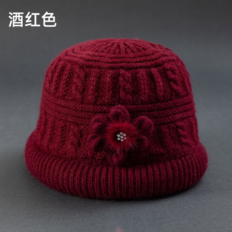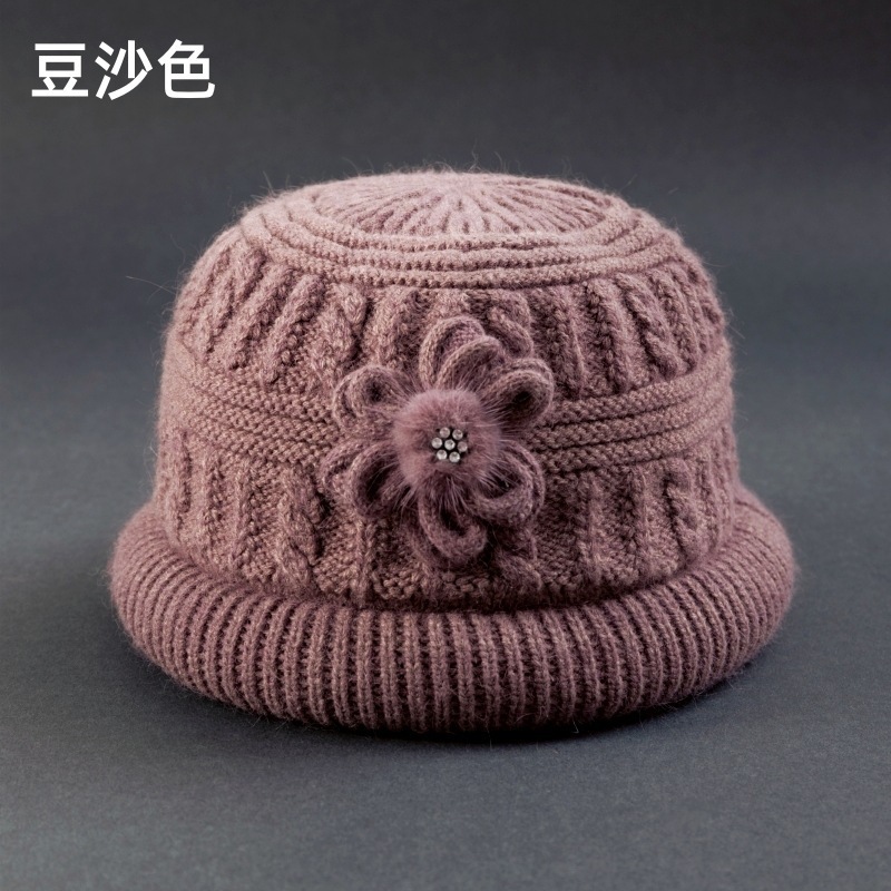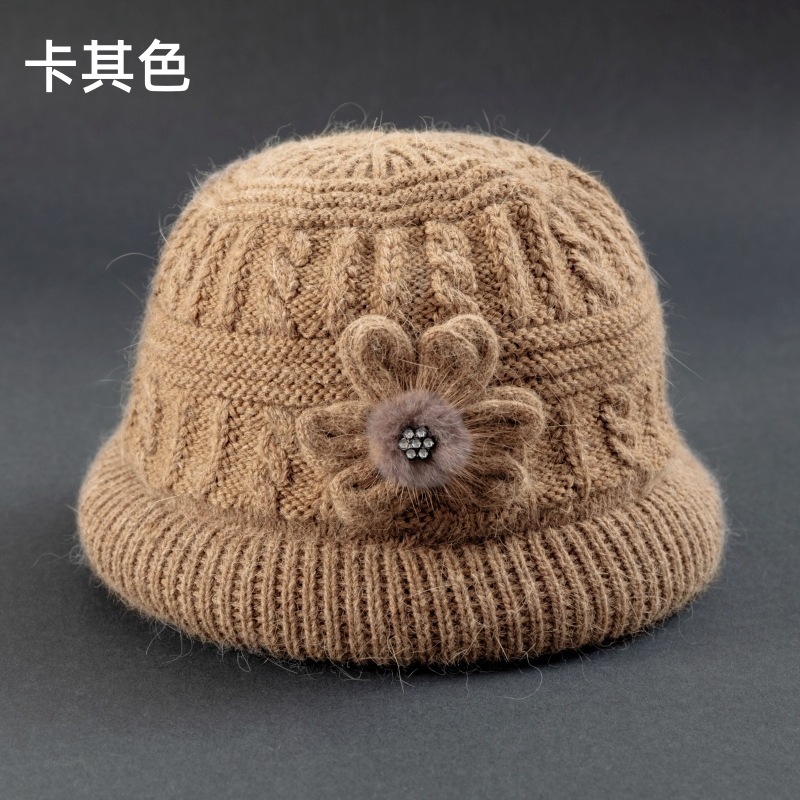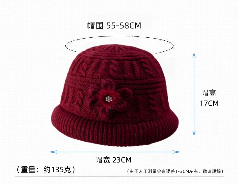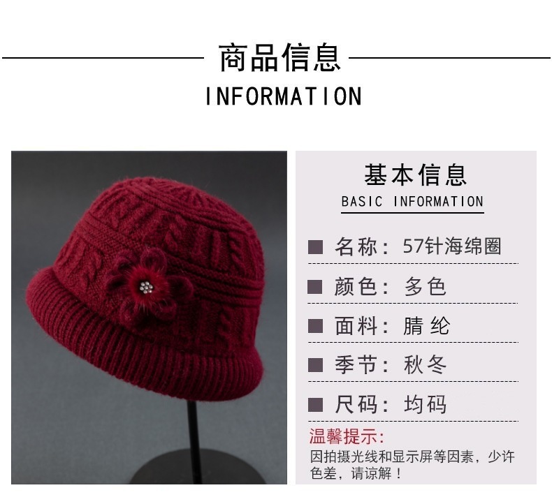 中老年人秋冬季妈妈帽子围巾套加绒加厚保暖毛线针织帽女士盆帽冬