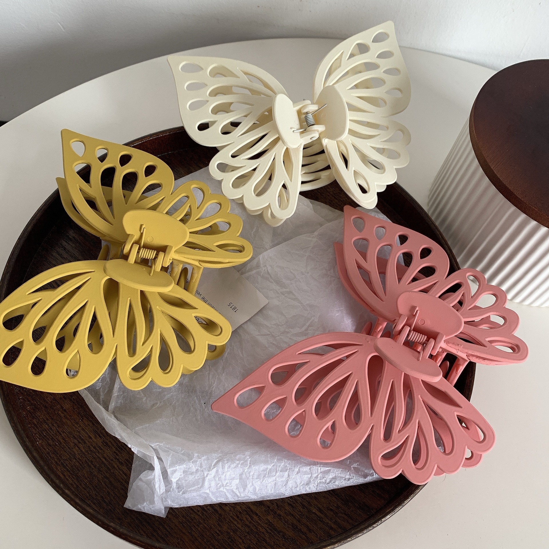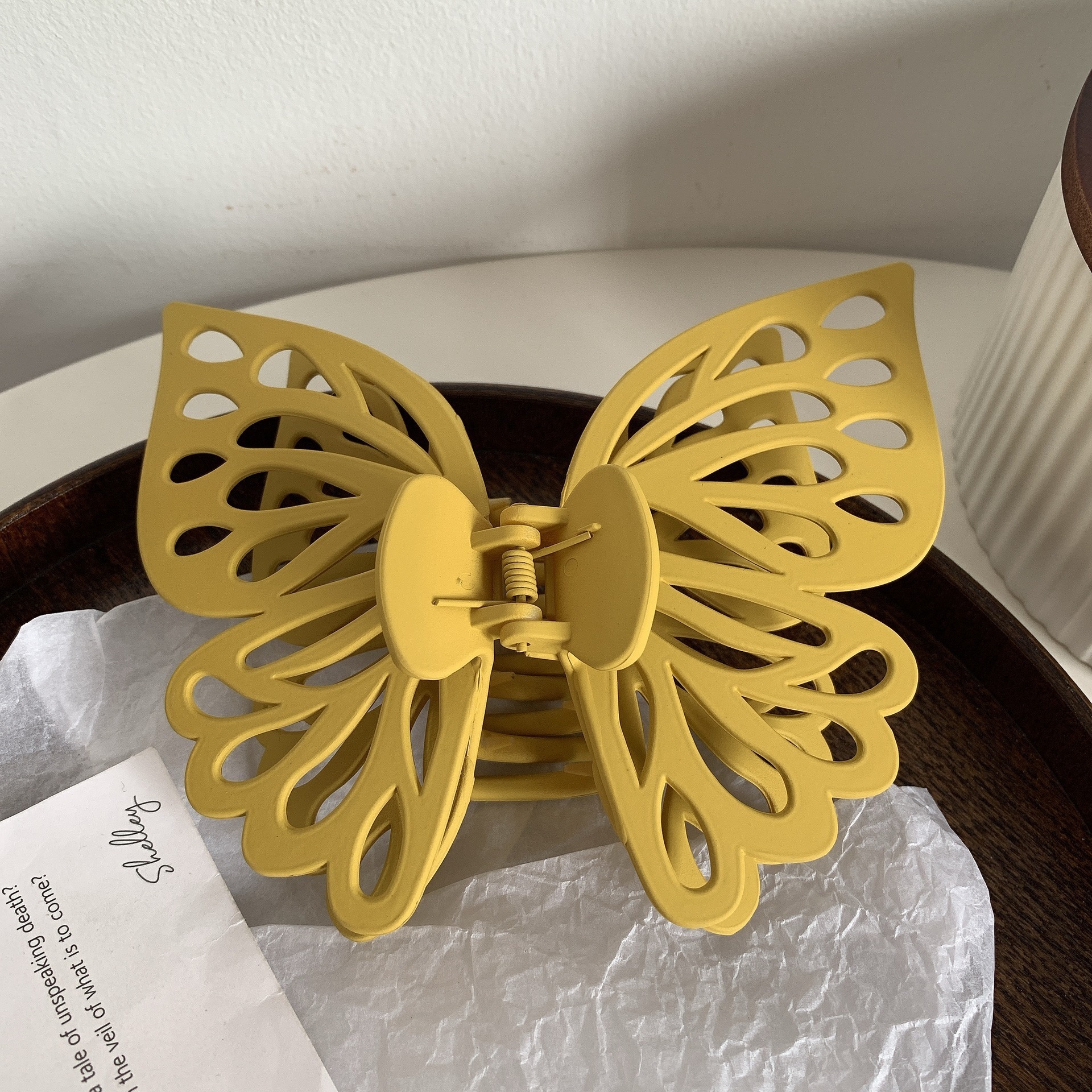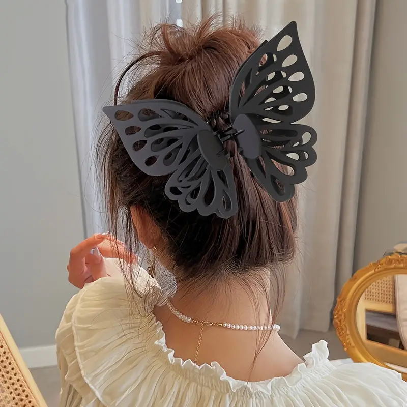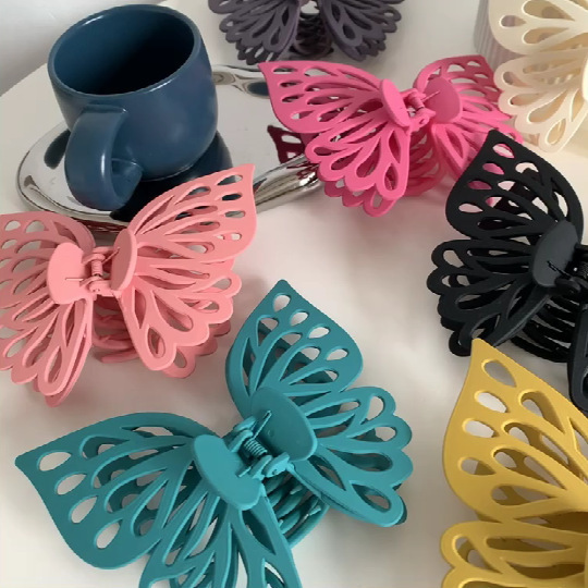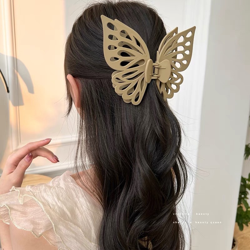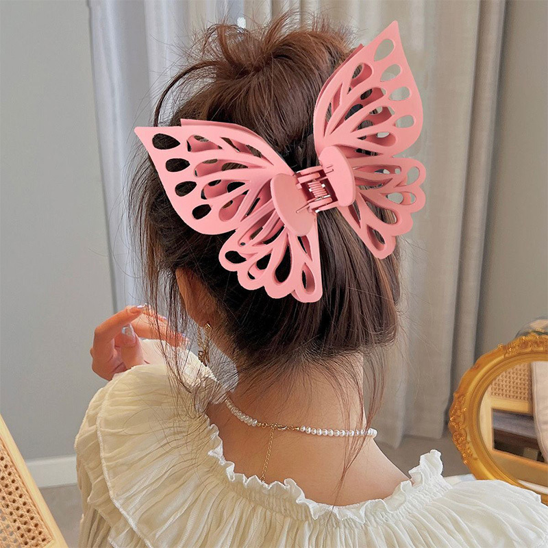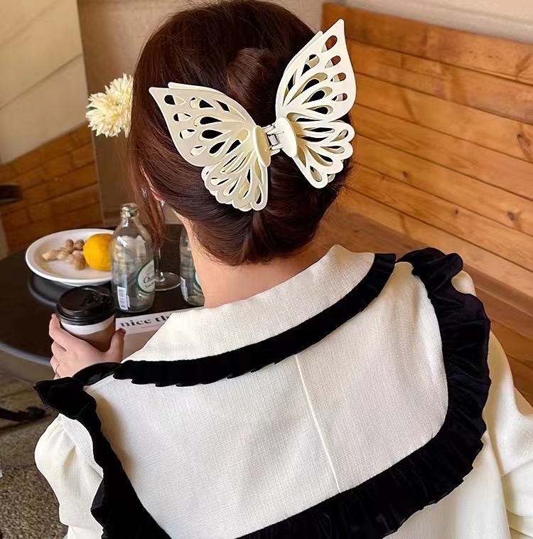 韩版蝴蝶抓夹大号双层镂空蝴蝶发夹气质鲨鱼夹磨砂夹子女头饰