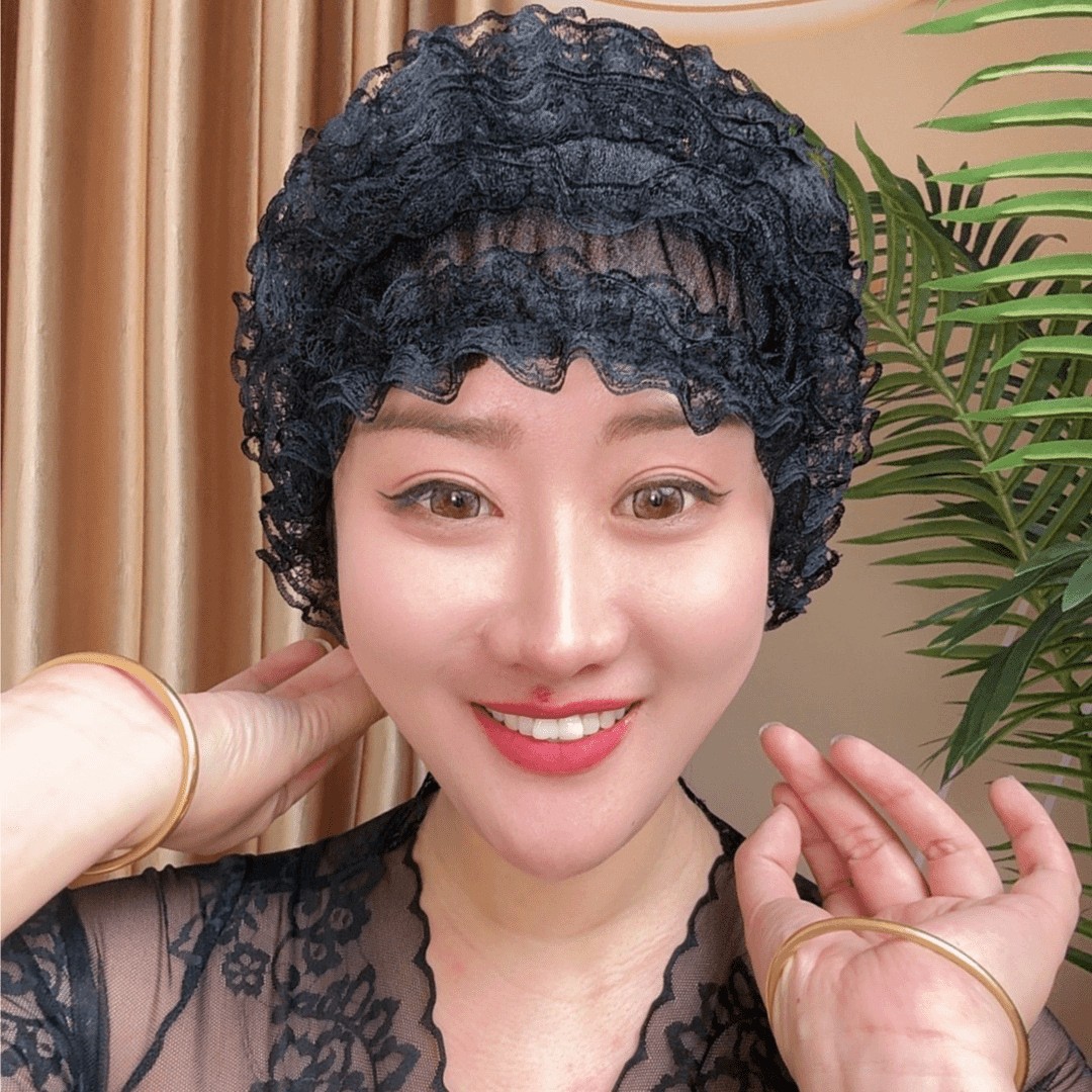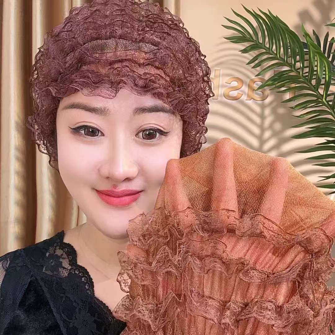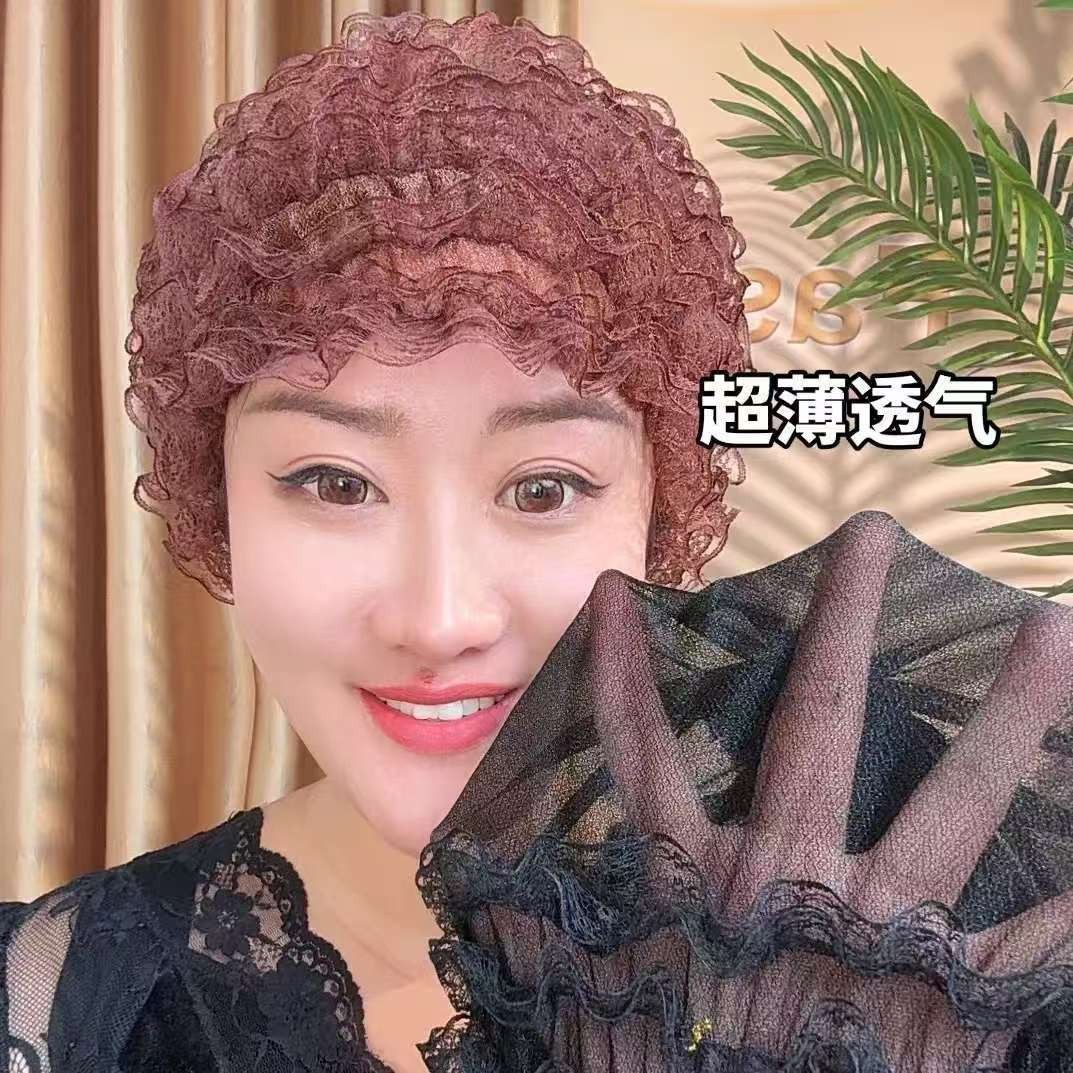 四季漂亮美人帽纱夏季弹力帽包头蕾丝白发家居时尚新款居家女士帽