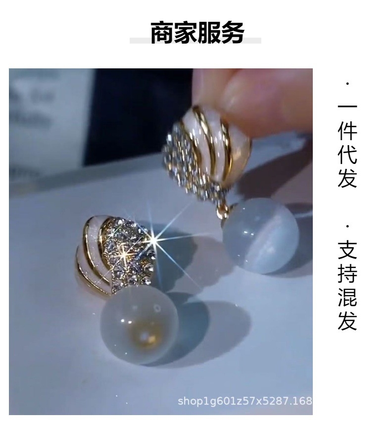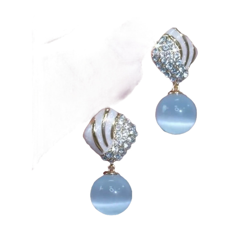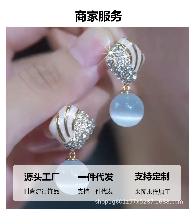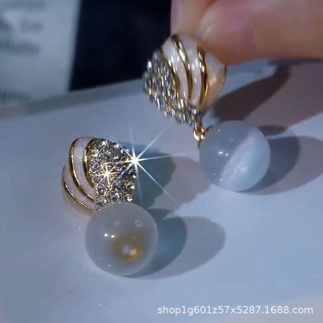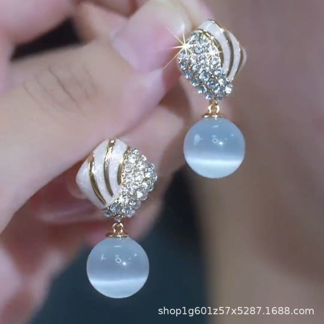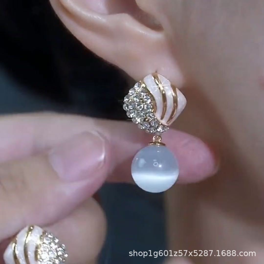 2025新款白色猫猫石耳环女气质耳钉高级感法式复古耳饰