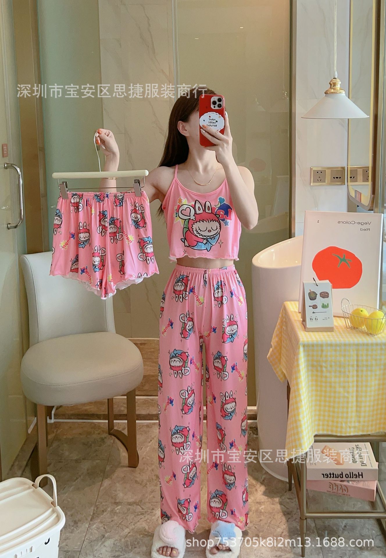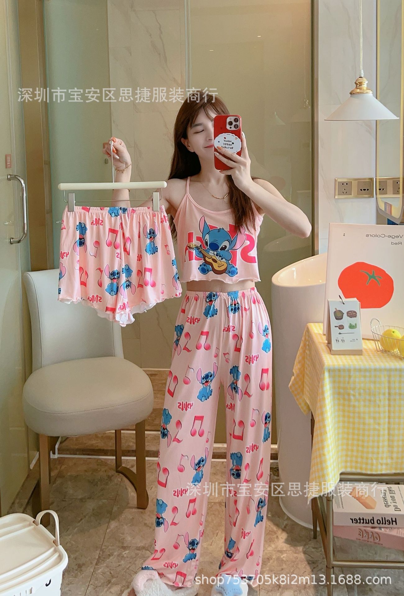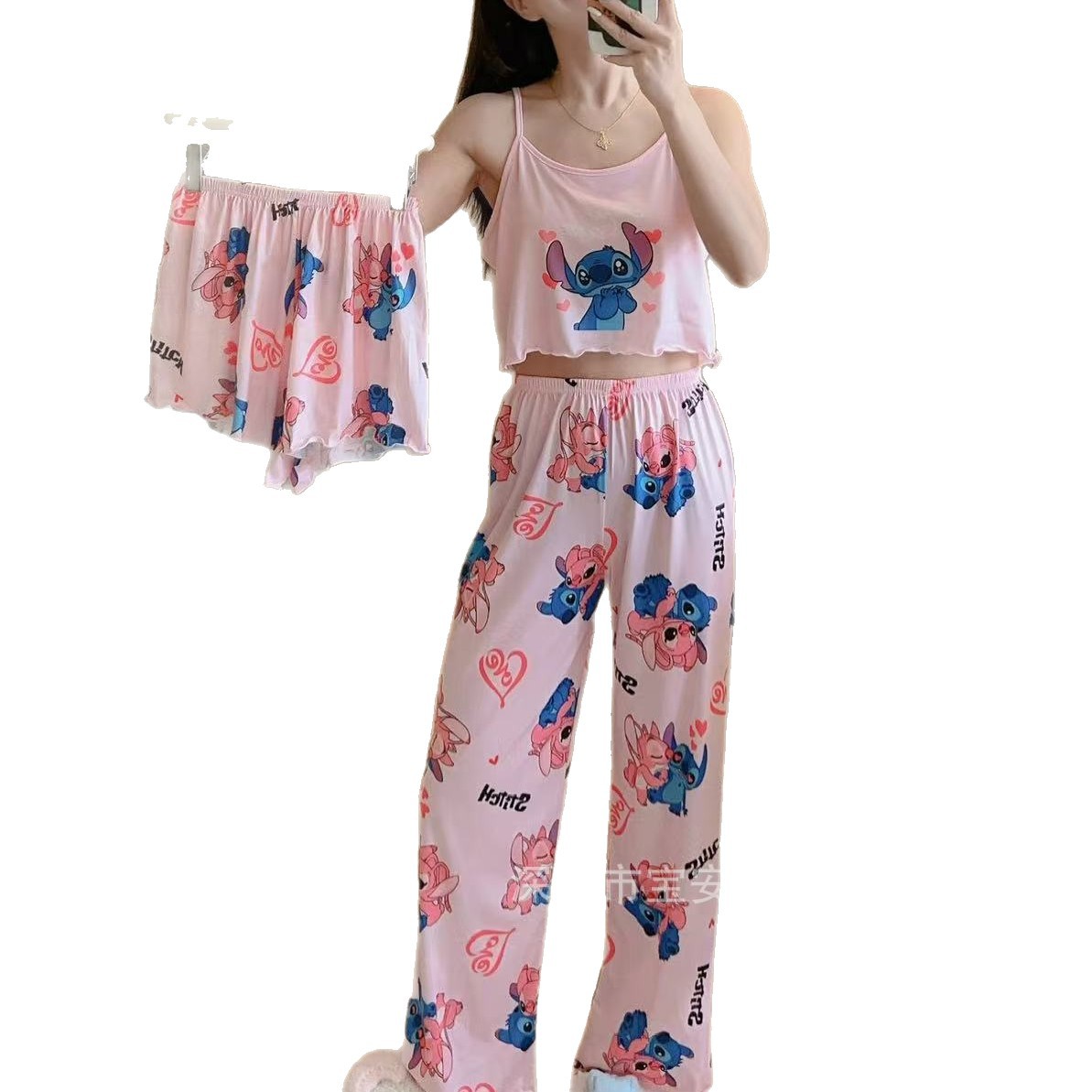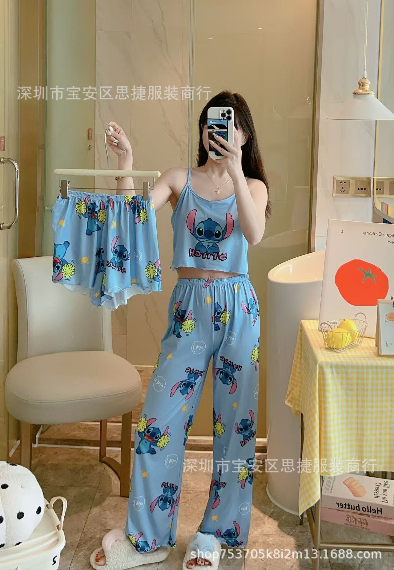 pajamas新款欧美跨境爆品睡衣女夏三件套吊带史迪仔拉布布家居服