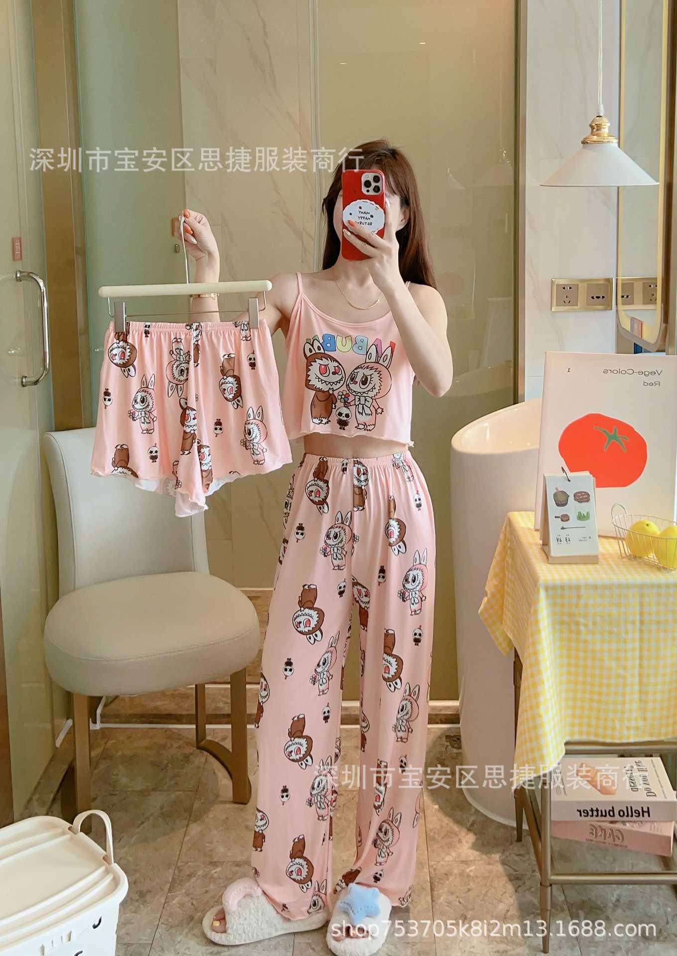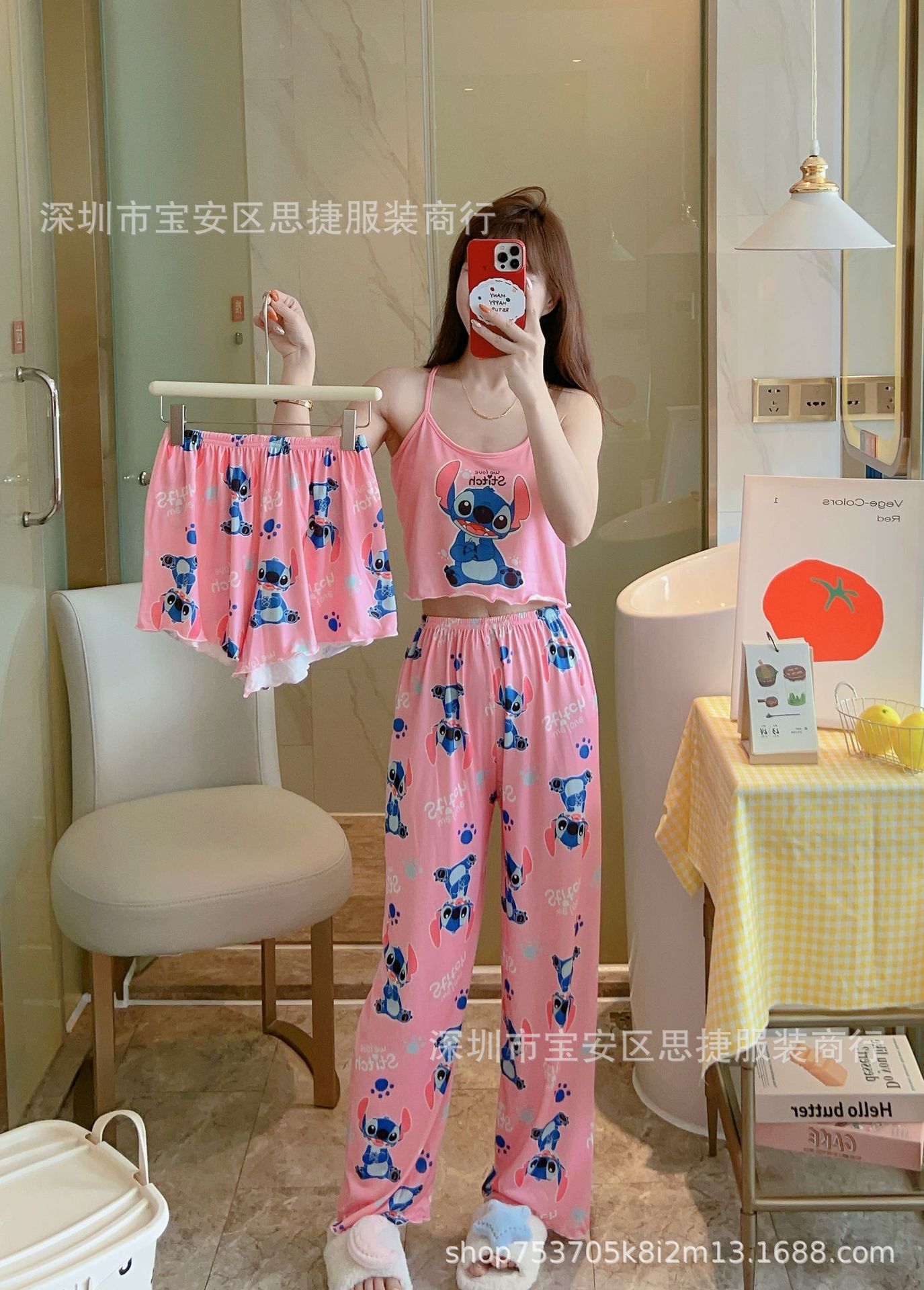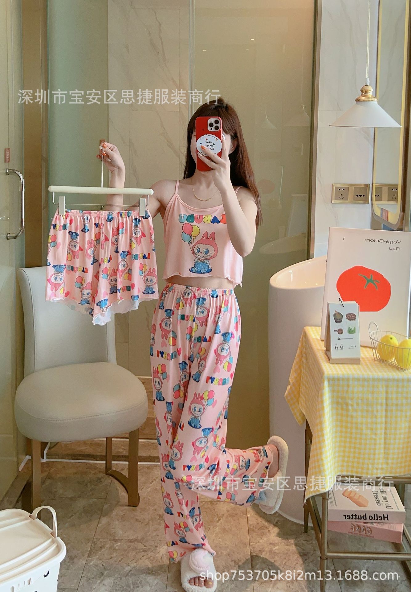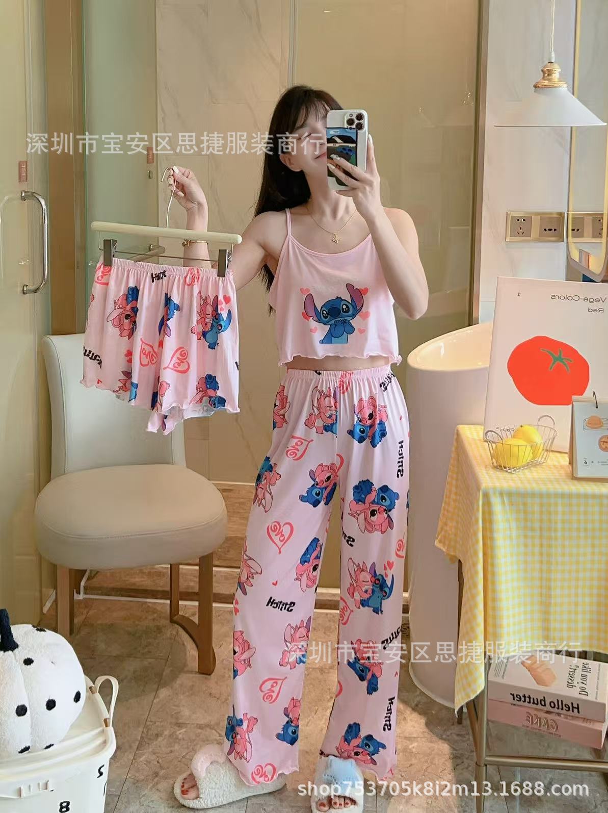 pajamas新款欧美跨境爆品睡衣女夏三件套吊带史迪仔拉布布家居服
