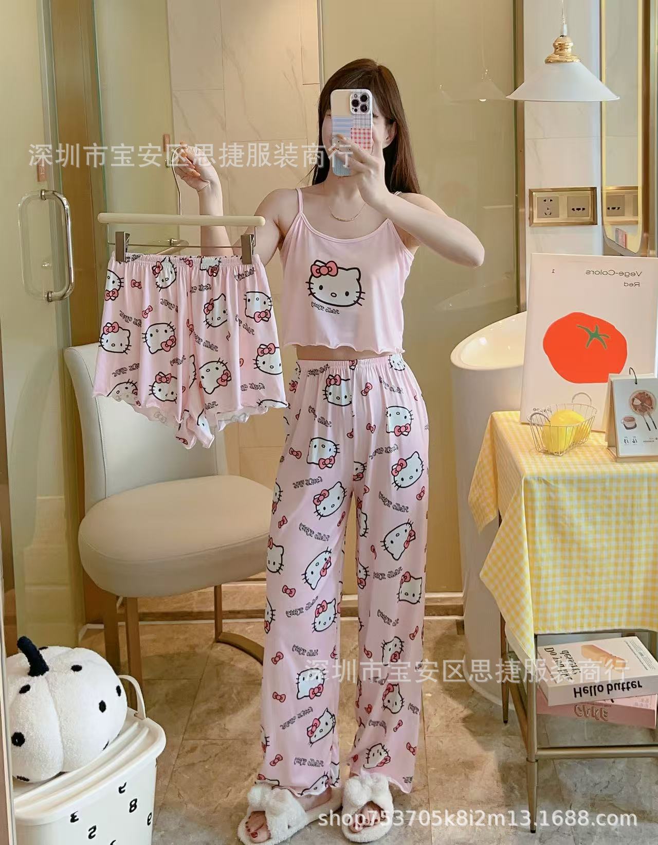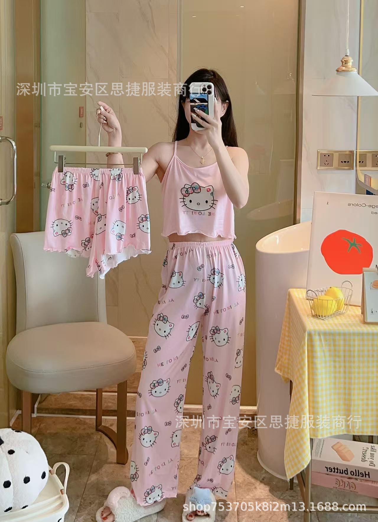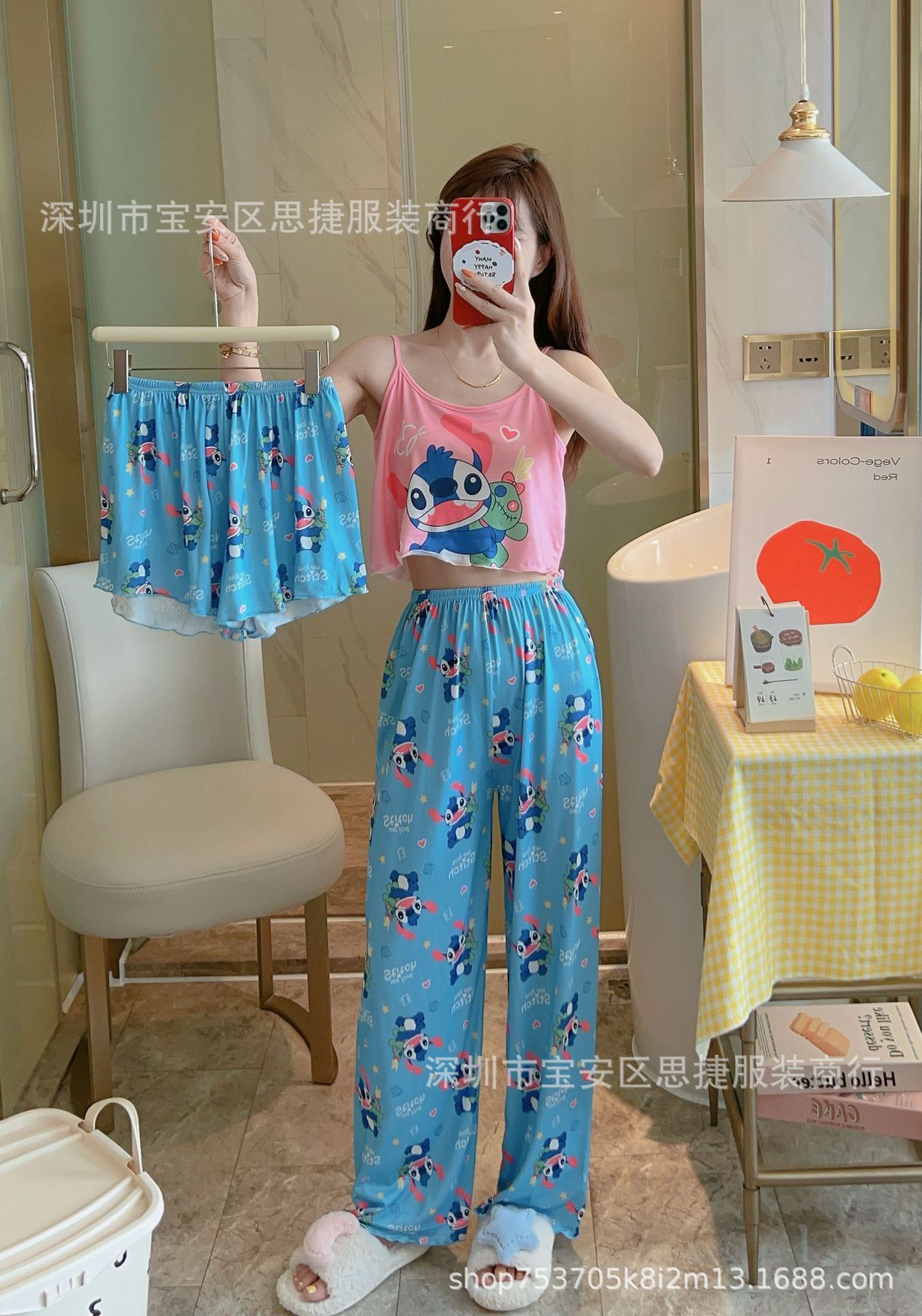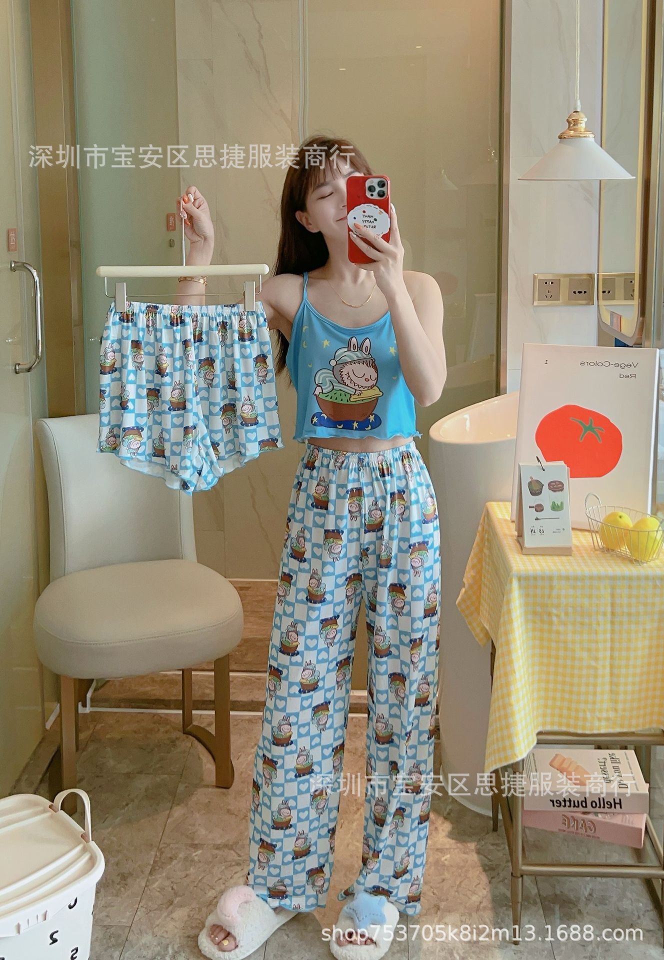 pajamas新款欧美跨境爆品睡衣女夏三件套吊带史迪仔拉布布家居服