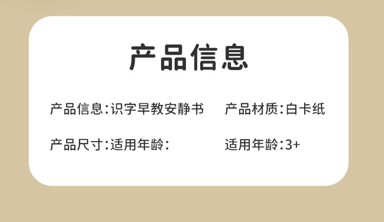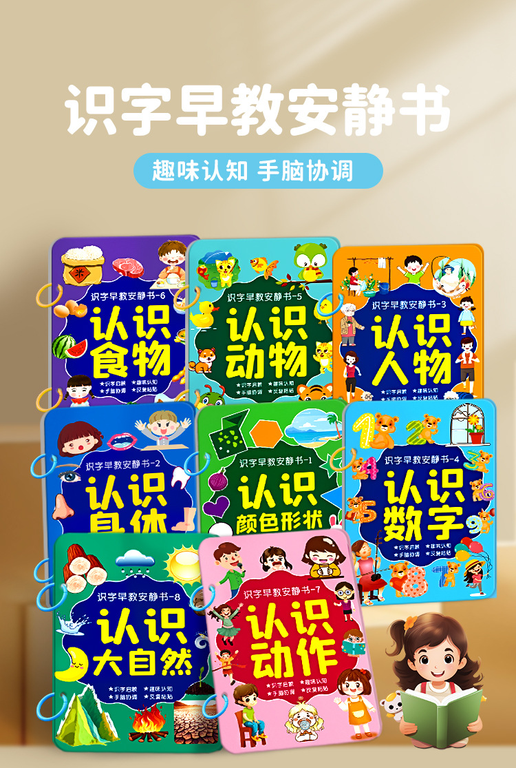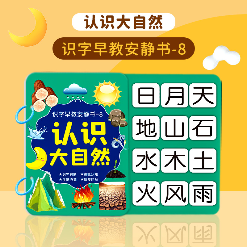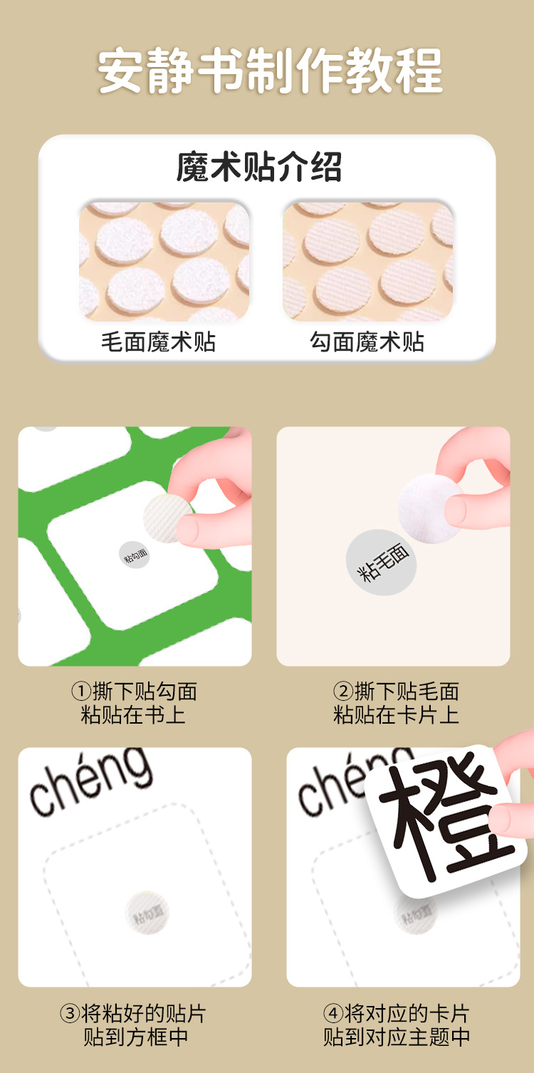 识字安静书3-6岁启蒙认字粘贴书游戏撕拉书幼儿早教儿童益智玩具