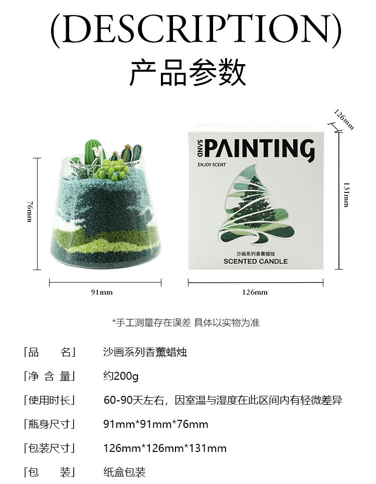 diy沙画香薰蜡烛礼盒手工活动儿童礼物摆件高级感圣诞节低温蜡烛