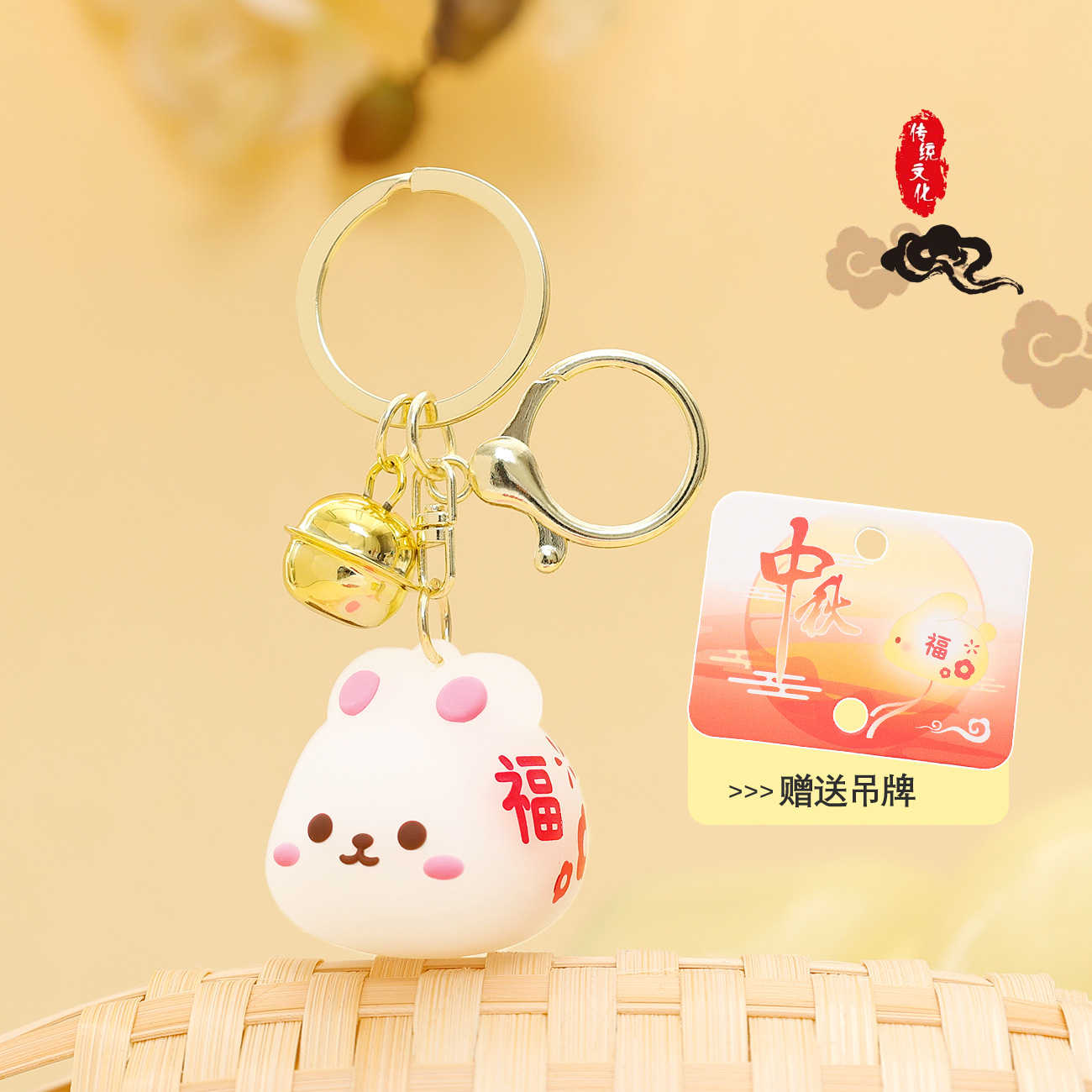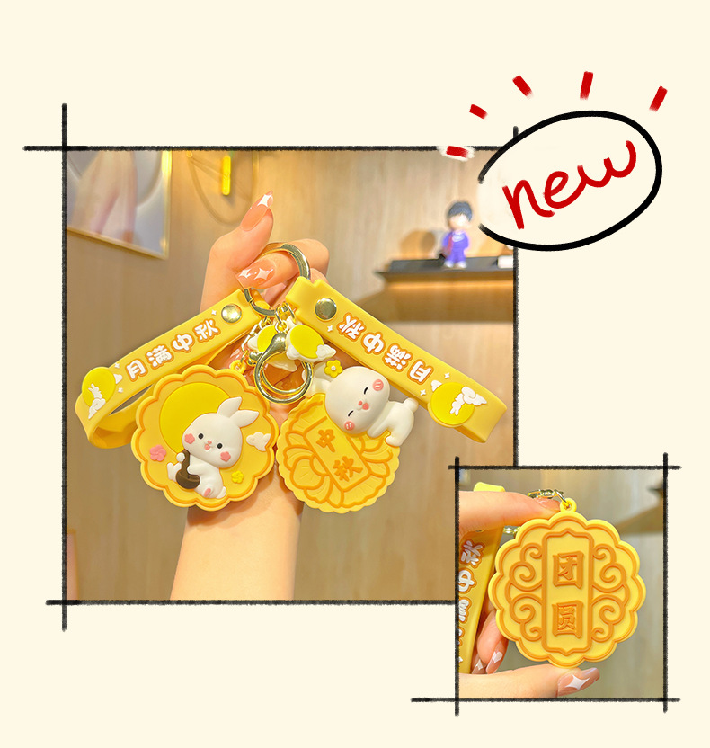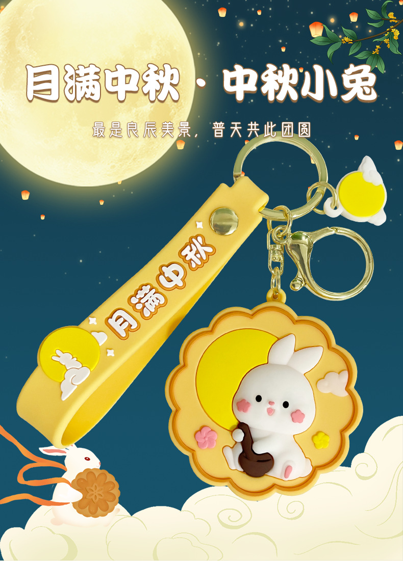 萌叙可爱卡通钥匙扣中秋节小兔钥匙链挂饰玉兔月饼挂件小礼品批发