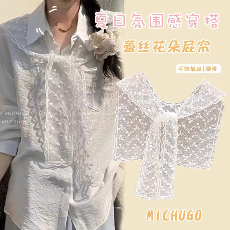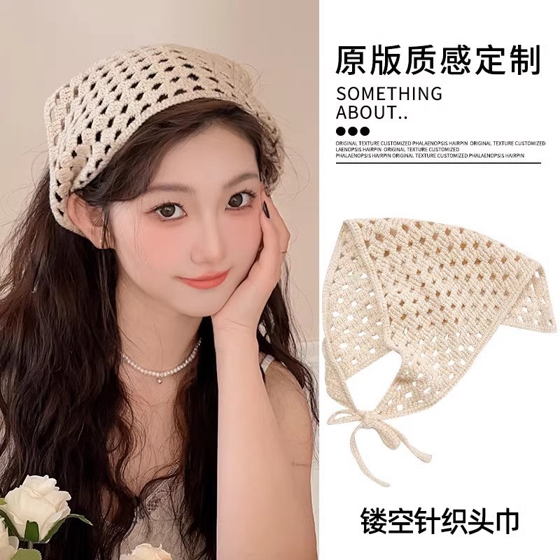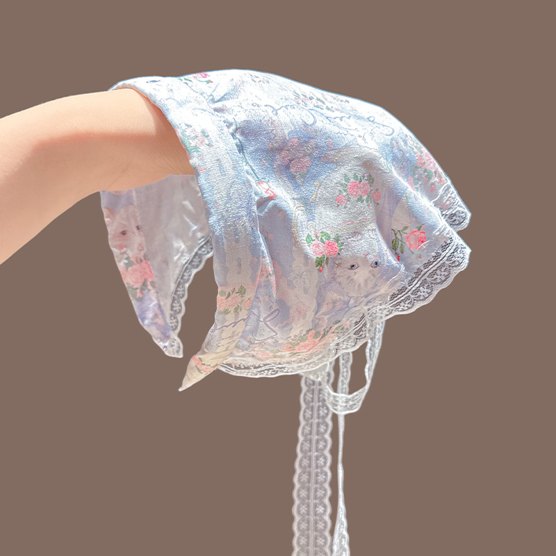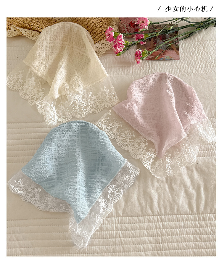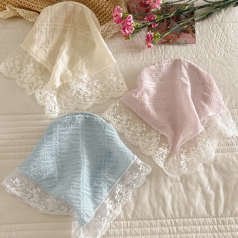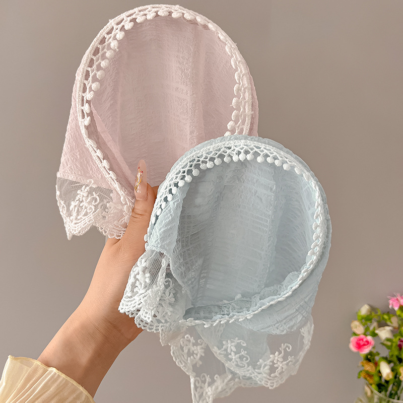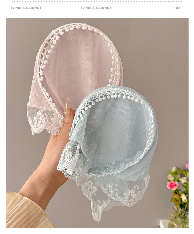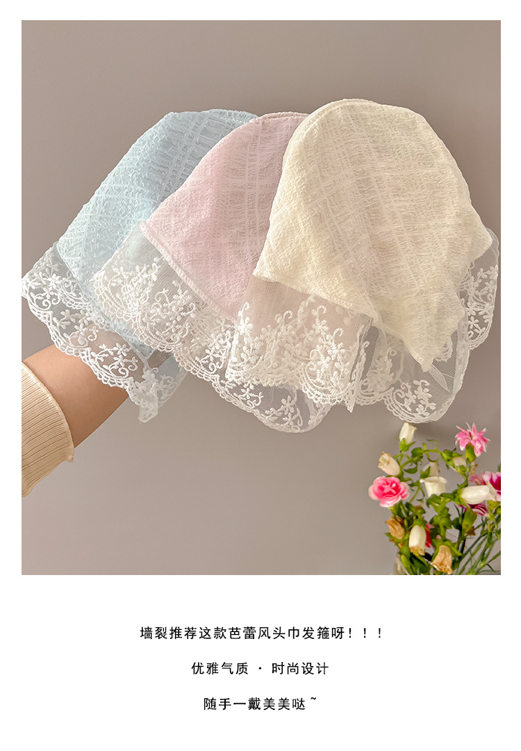 周也同款蕾丝三角巾发箍女夏季一体式丝巾发卡氛围感压发头巾头饰
