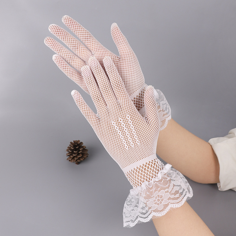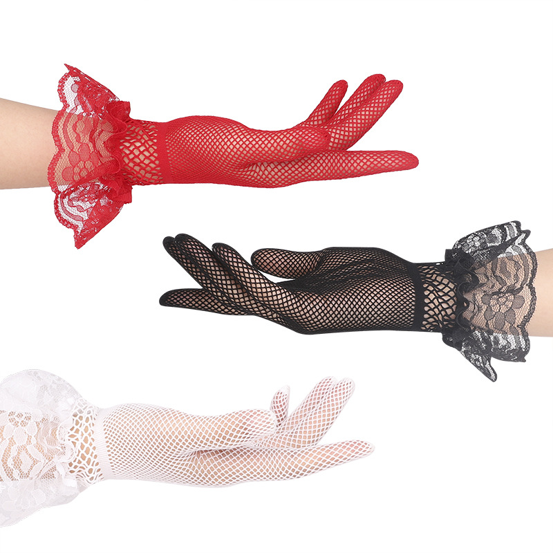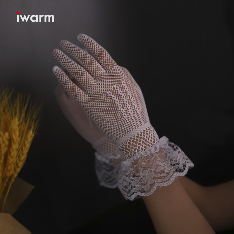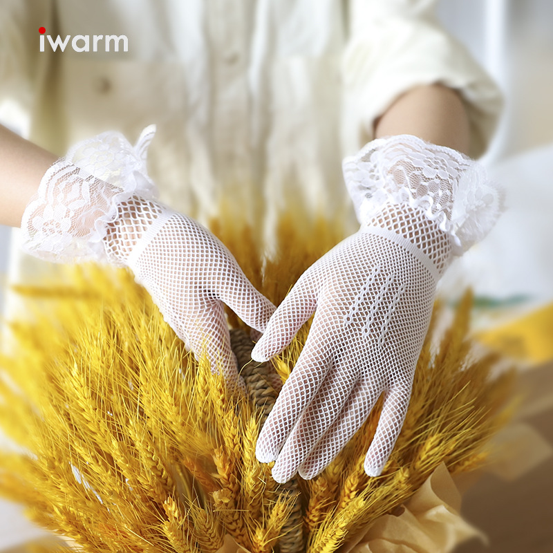 iwarm爱温暖法式时尚短款蕾丝花边手套复古优雅弹力透气网纱渔网