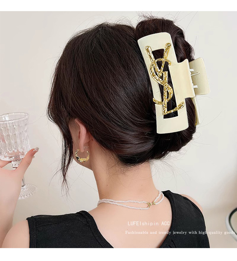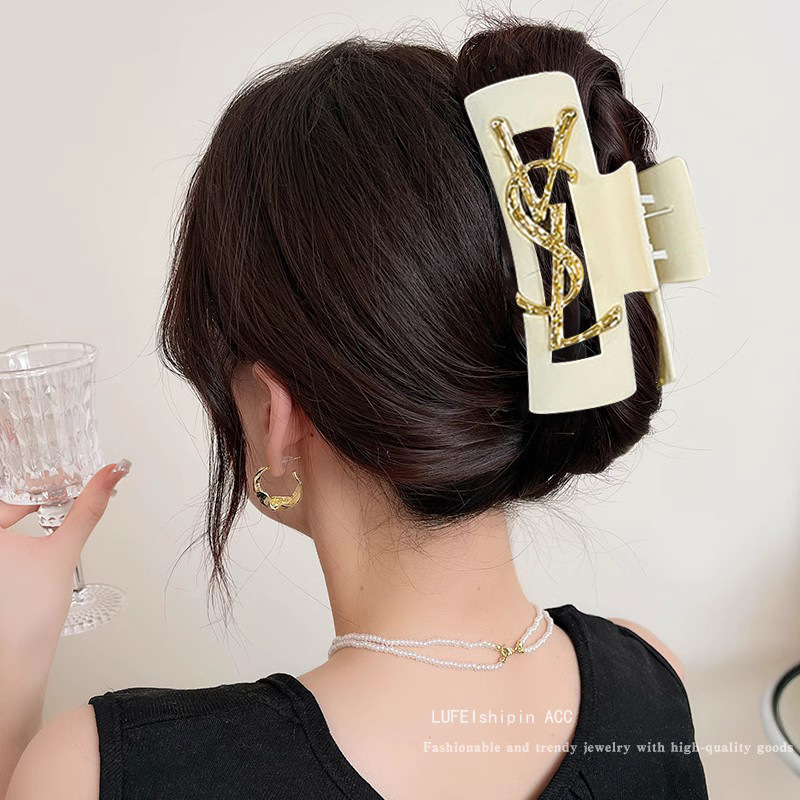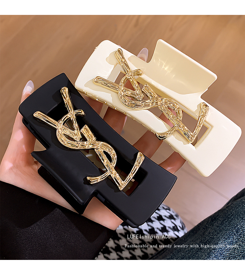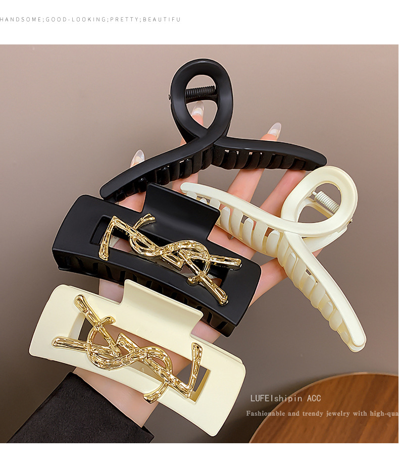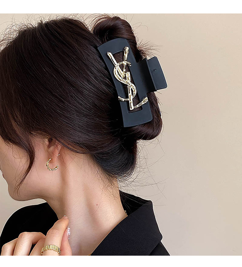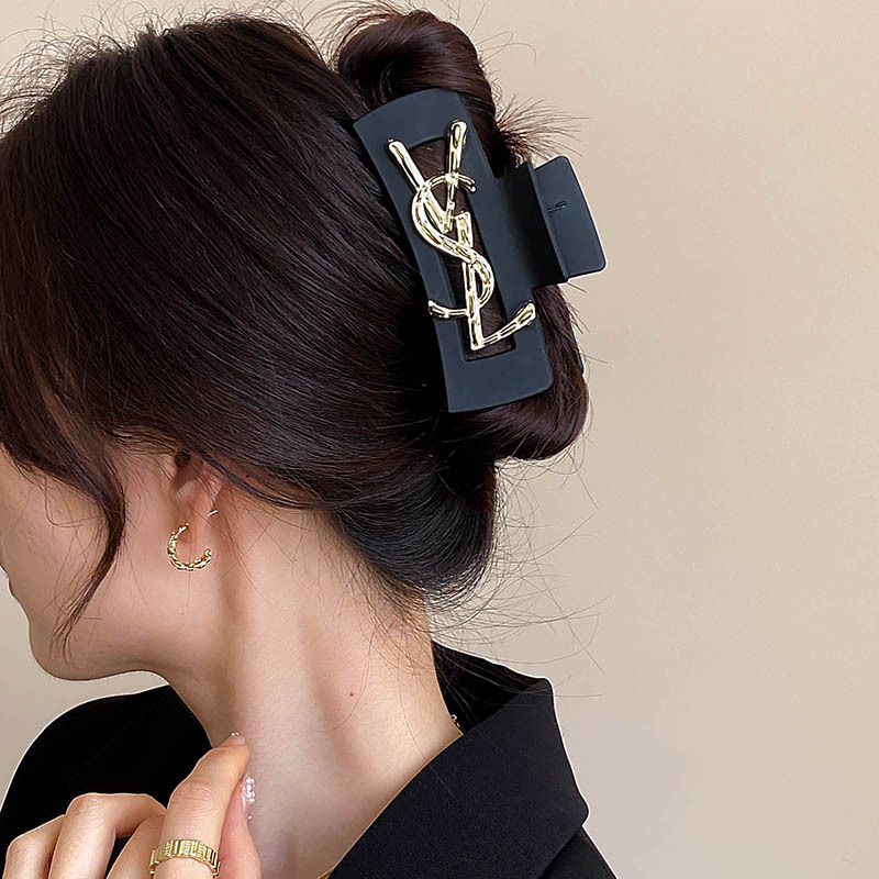黑色字母抓夹女2024新款高级感发夹后脑勺发量多盘发鲨鱼夹子头饰