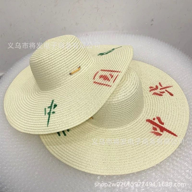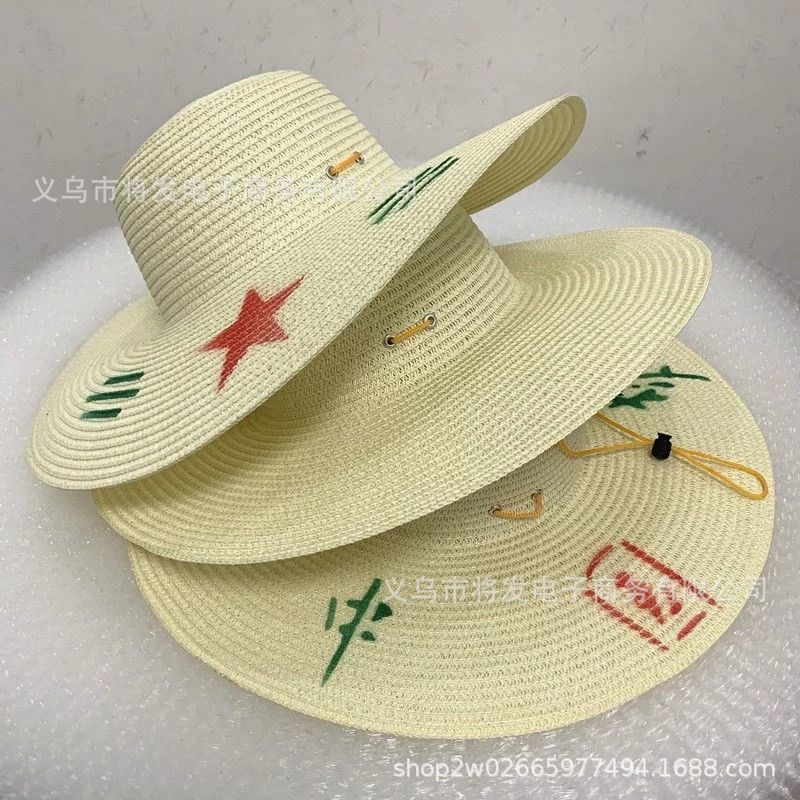 纸草草帽批发价男夏天农民工隔热干活遮阳帽大檐防晒女凉手工帽子