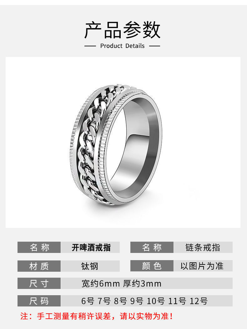 网红开啤酒瓶戒指女ins旋转链条霸气男社会嘻哈风情侣项链百搭女