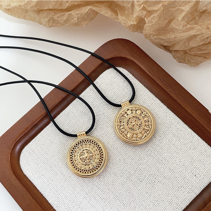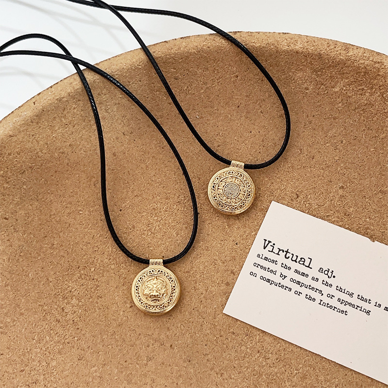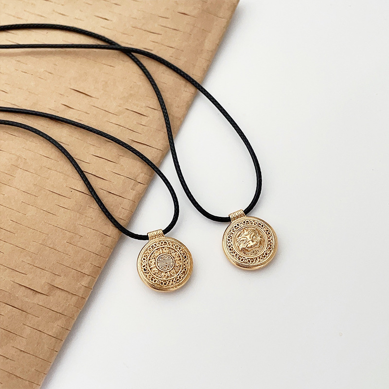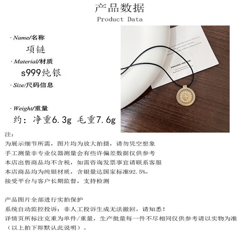 银瑞泰999纯银项链八宝罗盘新中式小众设计编织绳锁骨链男女通用
