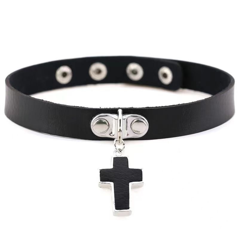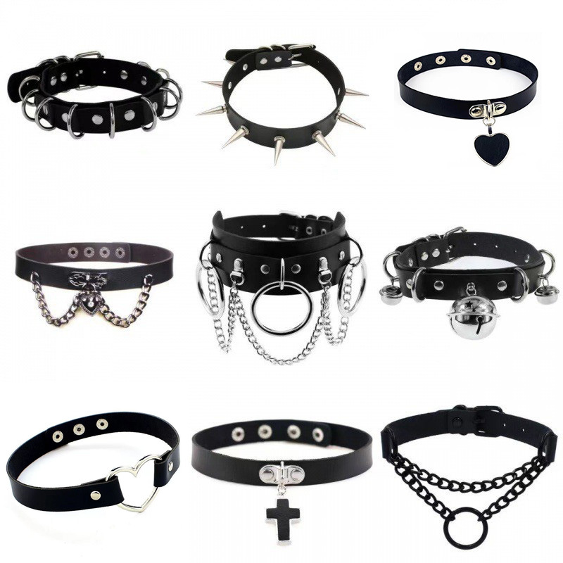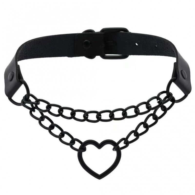 原宿风黑色朋克choker颈链项圈 几何爱心皮革暗黑颈带锁骨项链女