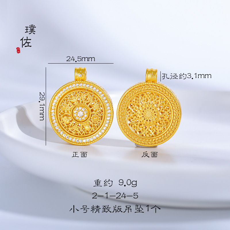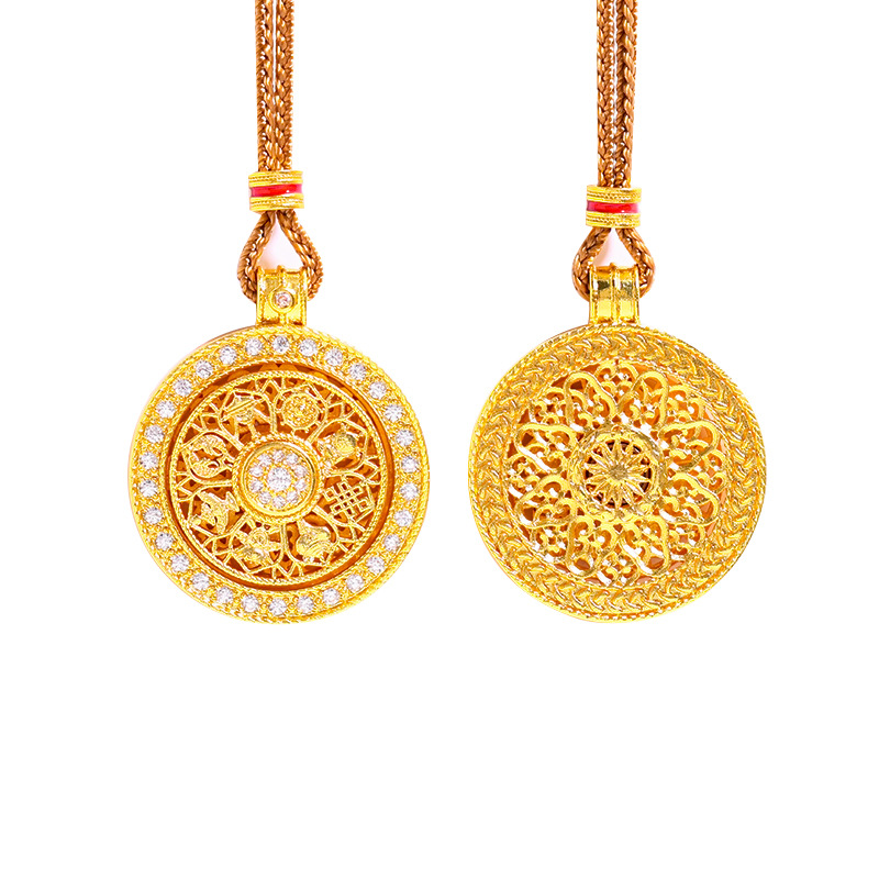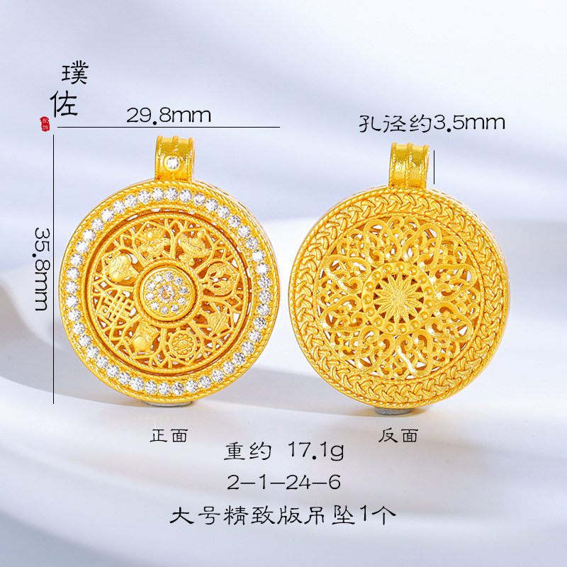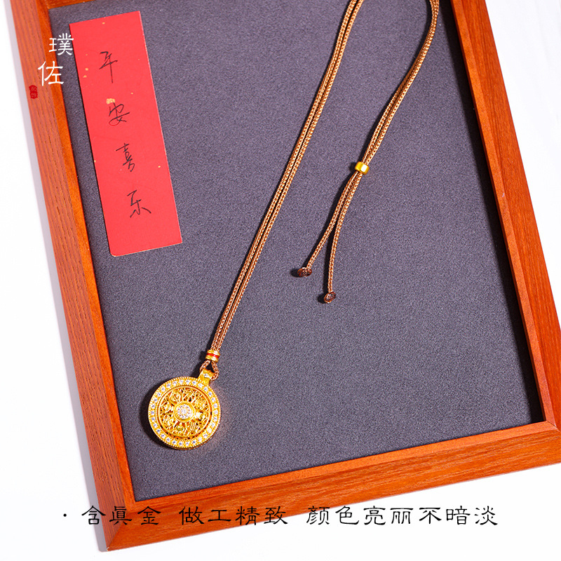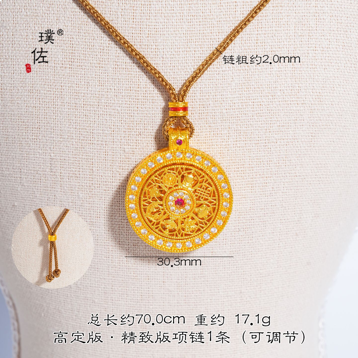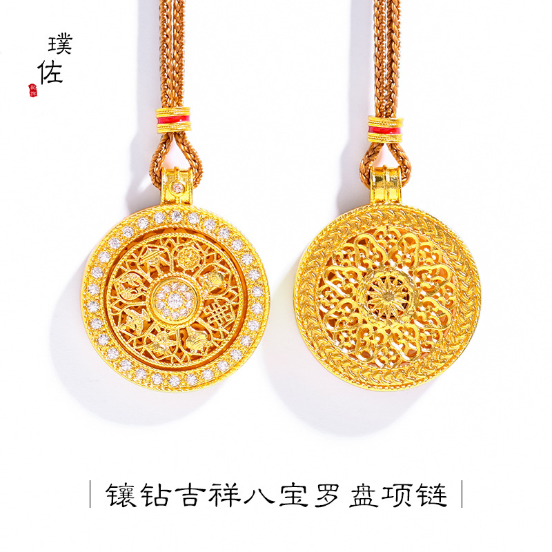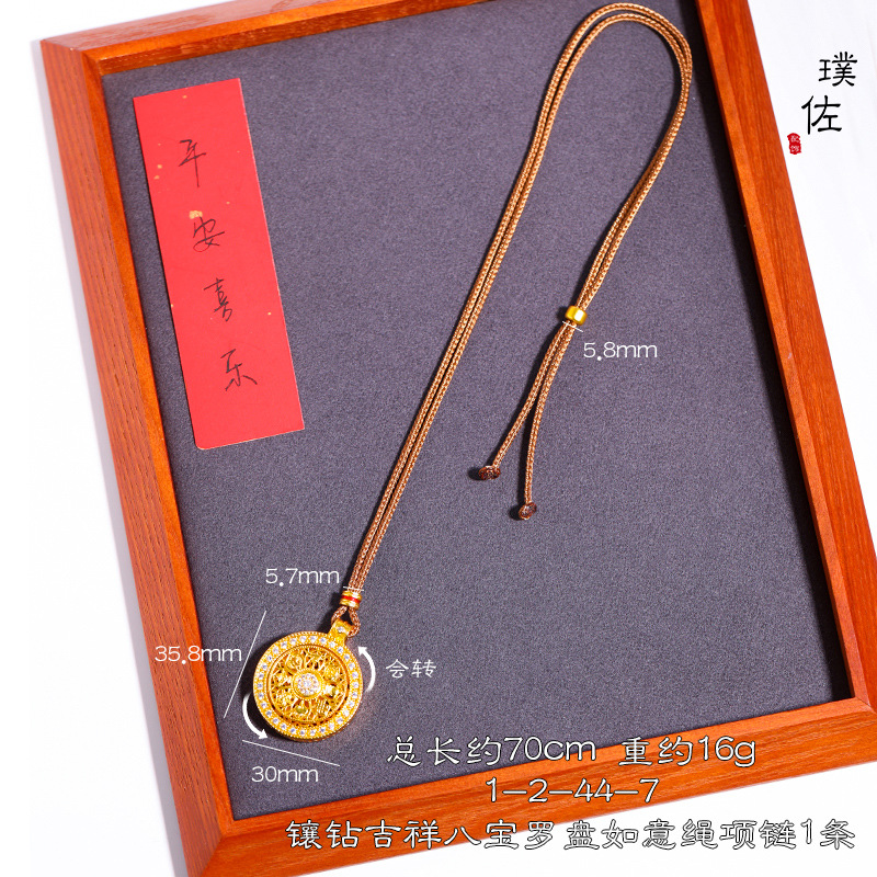 久不掉色铺家同款镶钻可旋转八宝罗盘项链沙金如意绳吊坠毛衣链女