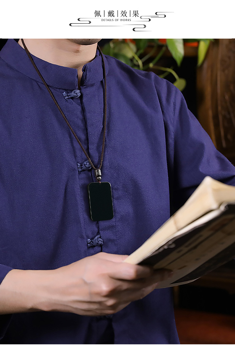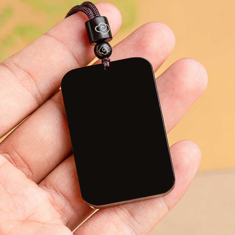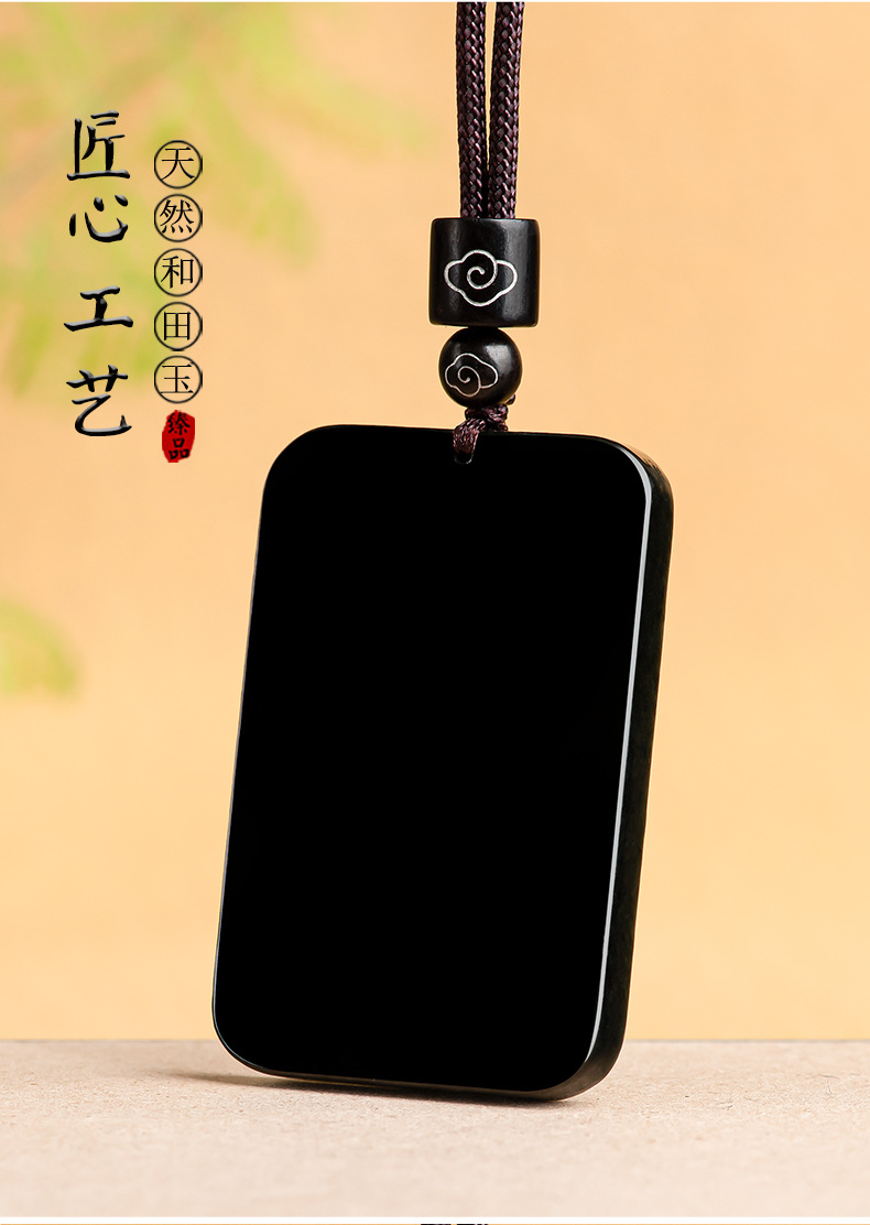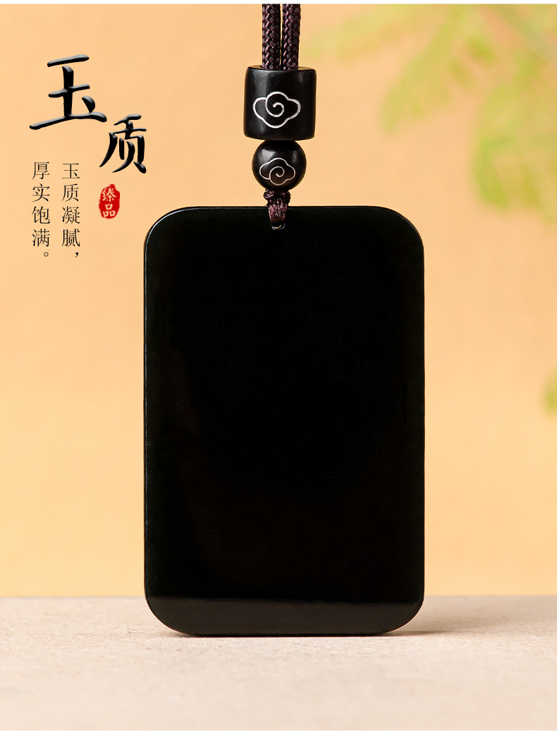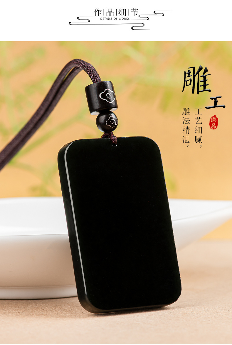 天然老料和田玉墨玉无事牌玉石吊坠玉坠佛像男女款挂件玉牌批发