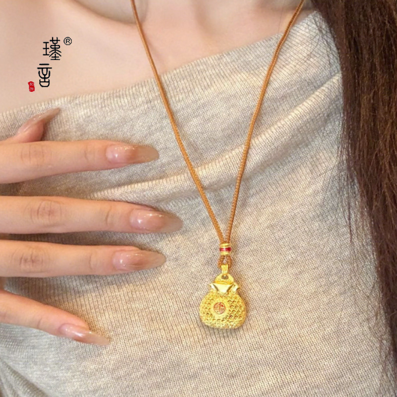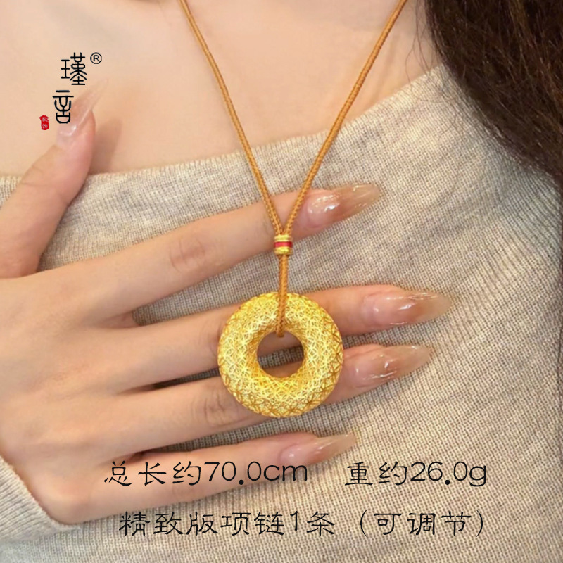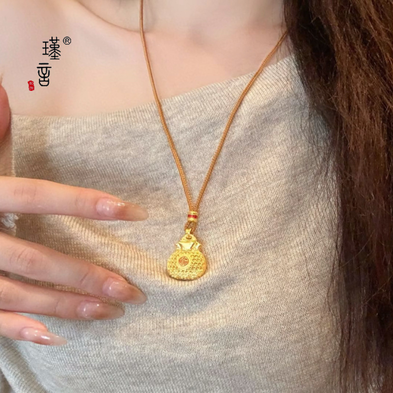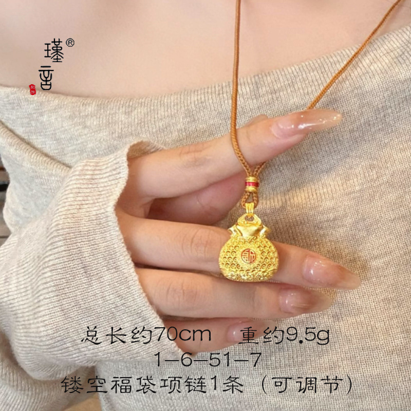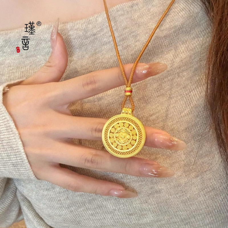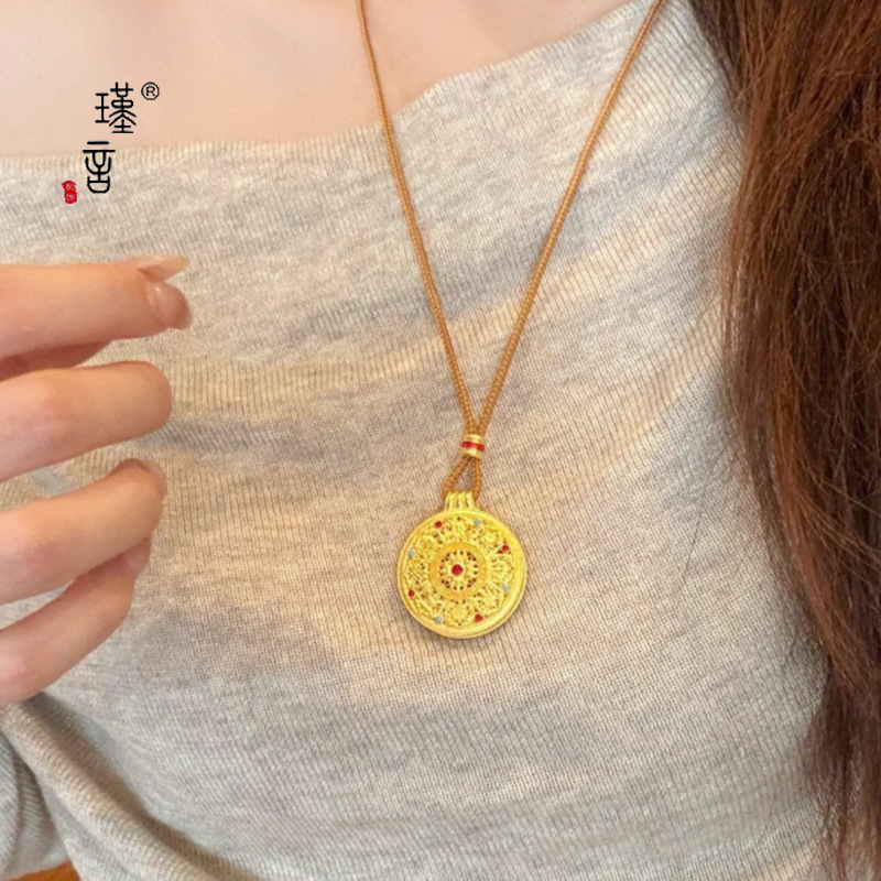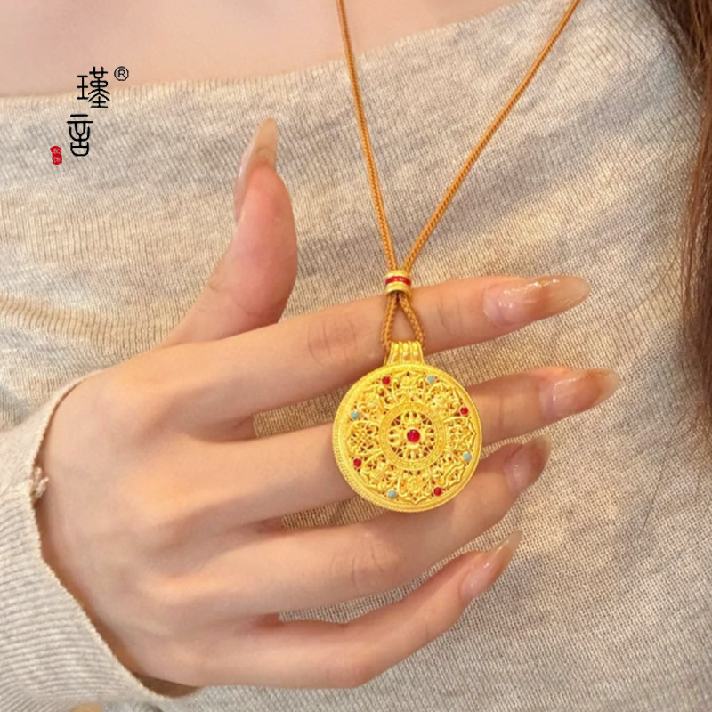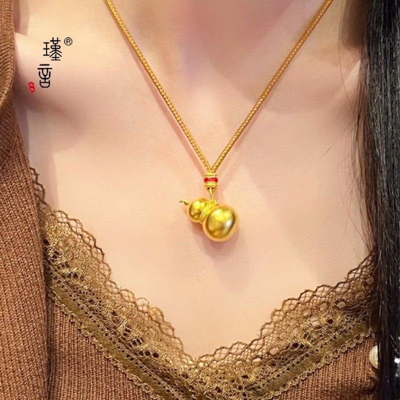 瑾言金店同款沙金钱币平安扣福运八宝罗盘麻花葫芦项链锁骨链女