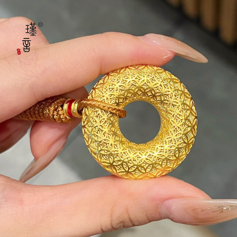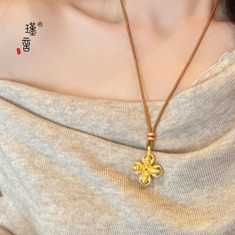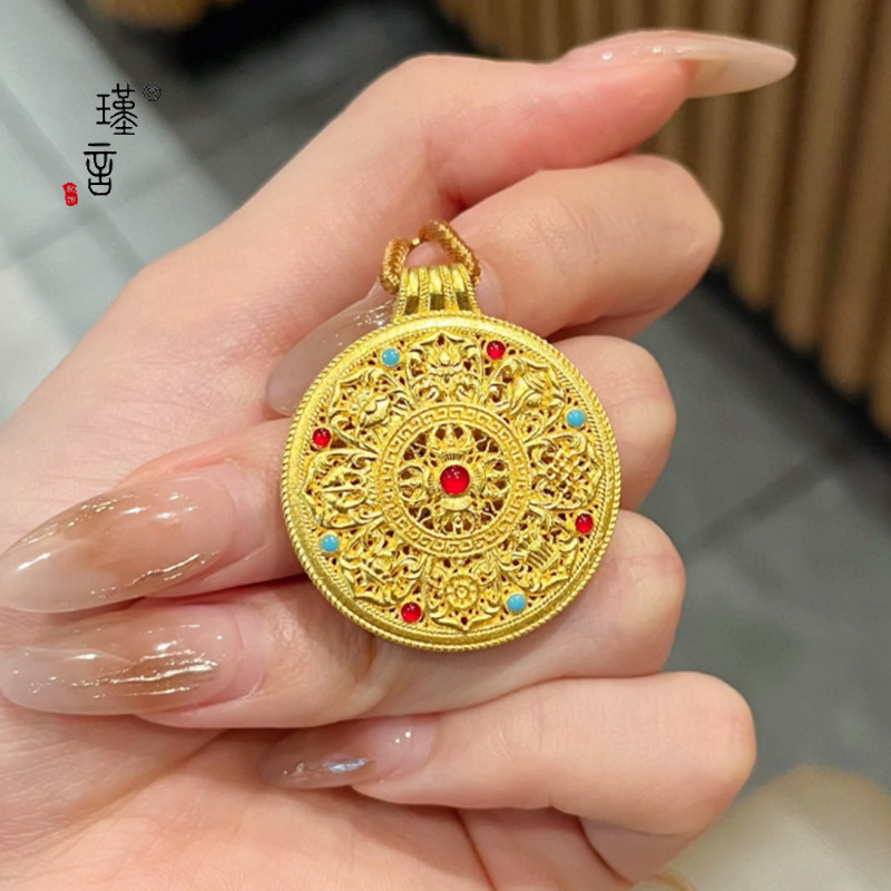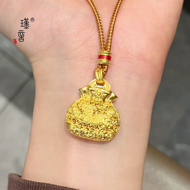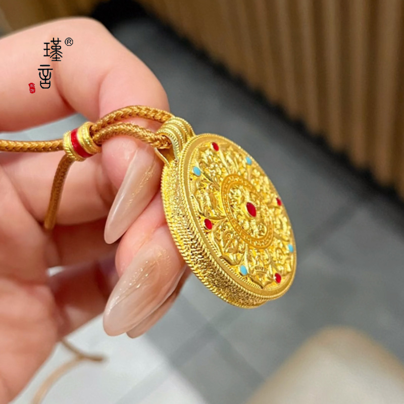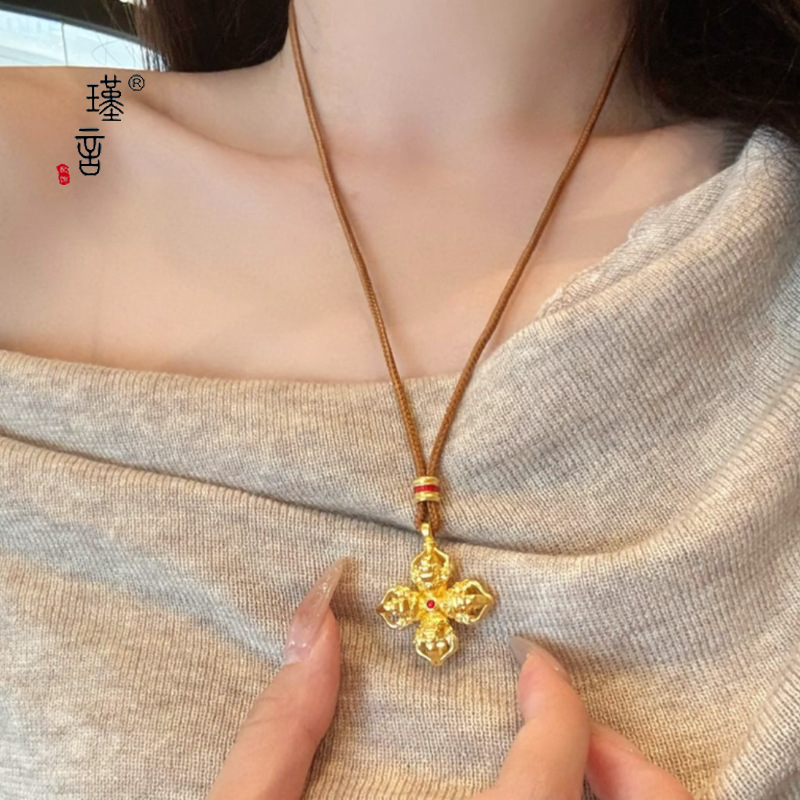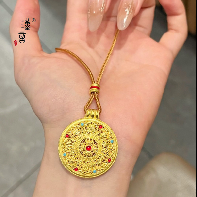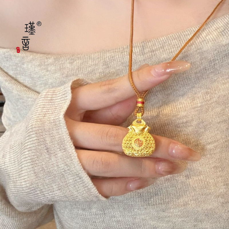 瑾言金店同款沙金钱币平安扣福运八宝罗盘麻花葫芦项链锁骨链女