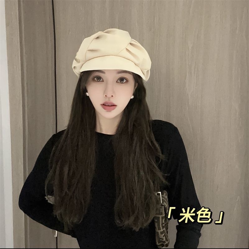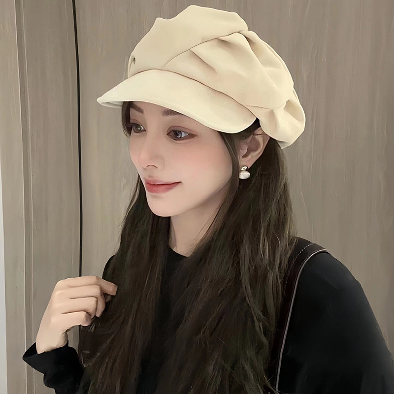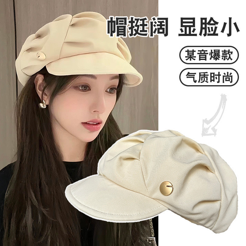 网红褶皱云朵八角帽女春秋显脸小帽子韩版简约日系时尚软百搭贝雷