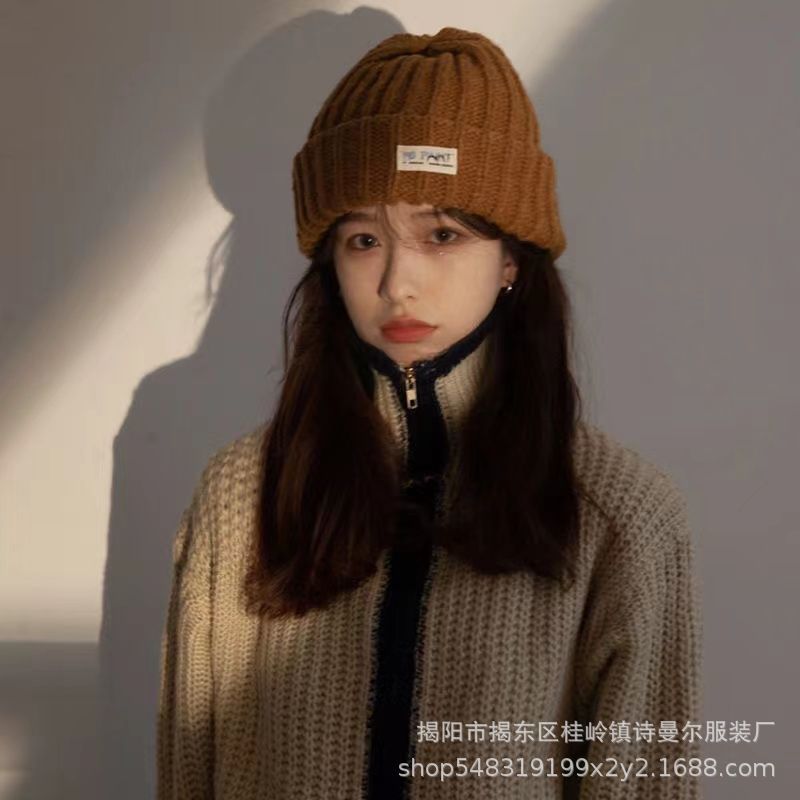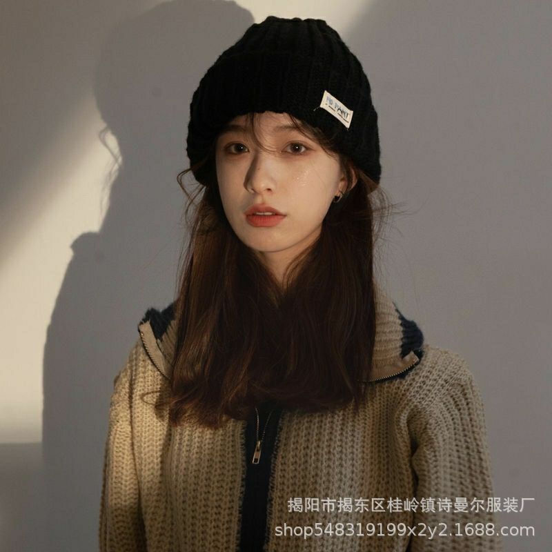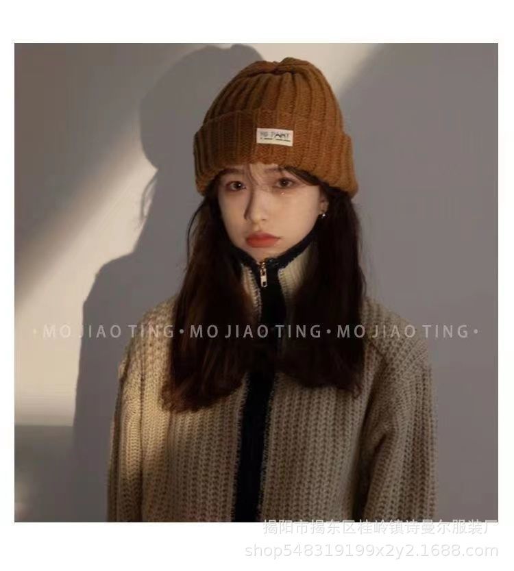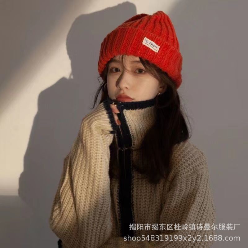 宽松大头围字母针织帽子女冬季天保暖毛线帽ins显脸小冷帽潮批发