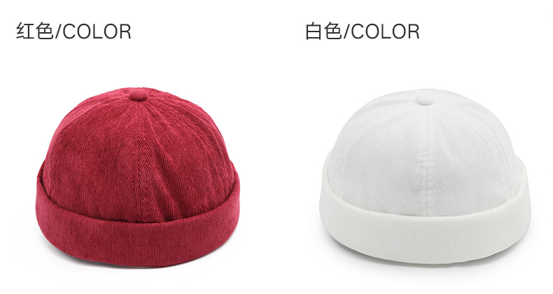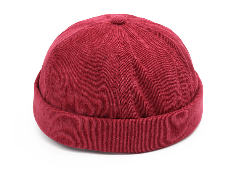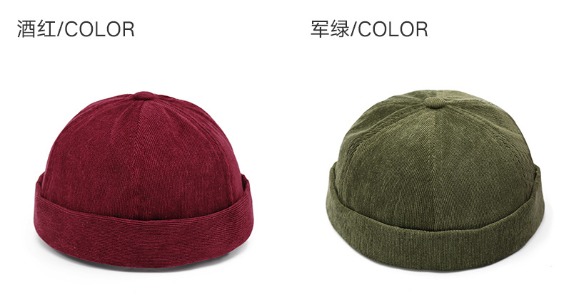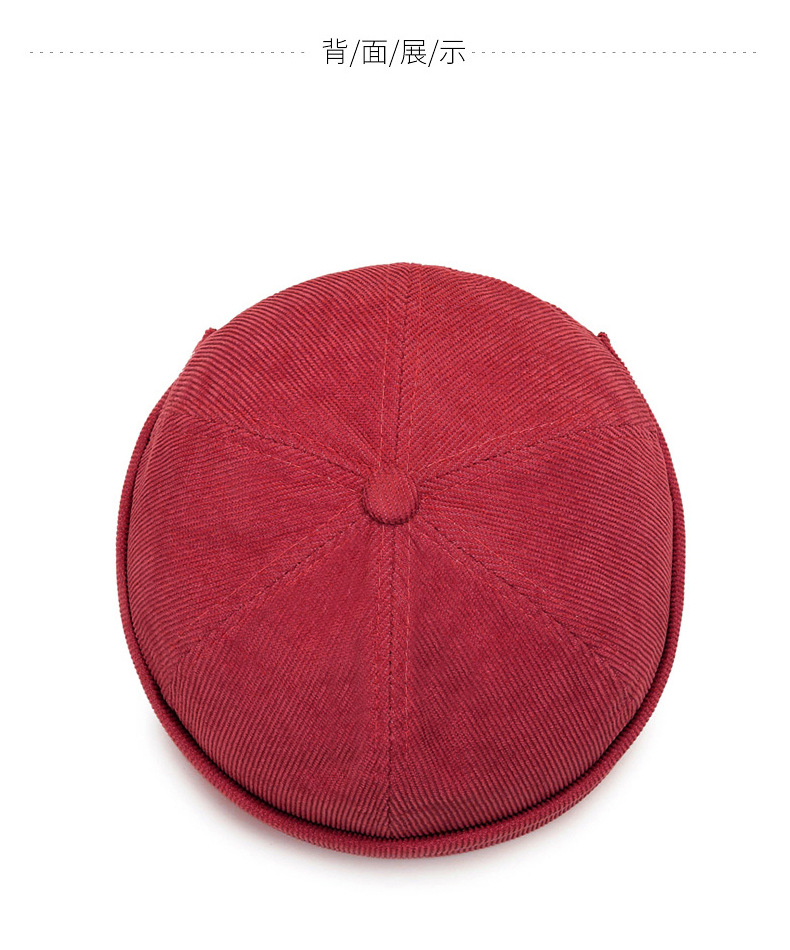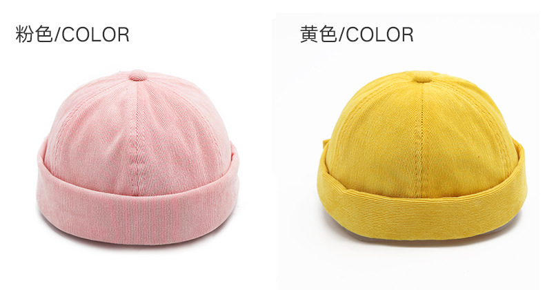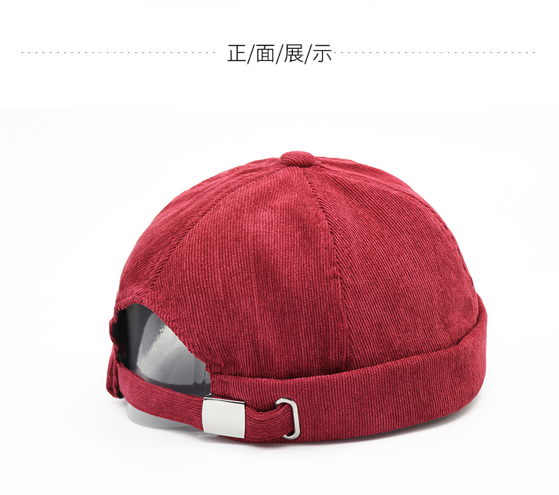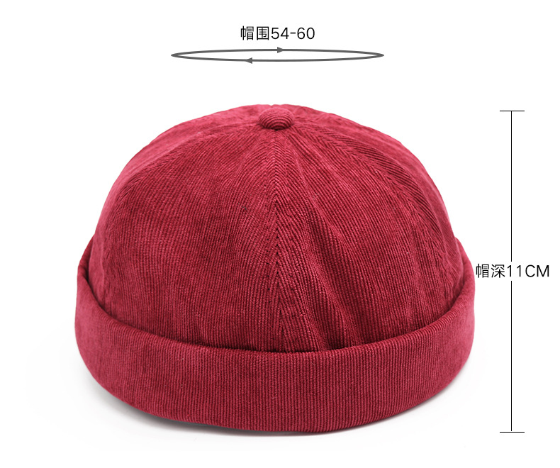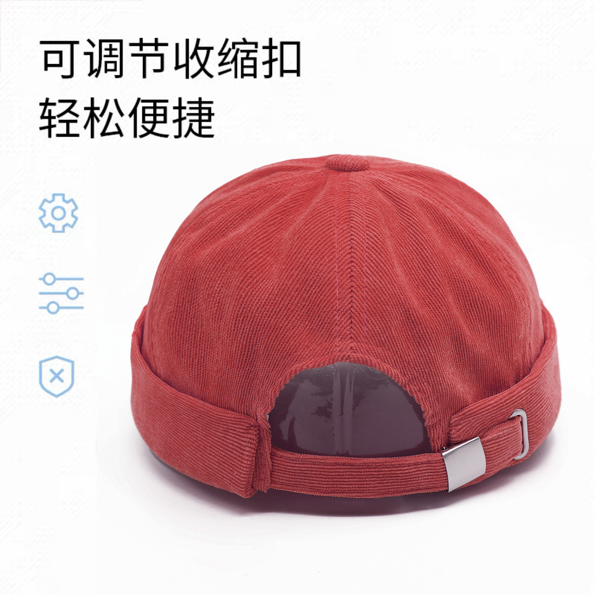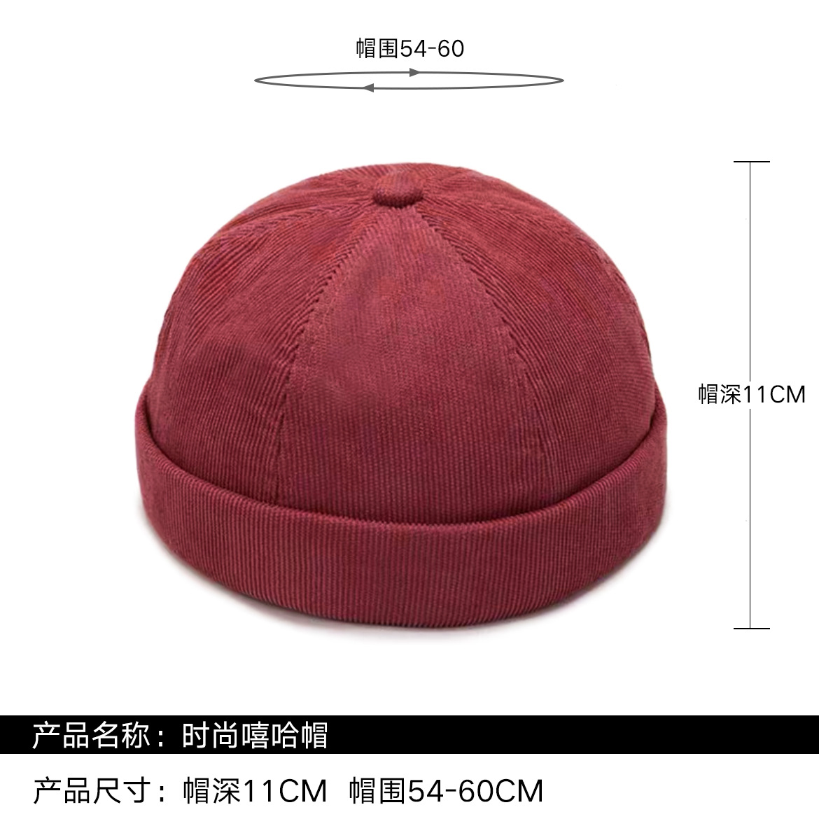 瓜皮帽女秋冬灯芯绒雅痞帽美式冷帽复古无檐帽子男嘻哈冬季西瓜帽