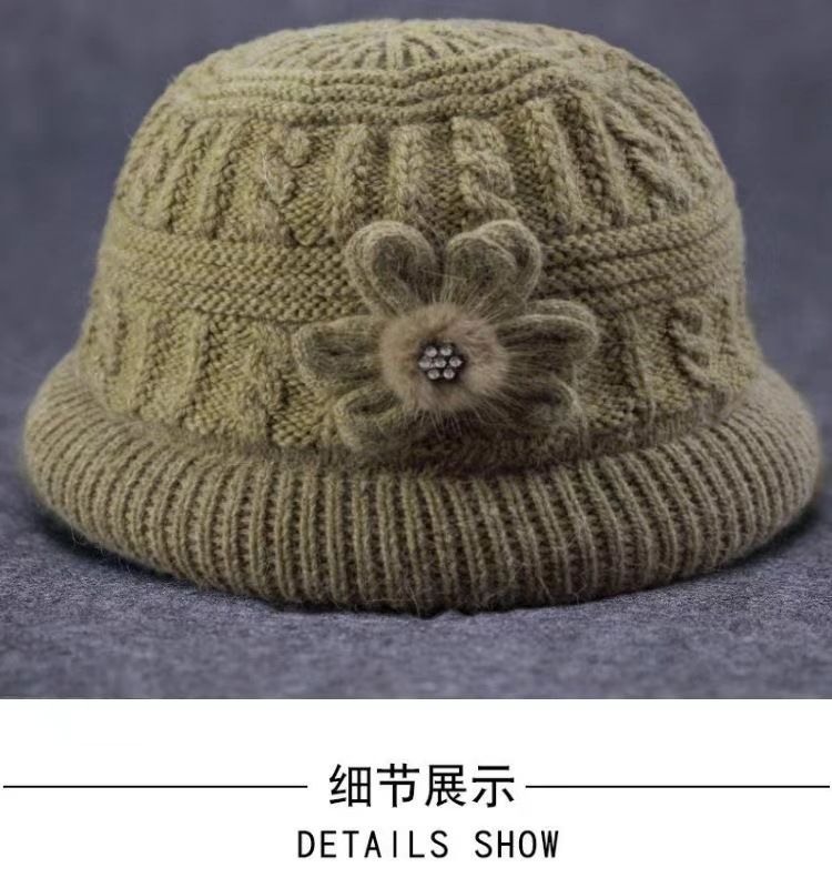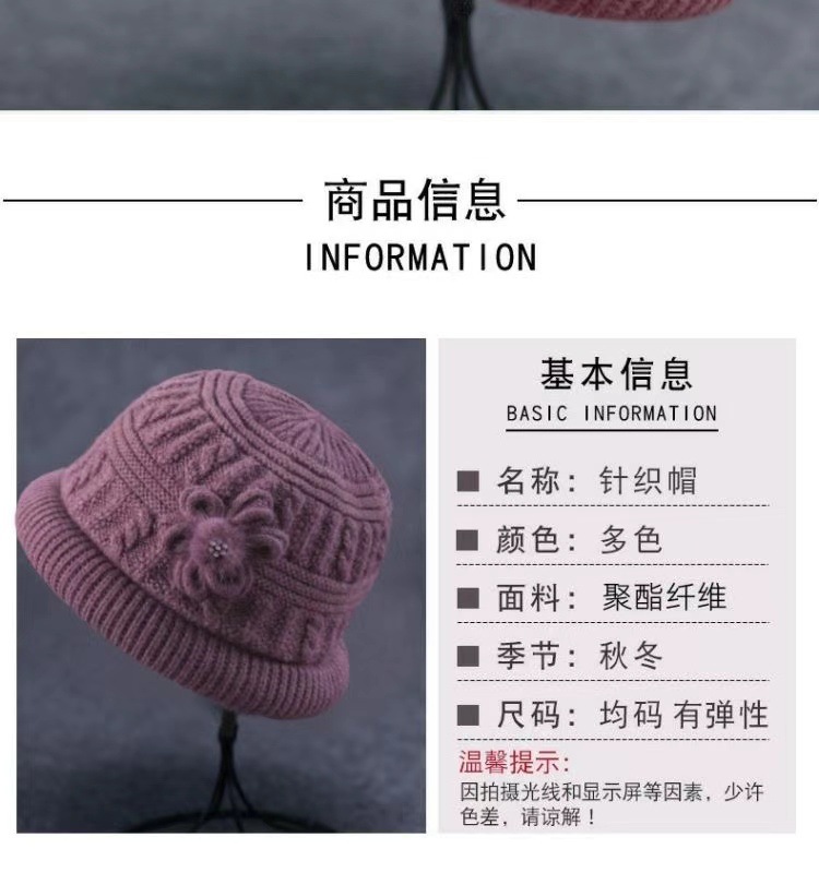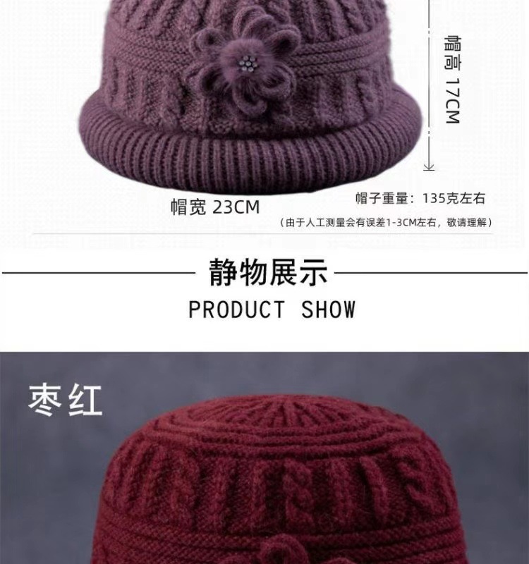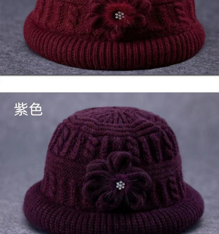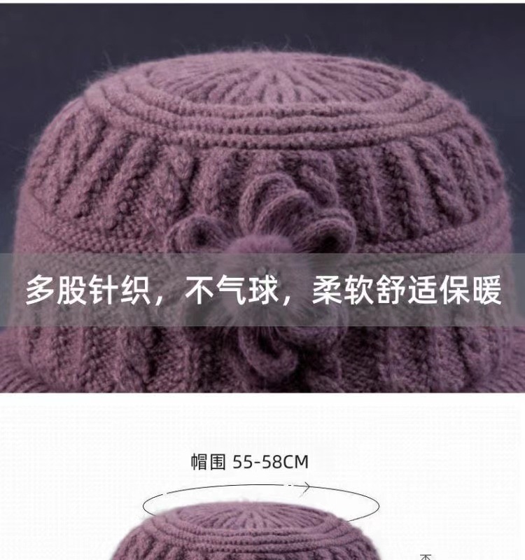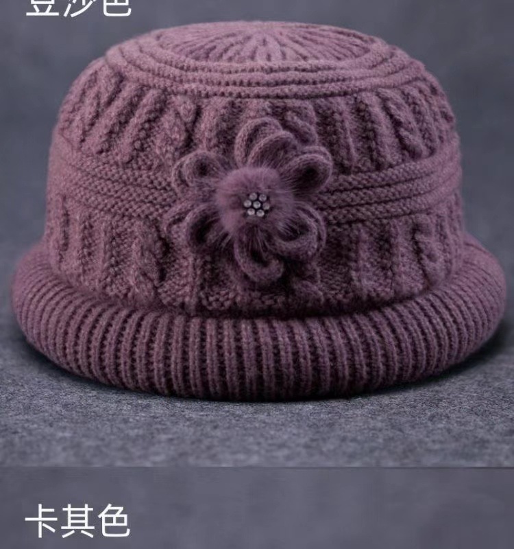 秋冬季中老年人毛线妈妈帽老太太渔夫帽子女加绒保暖奶奶针织帽子