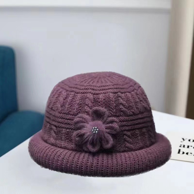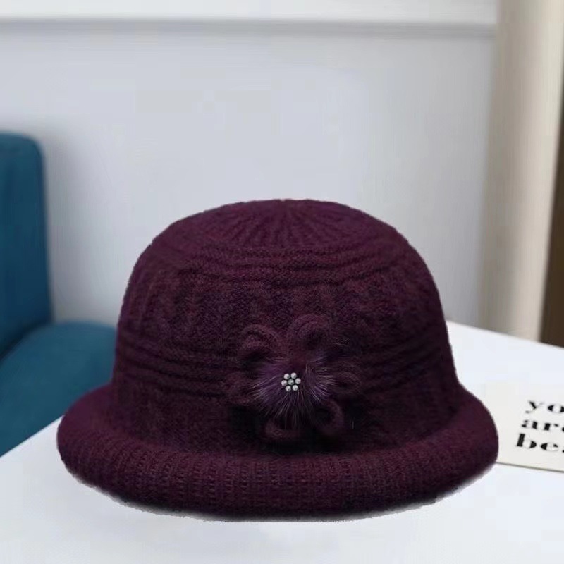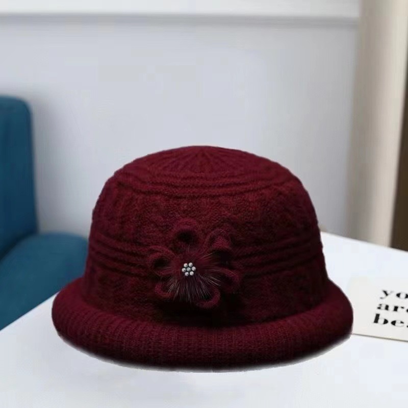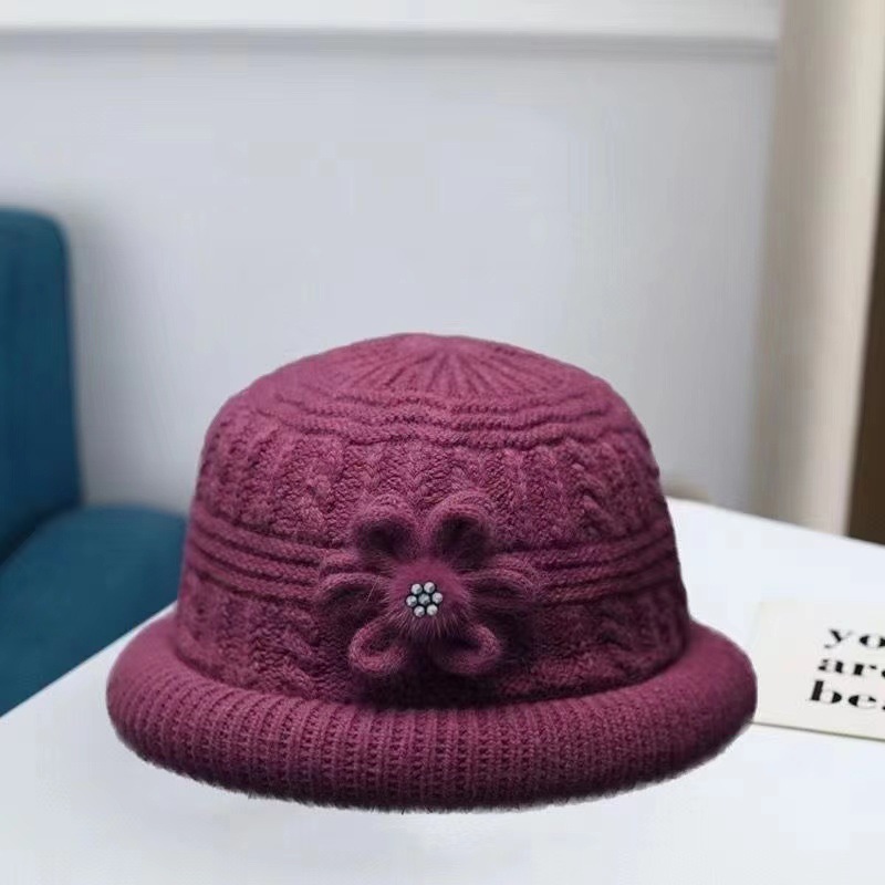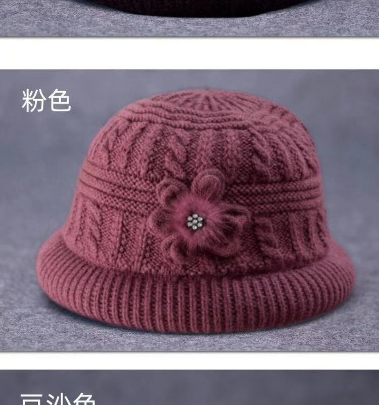 秋冬季中老年人毛线妈妈帽老太太渔夫帽子女加绒保暖奶奶针织帽子