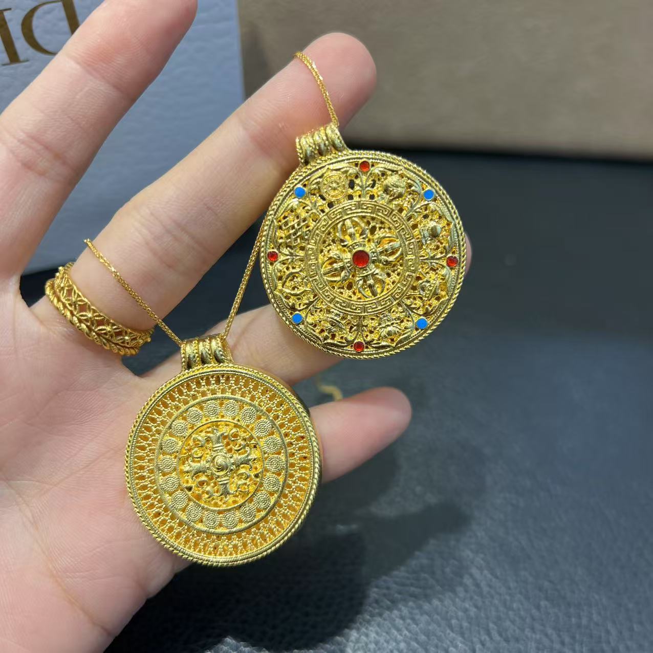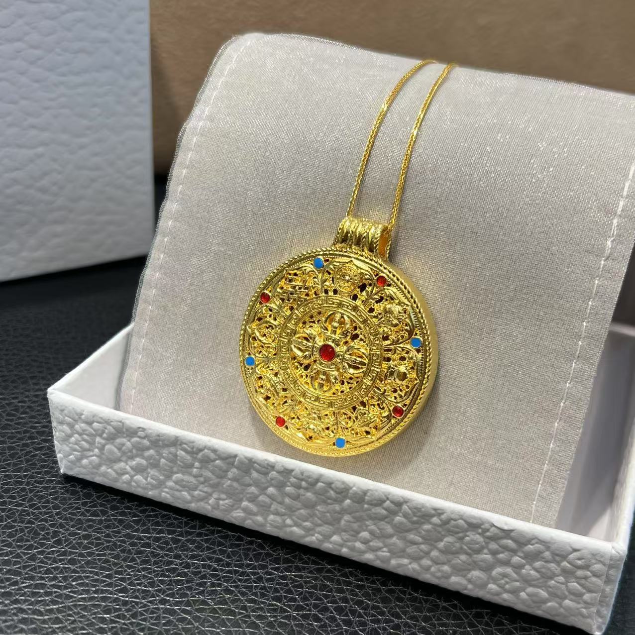 18K金金刚杵八宝罗盘吊au750彩金不脱模凝聚祥瑞守护一生好运批发