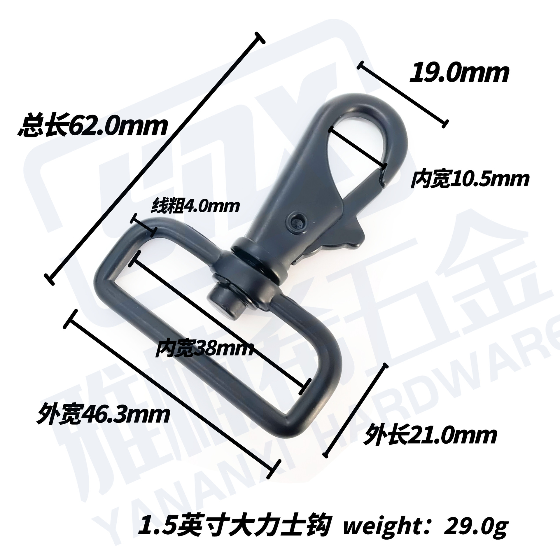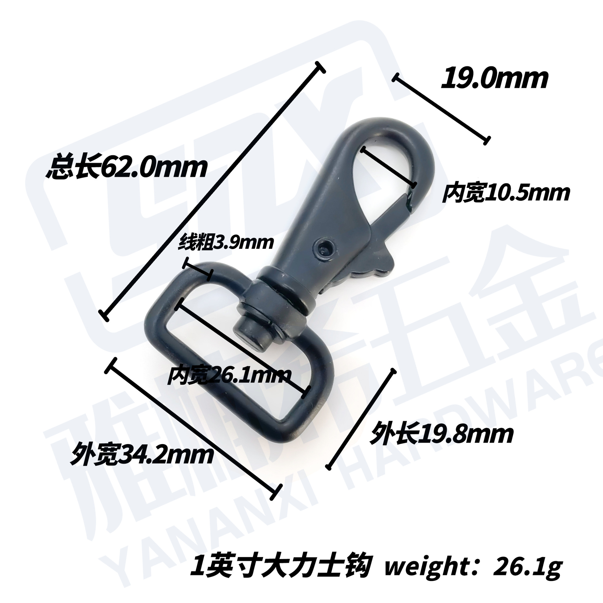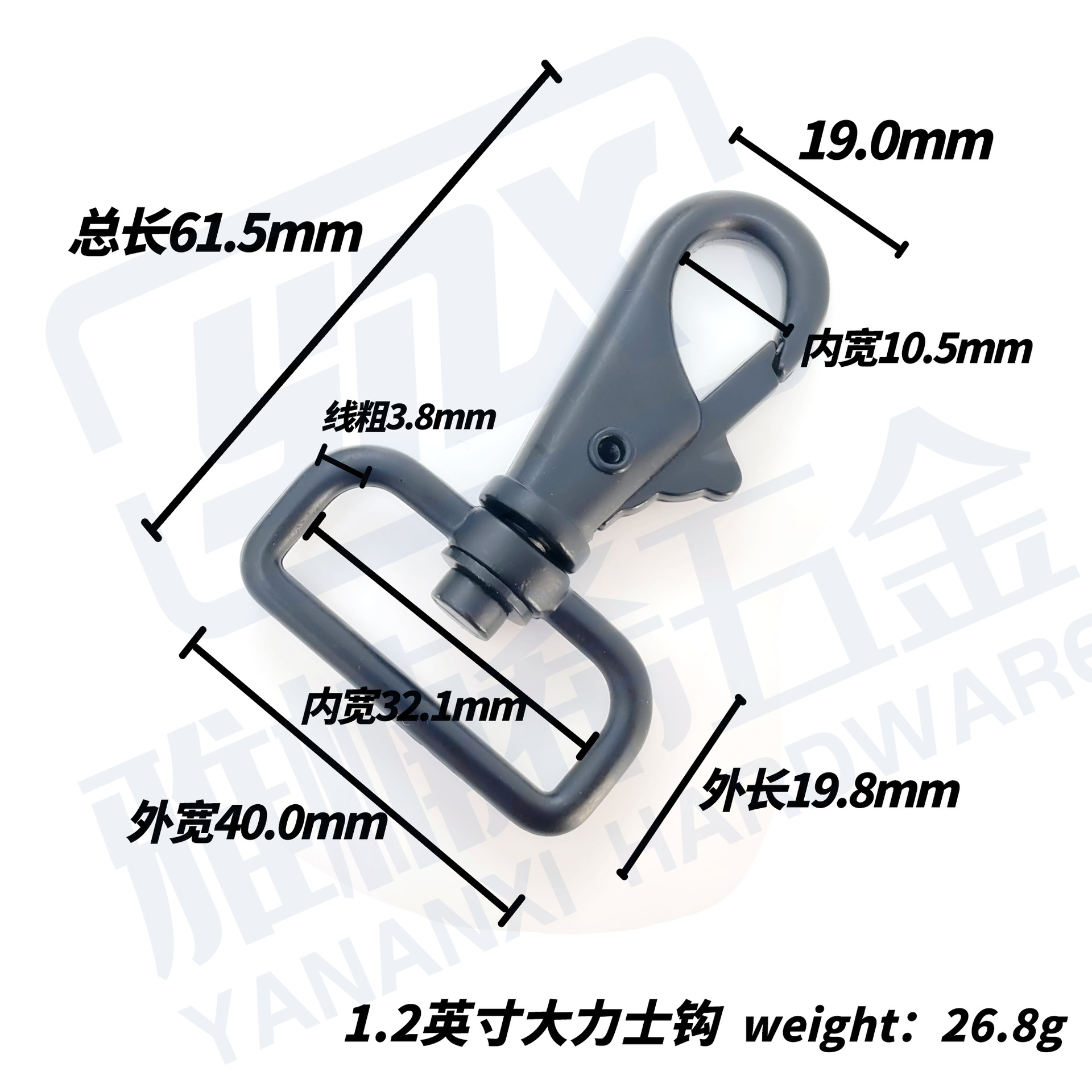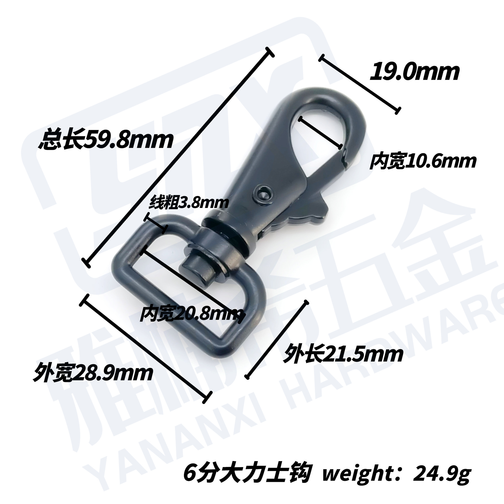 厂家供应 箱包配件合金勾扣大龙虾扣 电泳黑狗扣织带挂钩扣钥匙扣