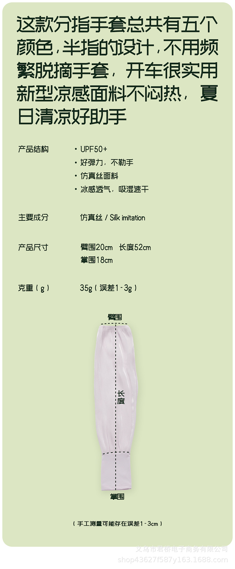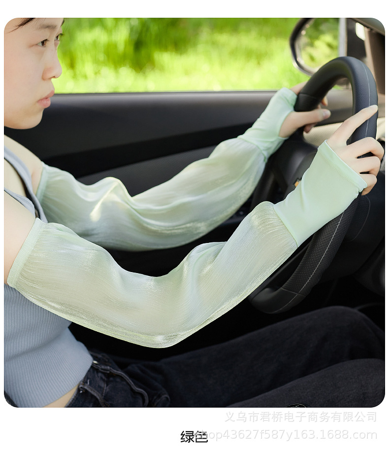 仿真丝防晒袖套女士夏季防紫外线宽松透气薄款加长版骑行手袖冰袖
