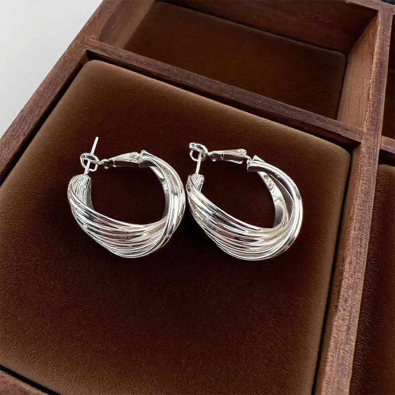 925银针欧美多层缠绕简约耳圈个性小众耳环网红新款潮流夸张耳扣