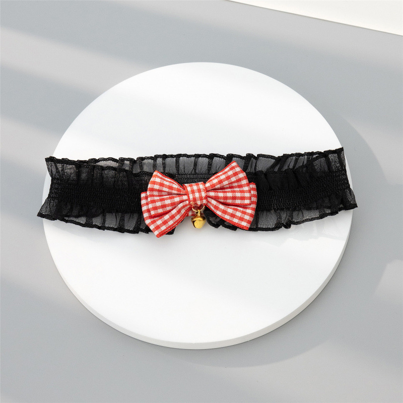 洛丽塔甜妹手作蕾丝红格子蝴蝶结铃铛纯欲风腿环腿饰女 铃铛会响