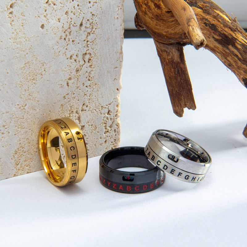 欧美款钛钢可转动数字指环 亚马逊新款字母戒指 设计感饰品批发
