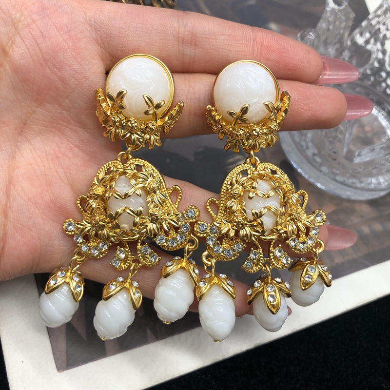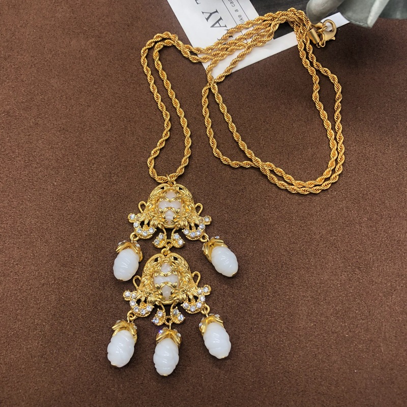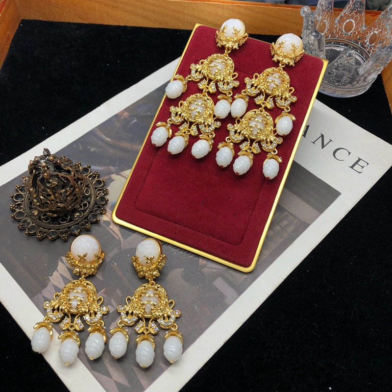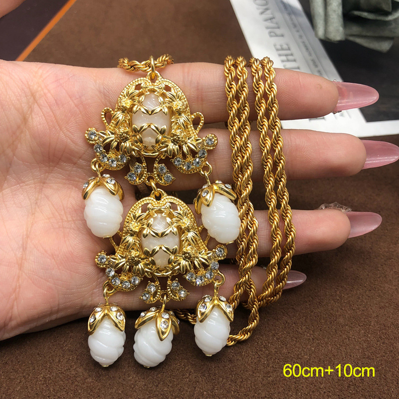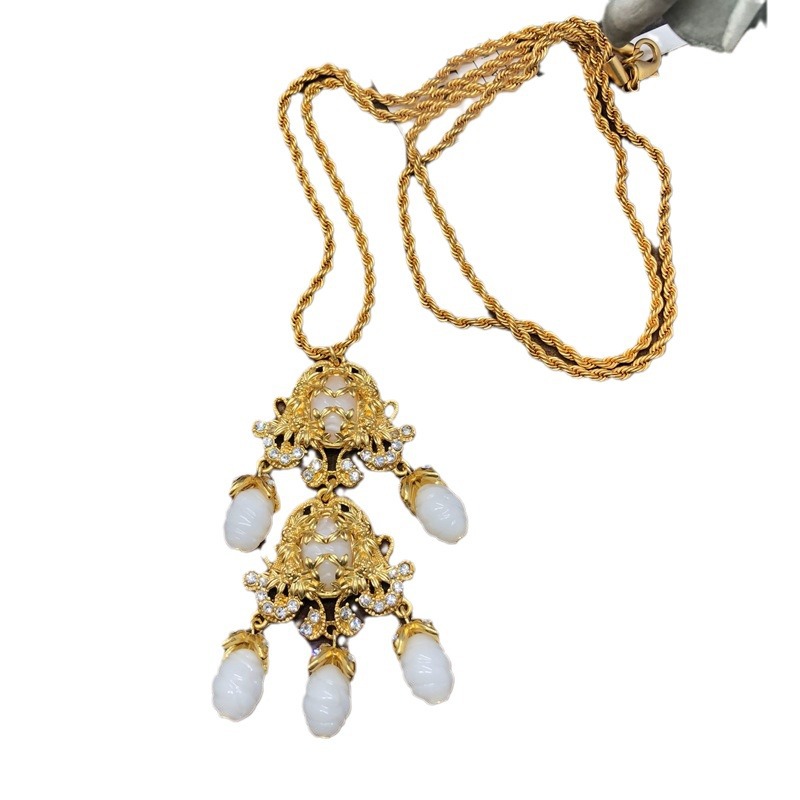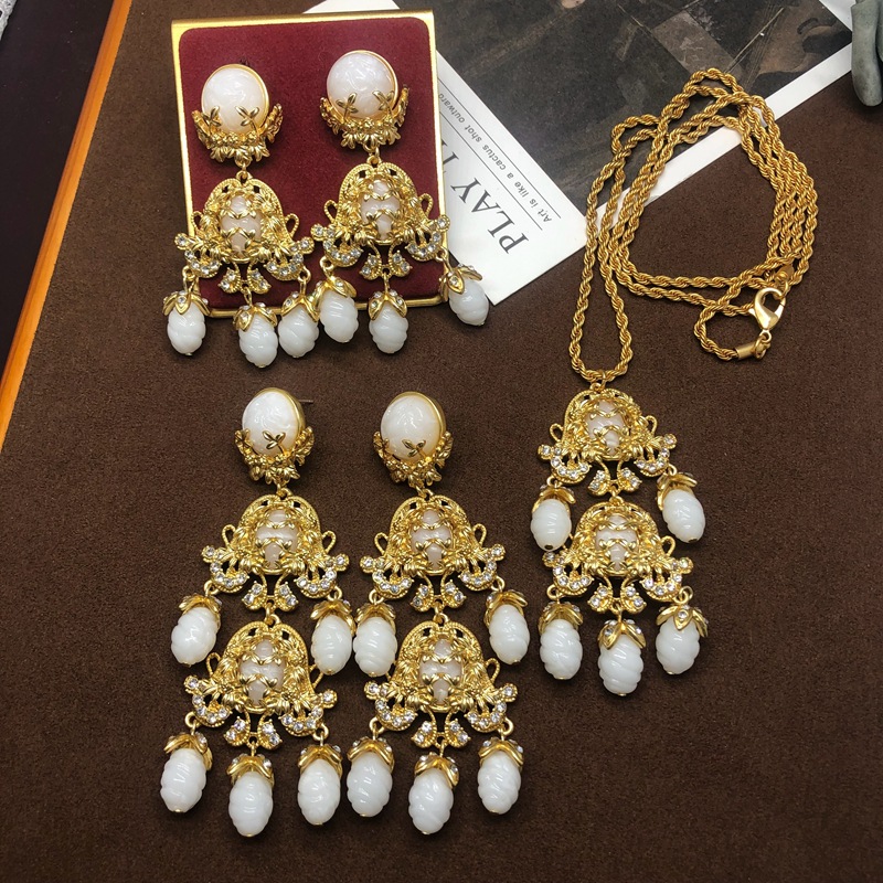 中古vintage饰品镶钻扫肩款耳坠项链套装复古优雅重工耳环毛衣链