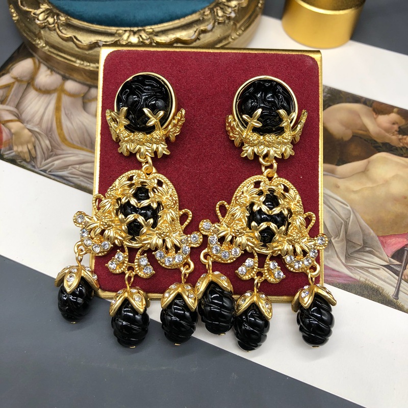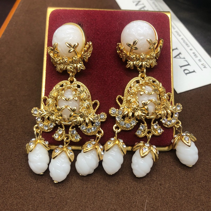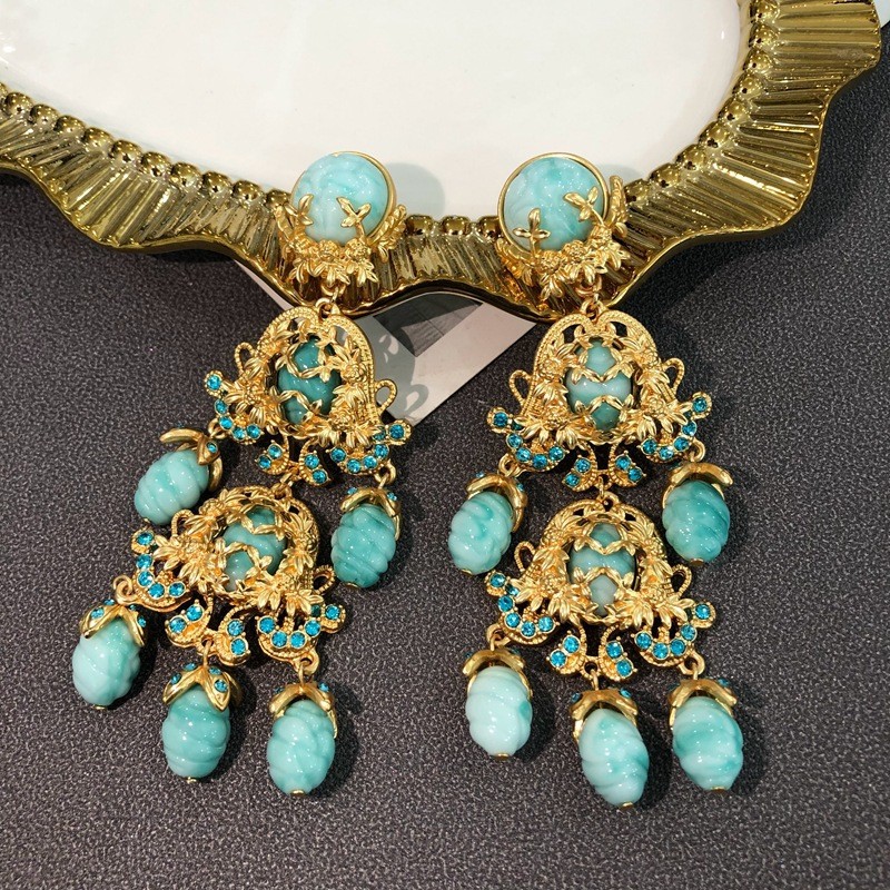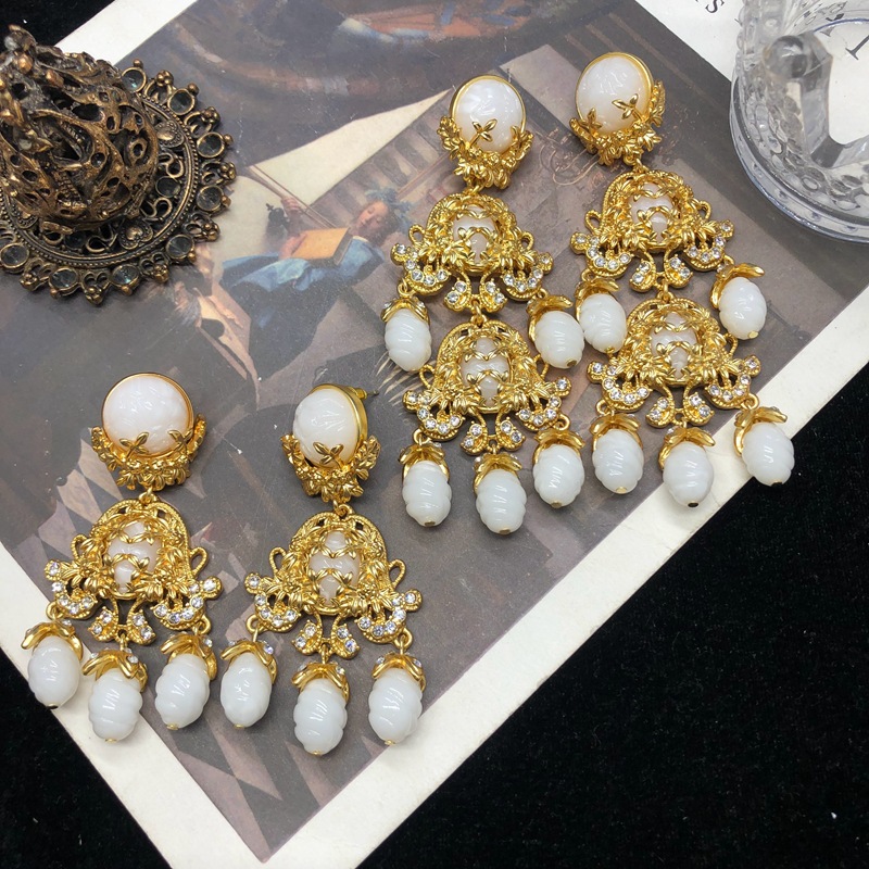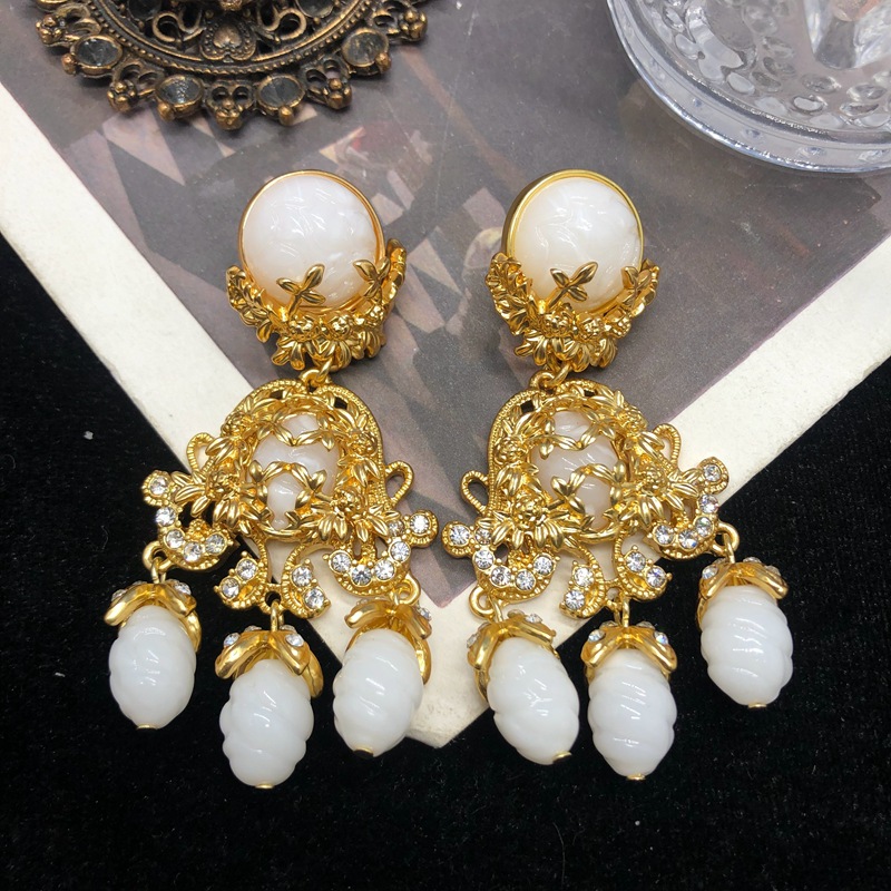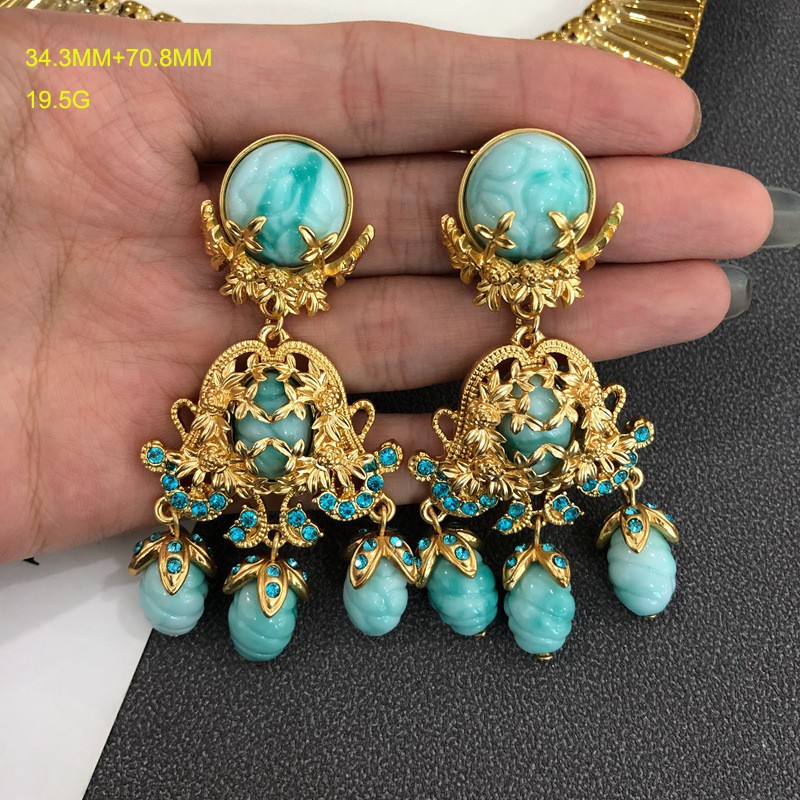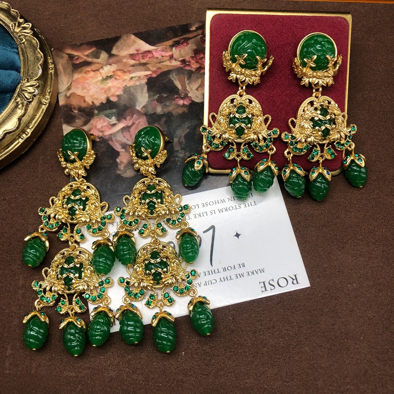 中古vintage饰品镶钻扫肩款耳坠项链套装复古优雅重工耳环毛衣链