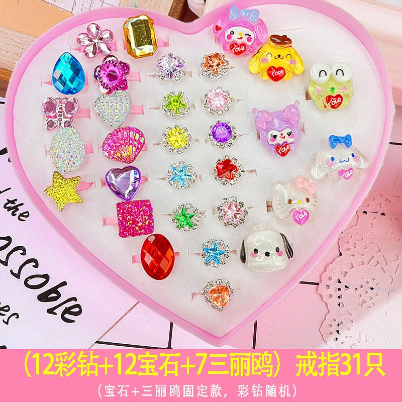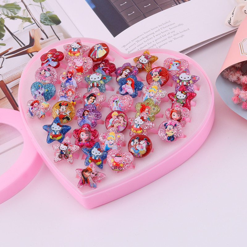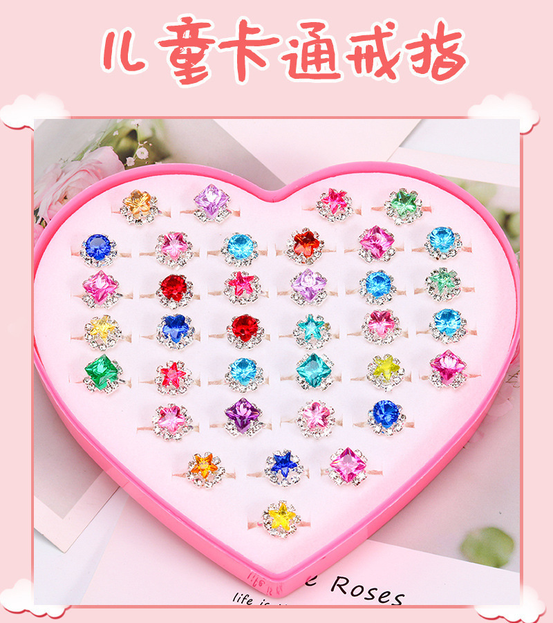 儿童戒指公主可爱小女孩仿钻石爱莎卡通宝石女童宝宝幼儿园小礼物