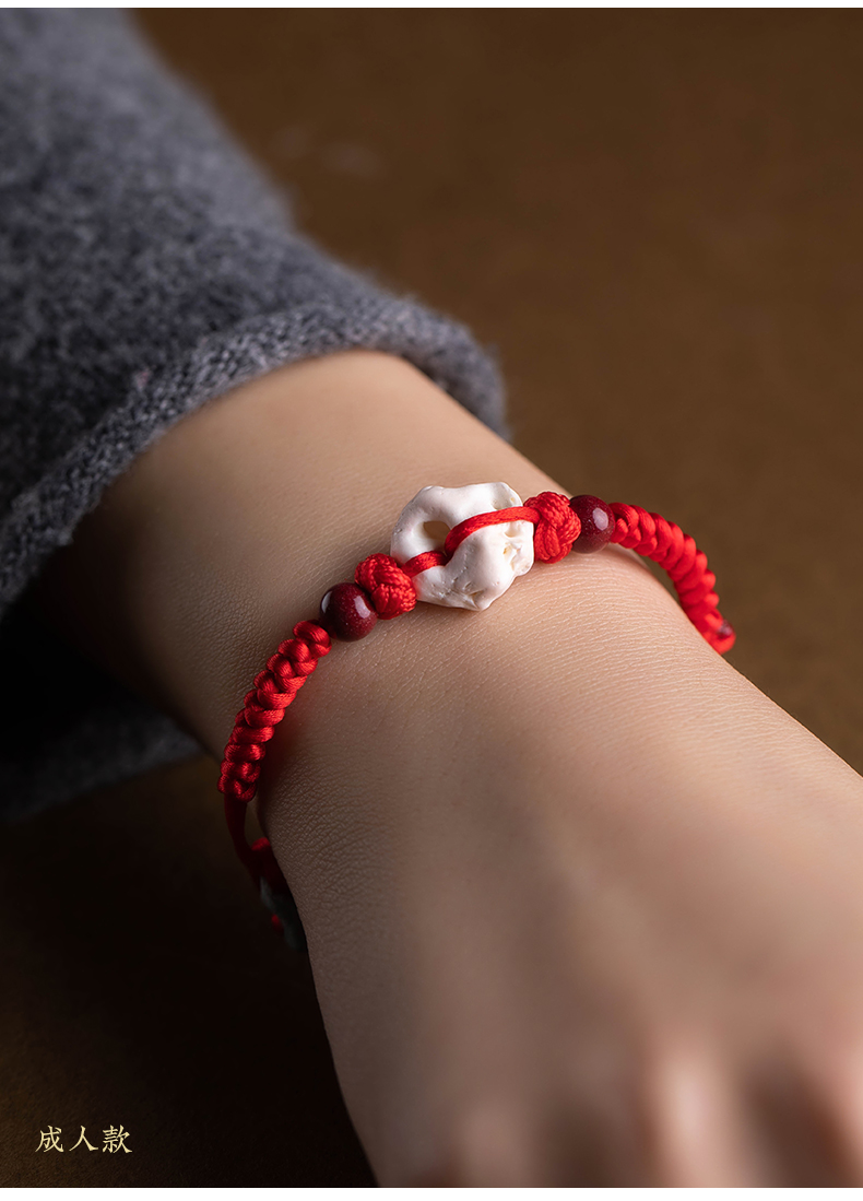 天成朱砂猪惊骨宝宝手绳可调节儿童手工编织手链本命年