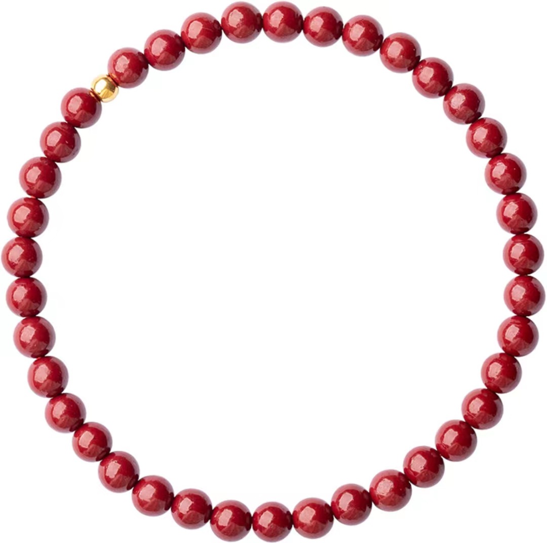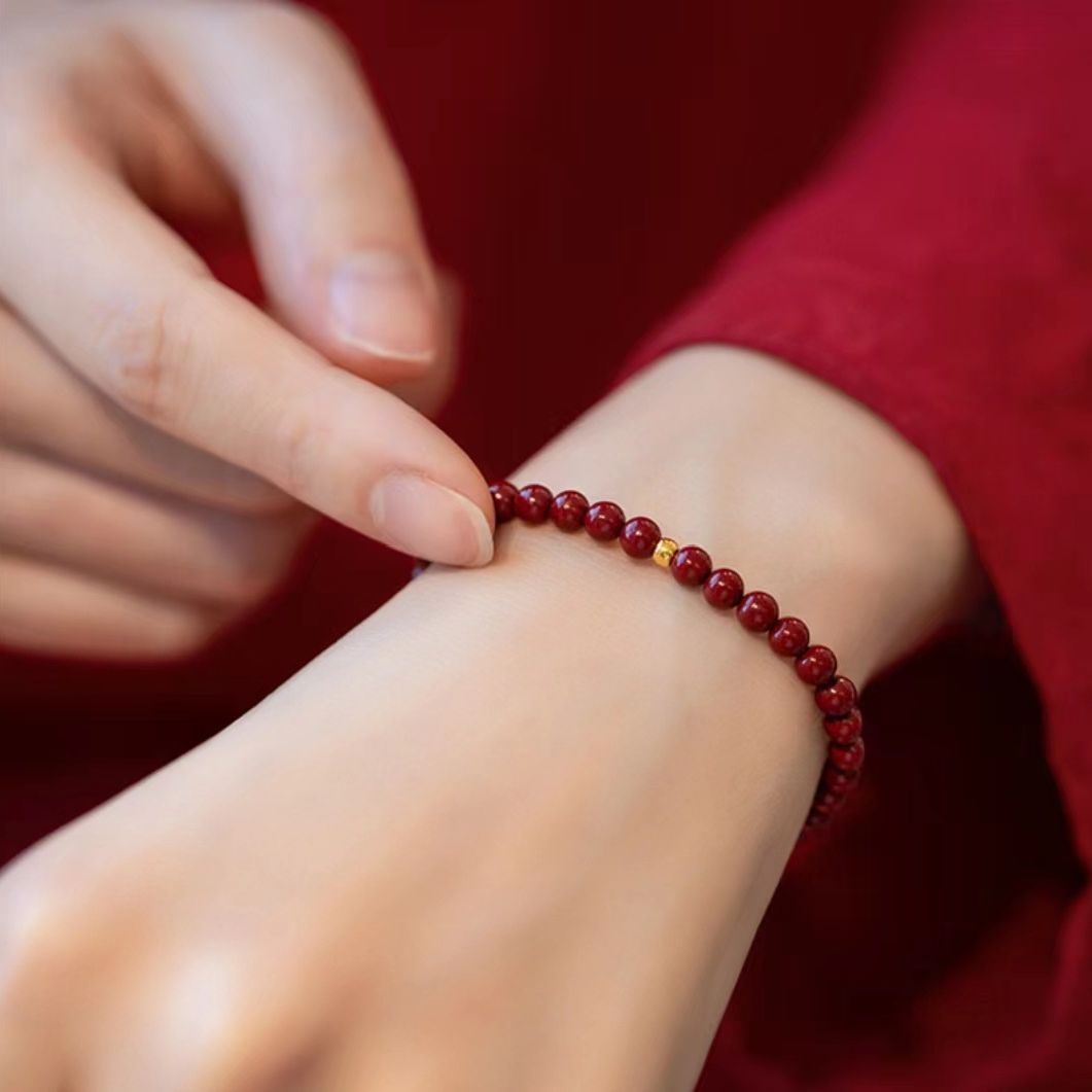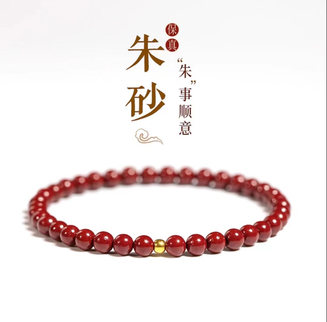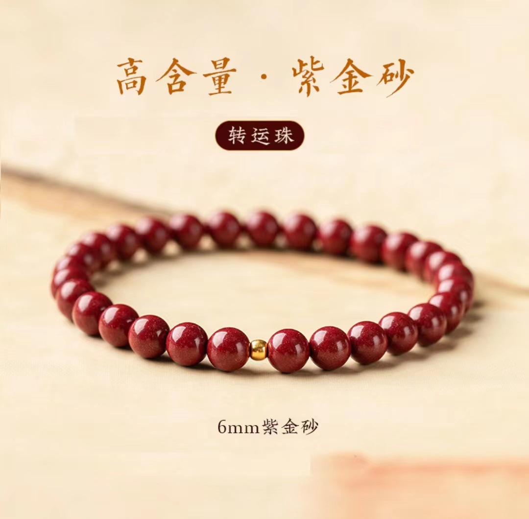 铭旺珠宝 天然原矿朱砂素圈金豆手链 属兔本命年高含量紫金砂手链