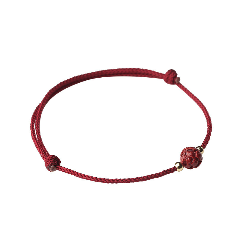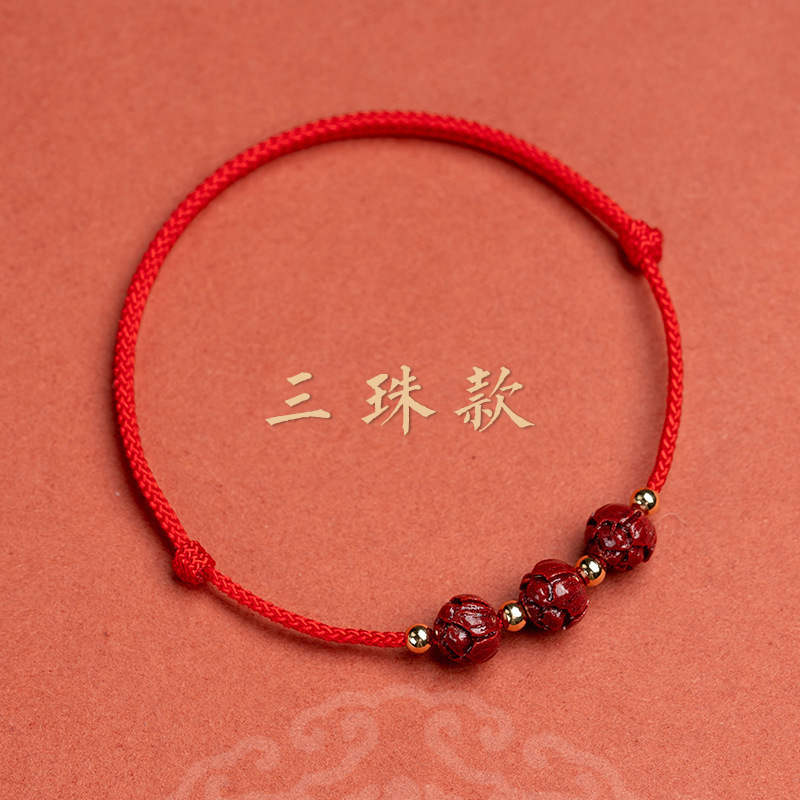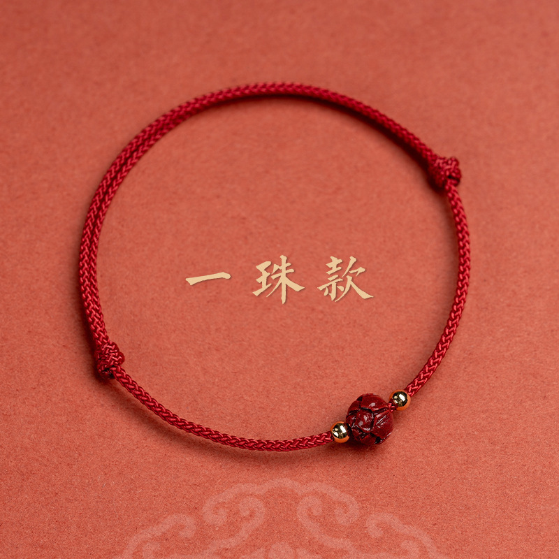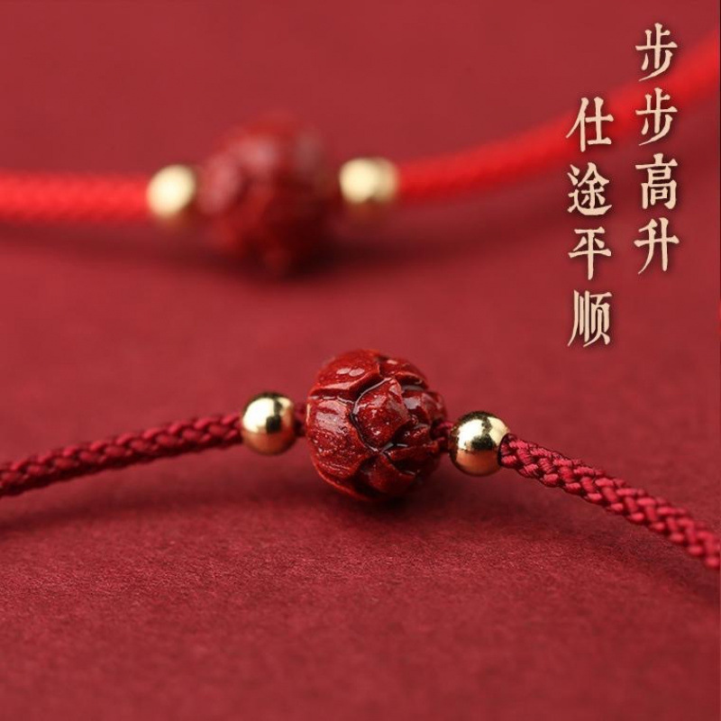 上岸朱砂莲花红绳手绳女秋冬可调节编织手链新年国潮手饰现货批发