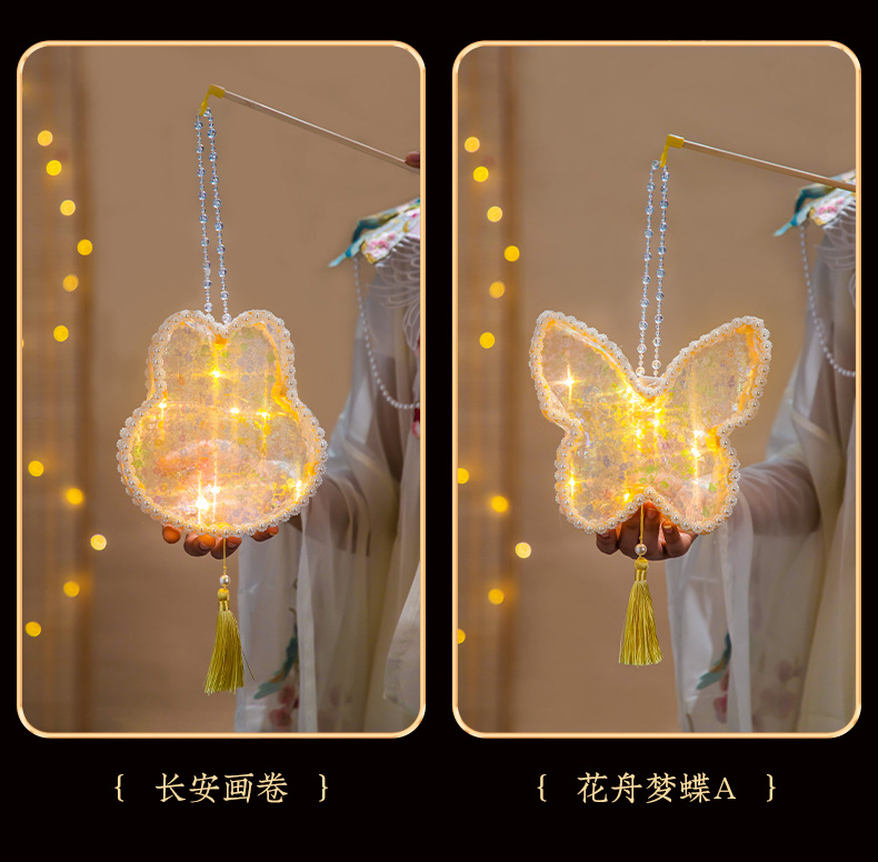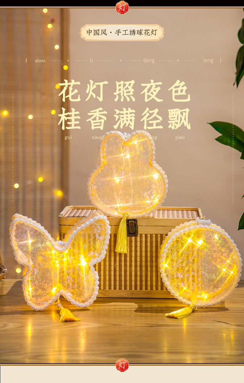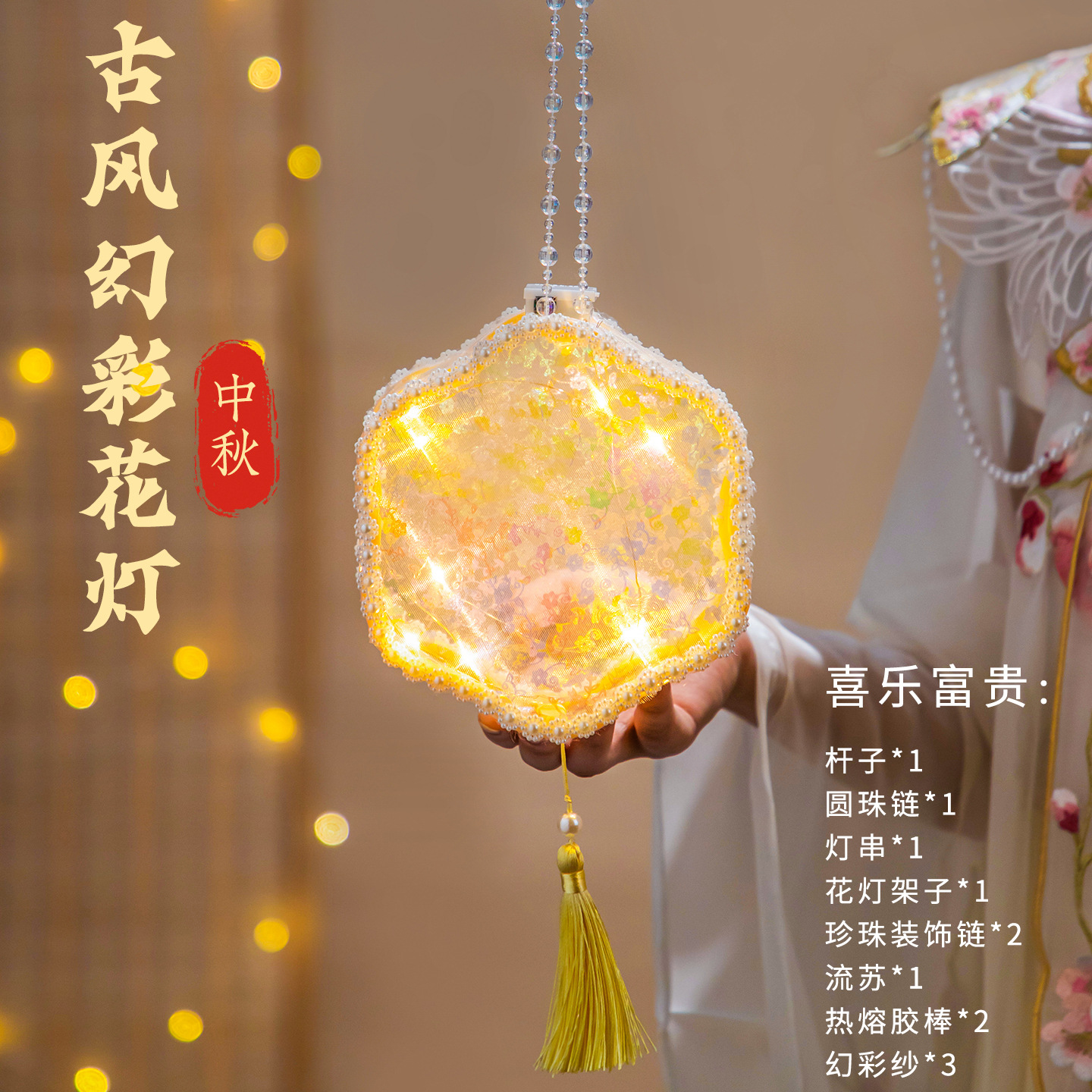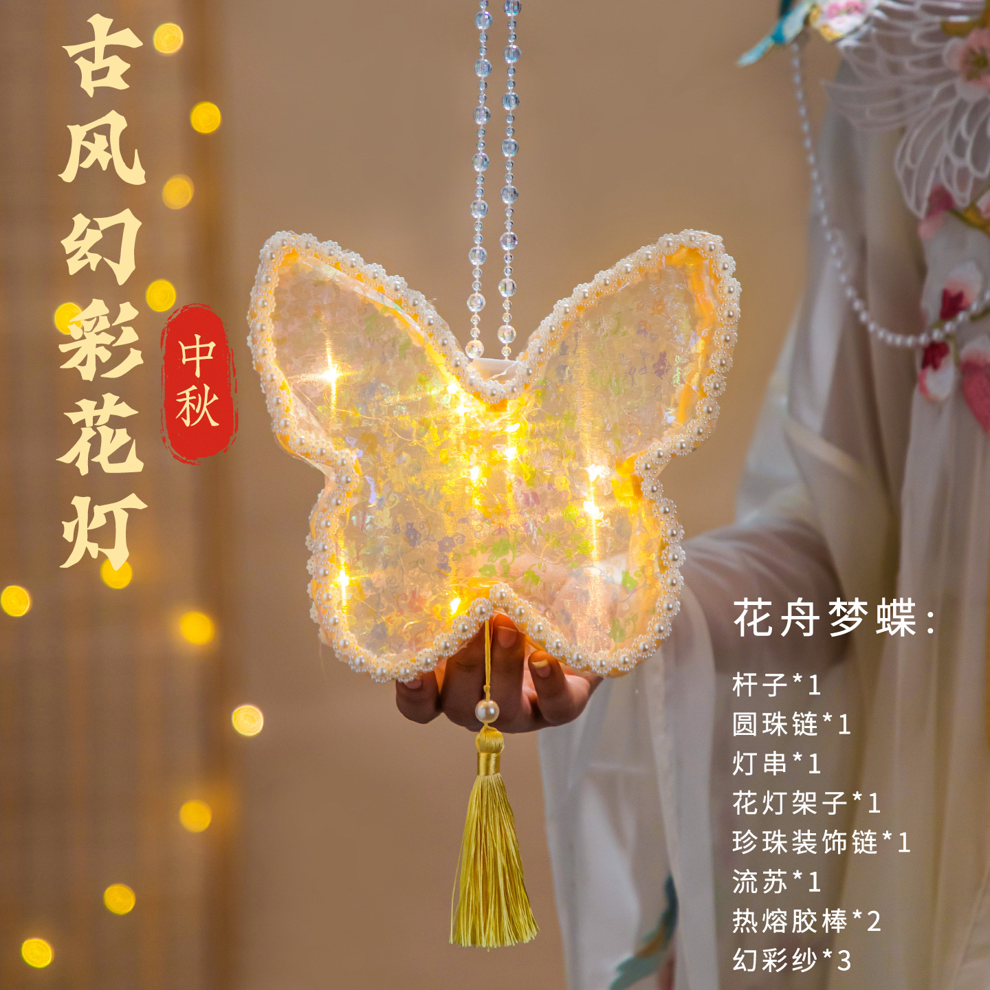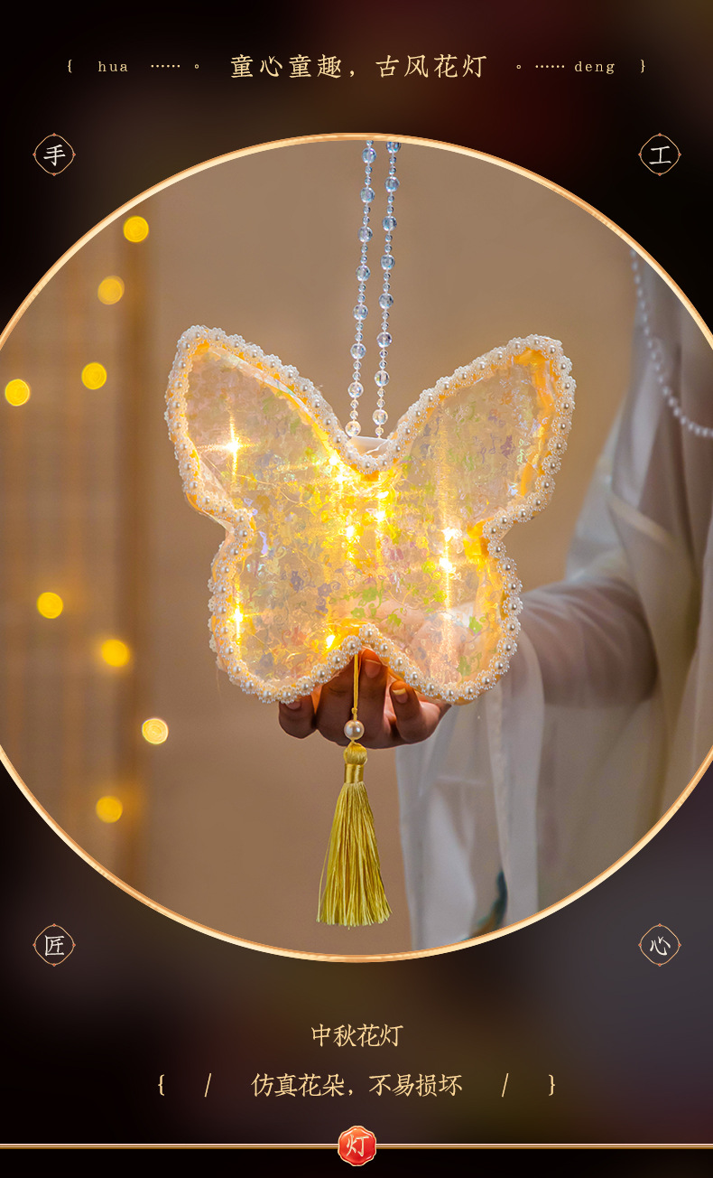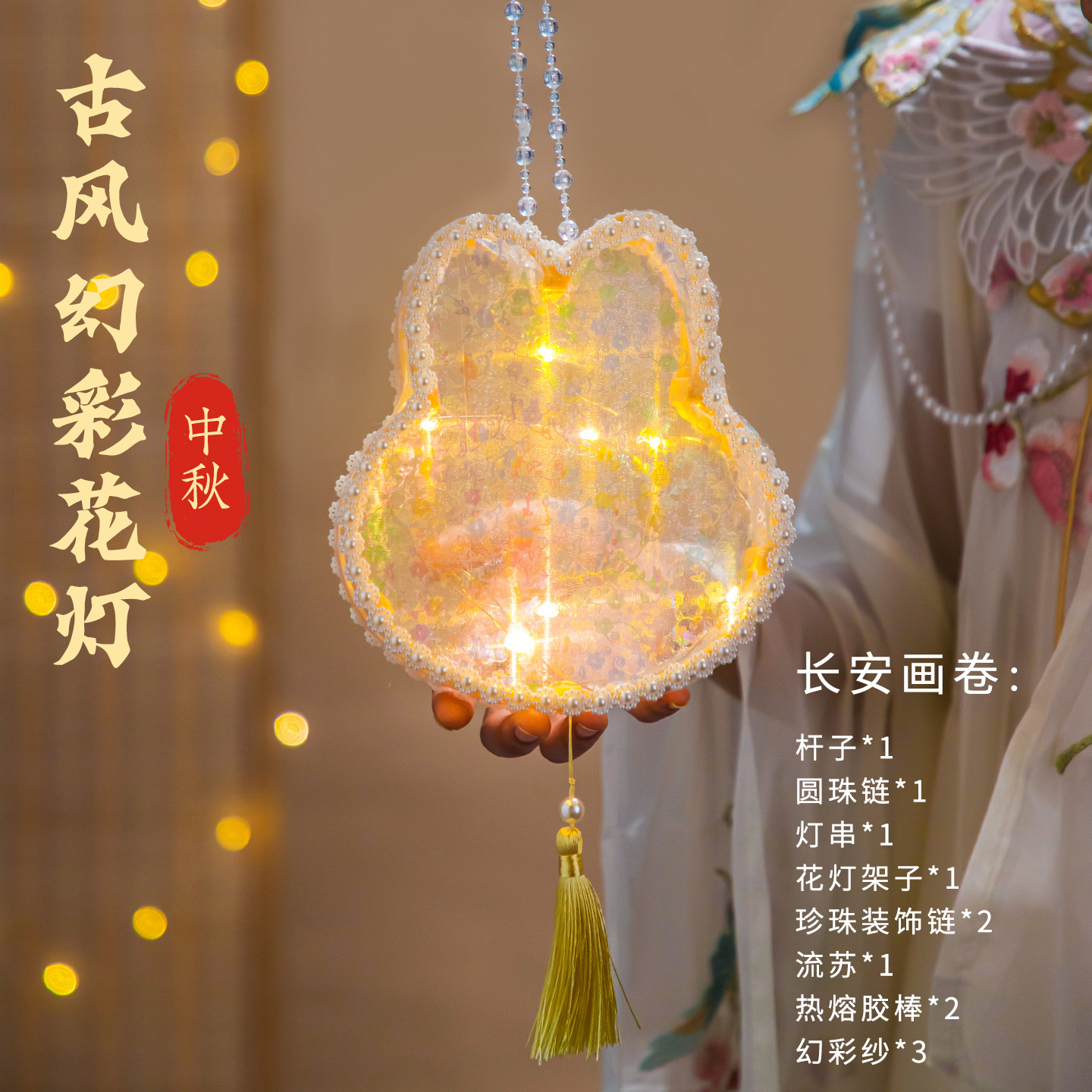 中秋灯笼新款古风小兔子蝴蝶发光手提儿童手工diy材料包幻彩花灯