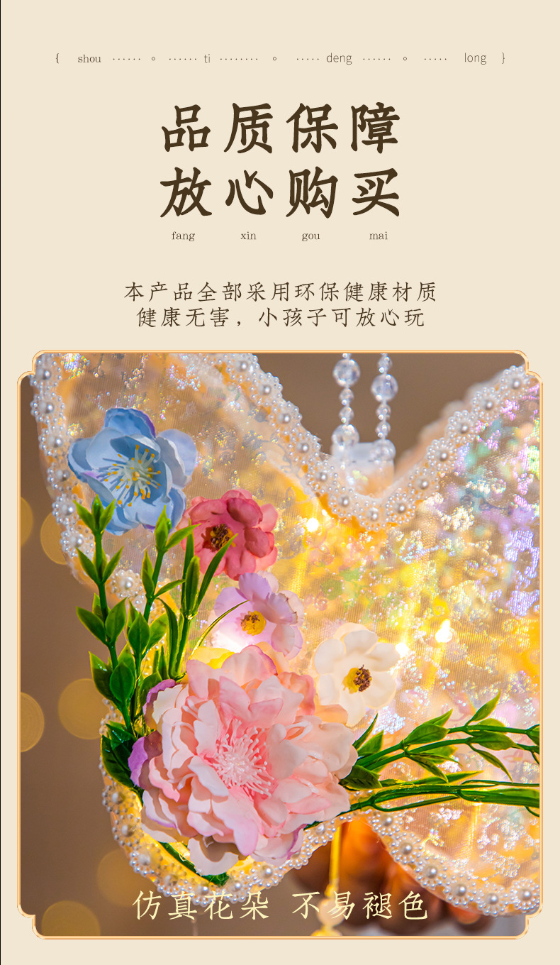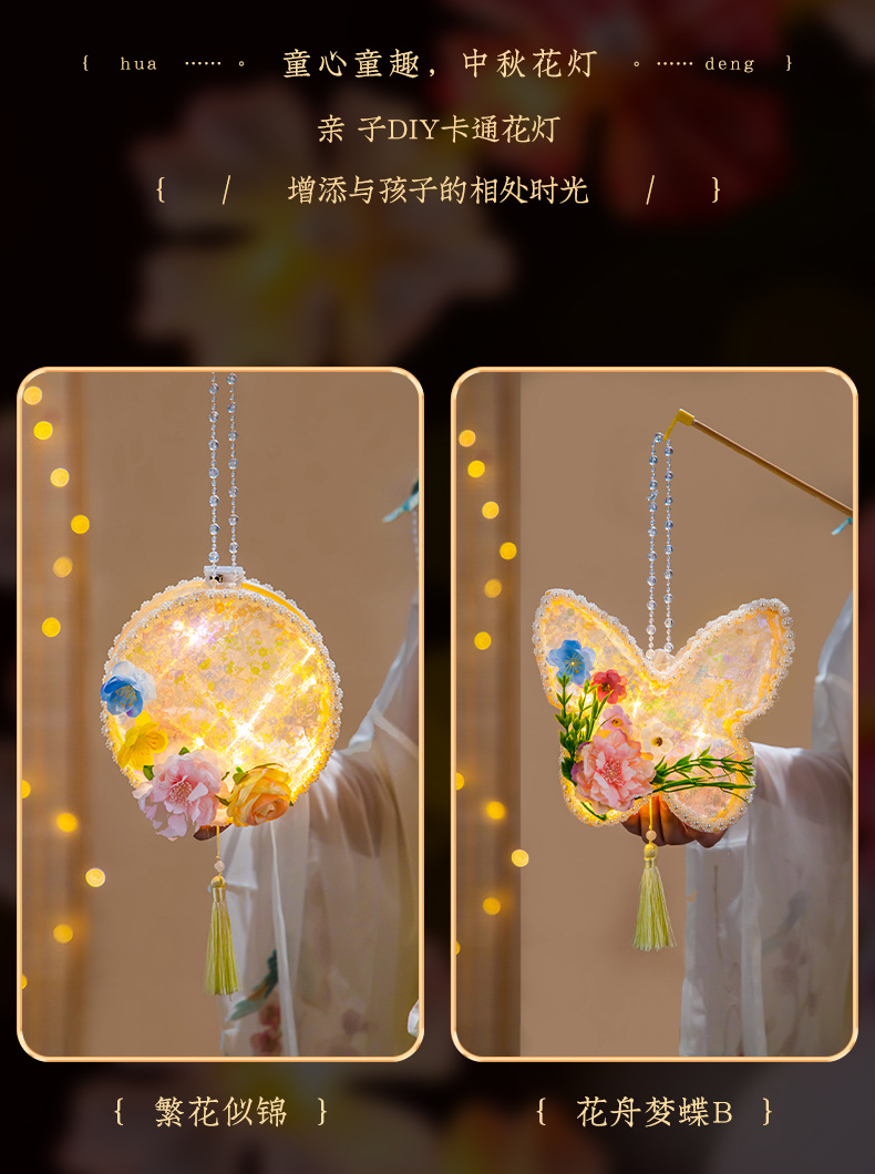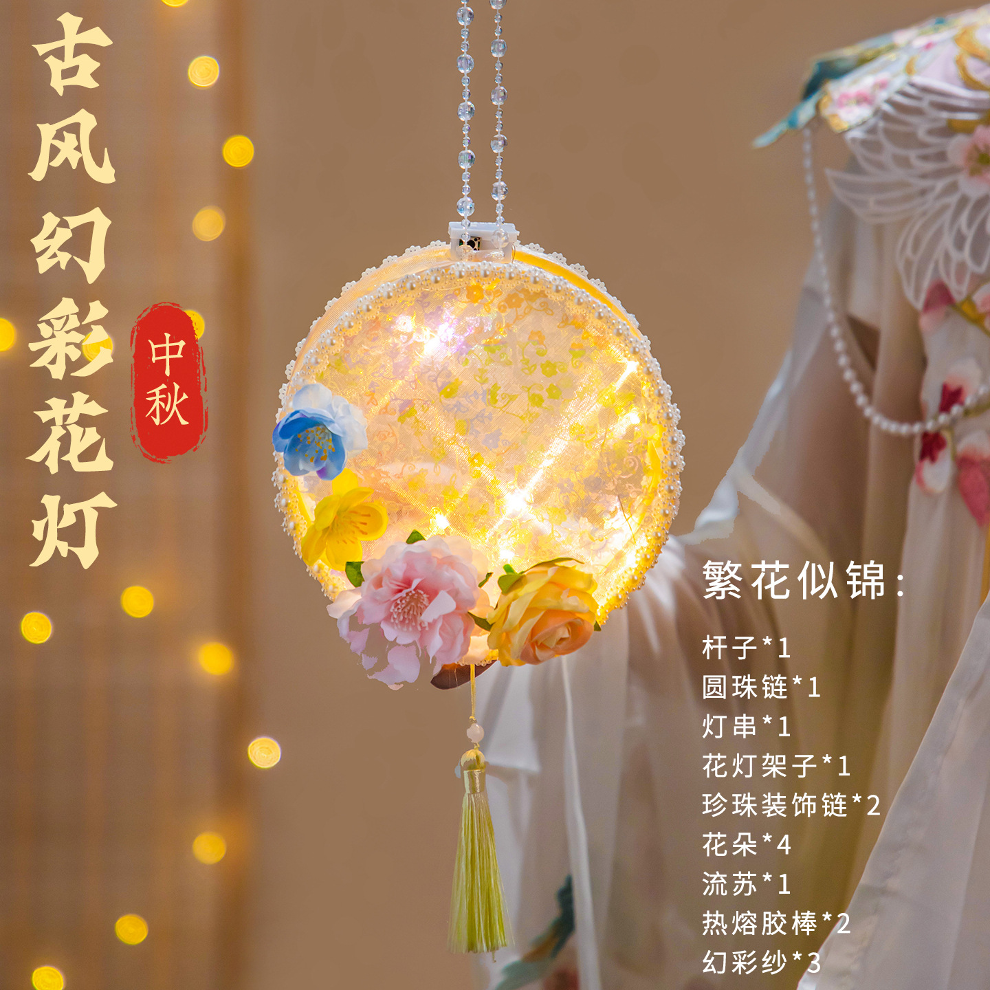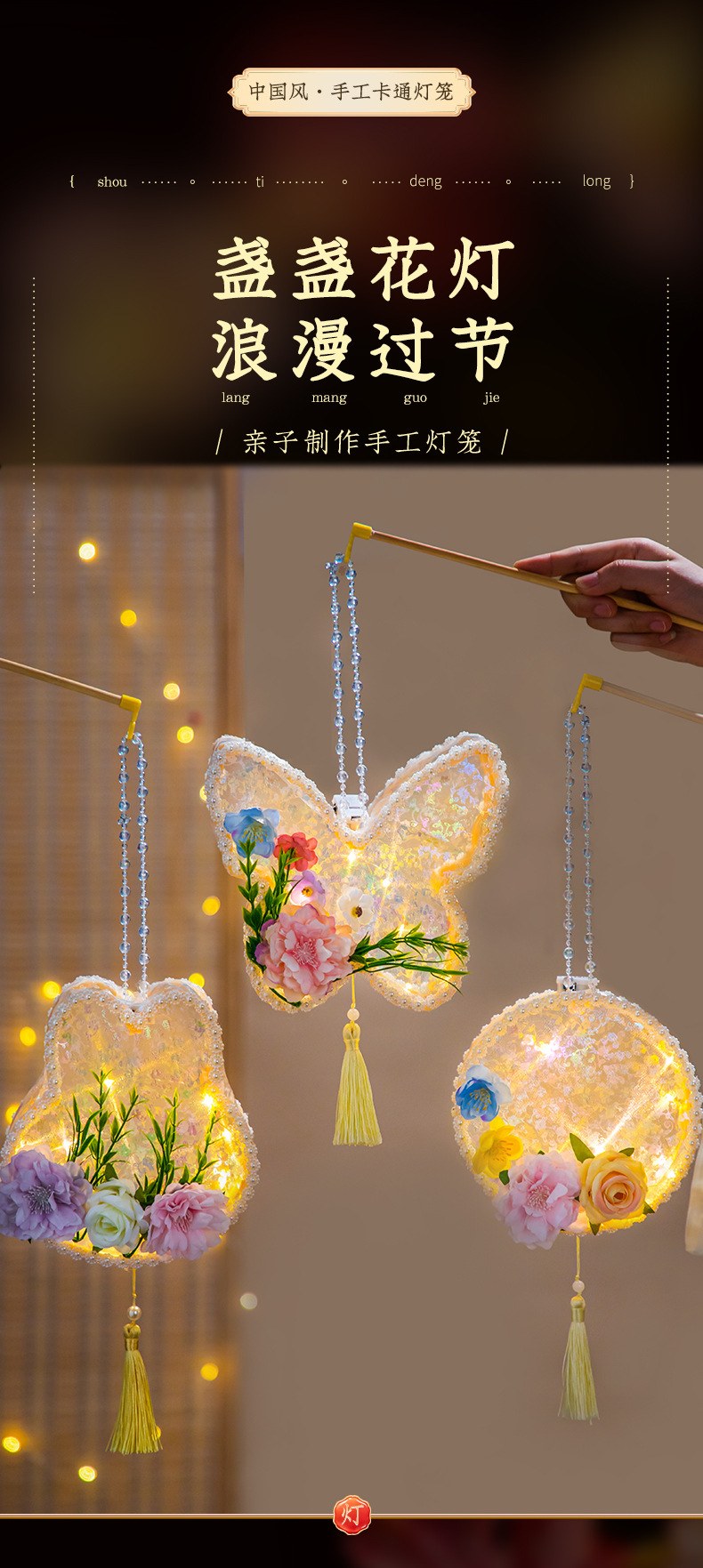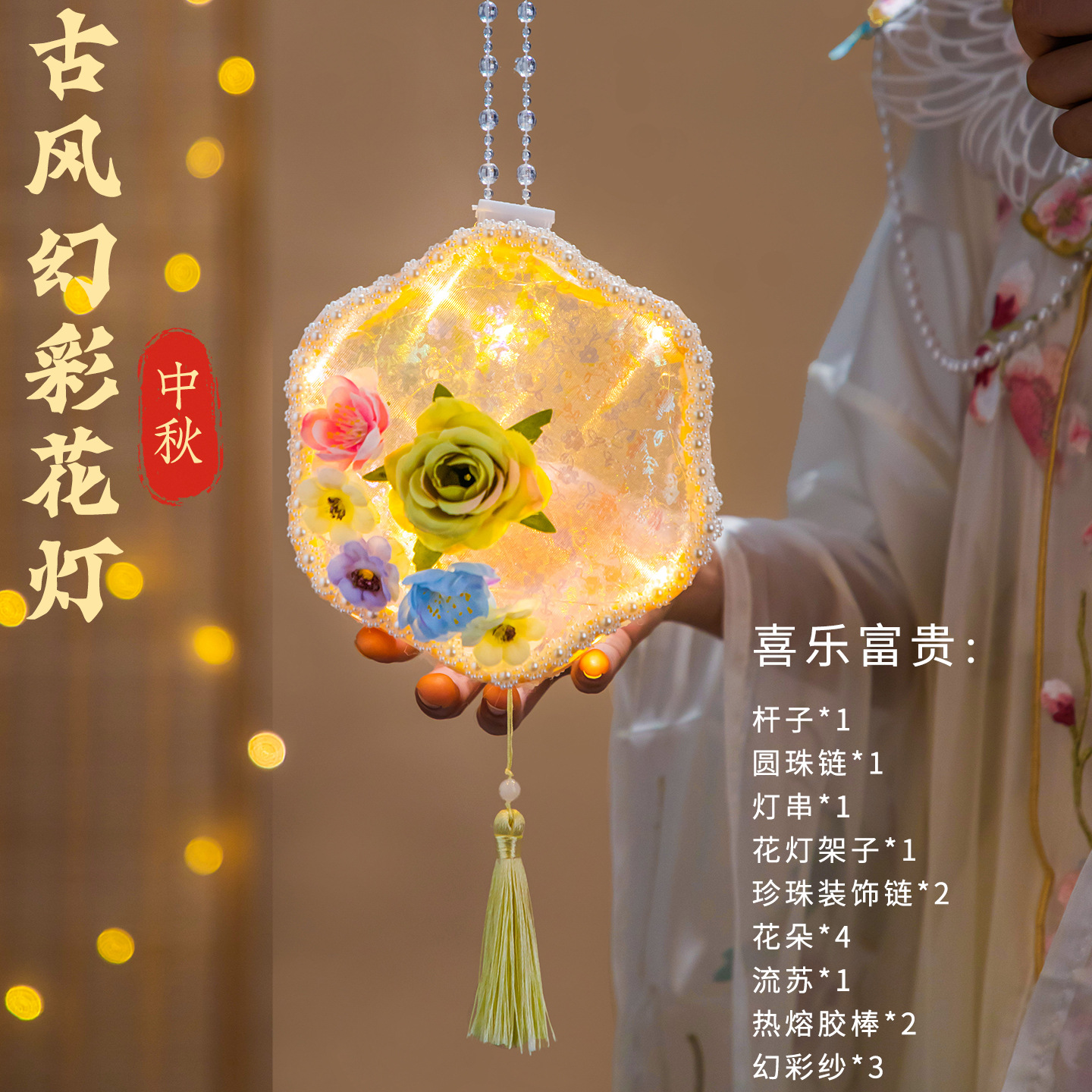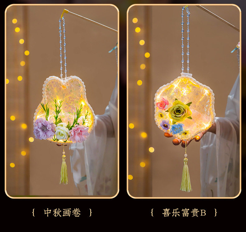 中秋灯笼新款古风小兔子蝴蝶发光手提儿童手工diy材料包幻彩花灯