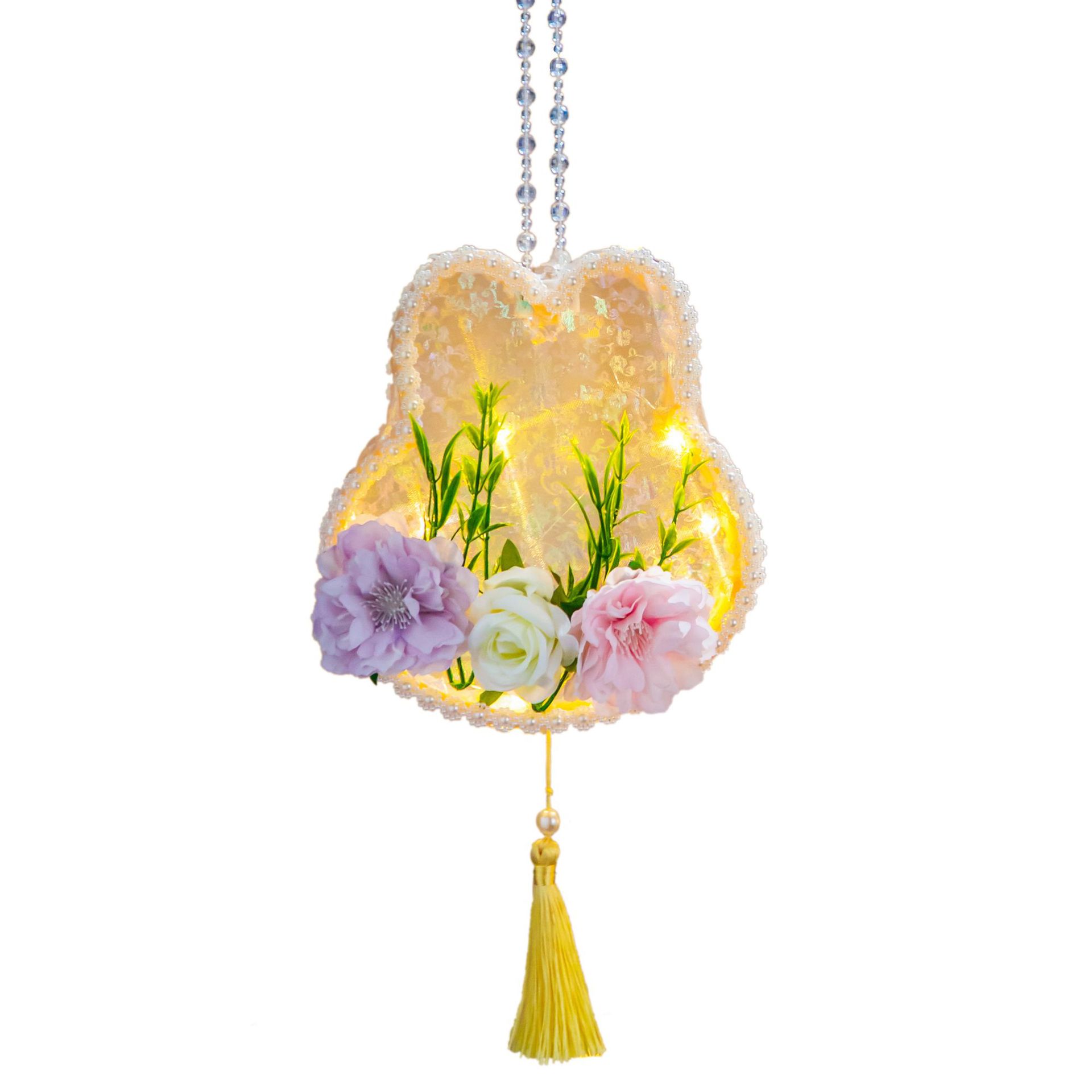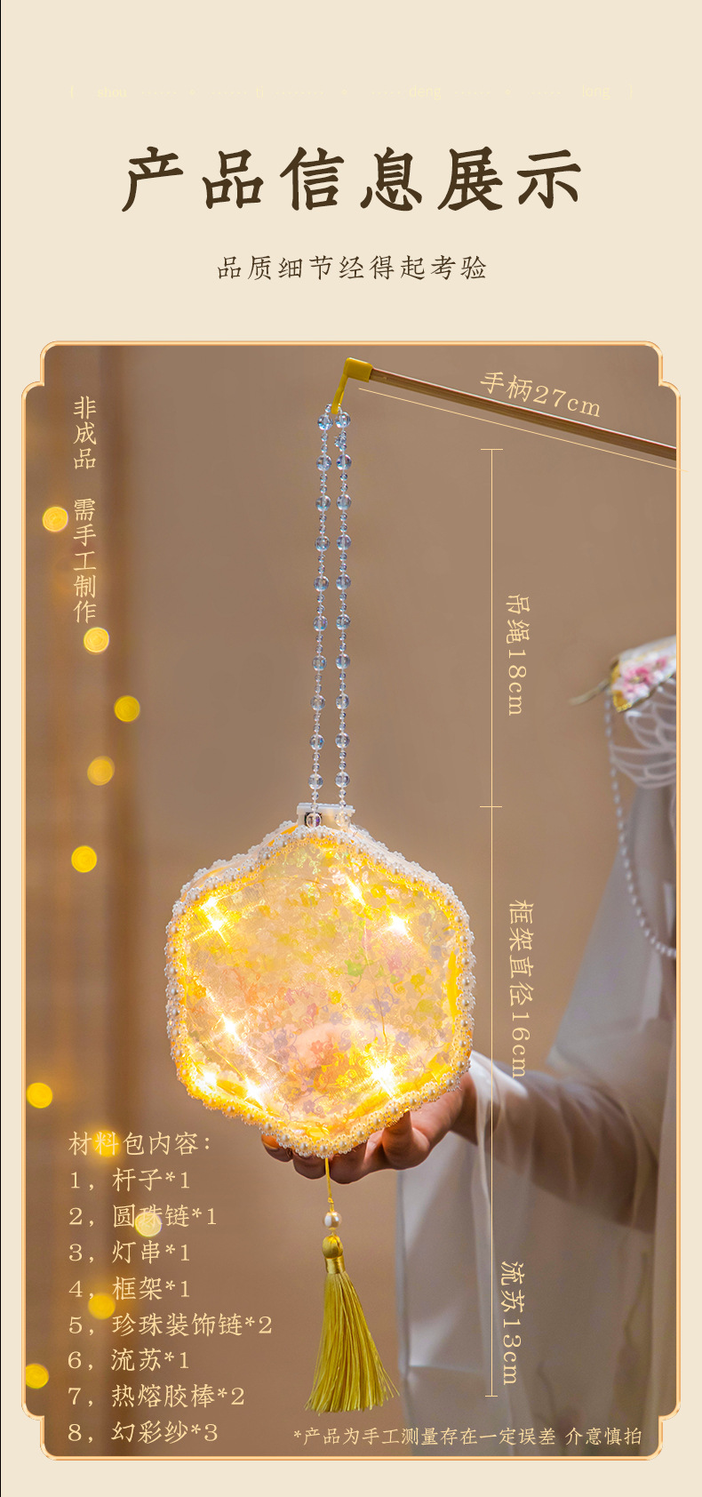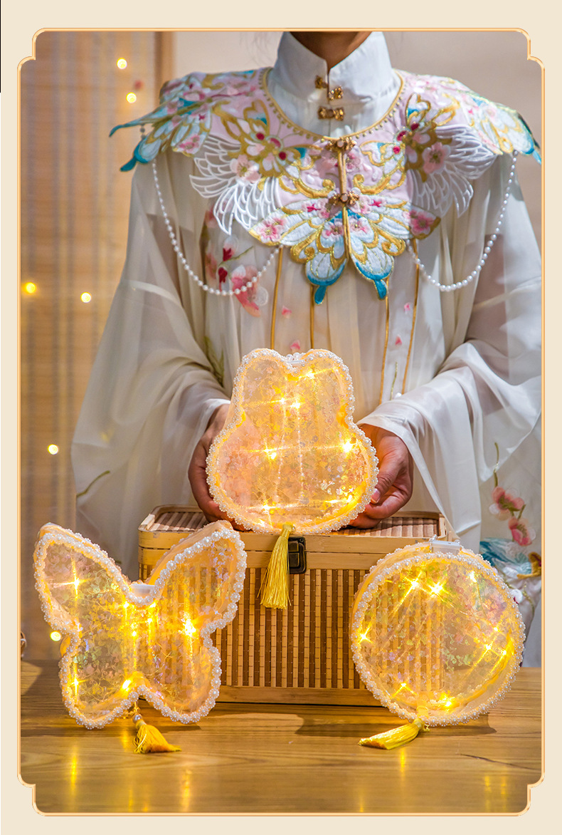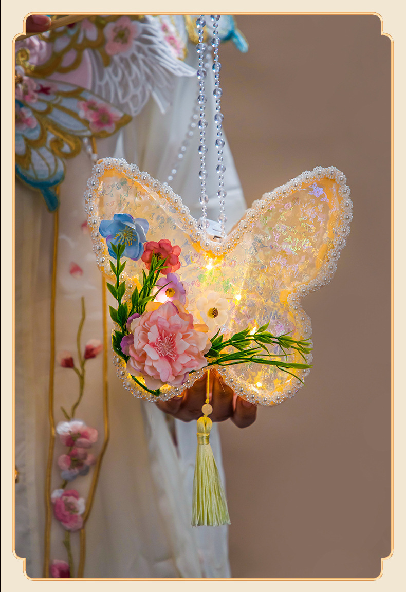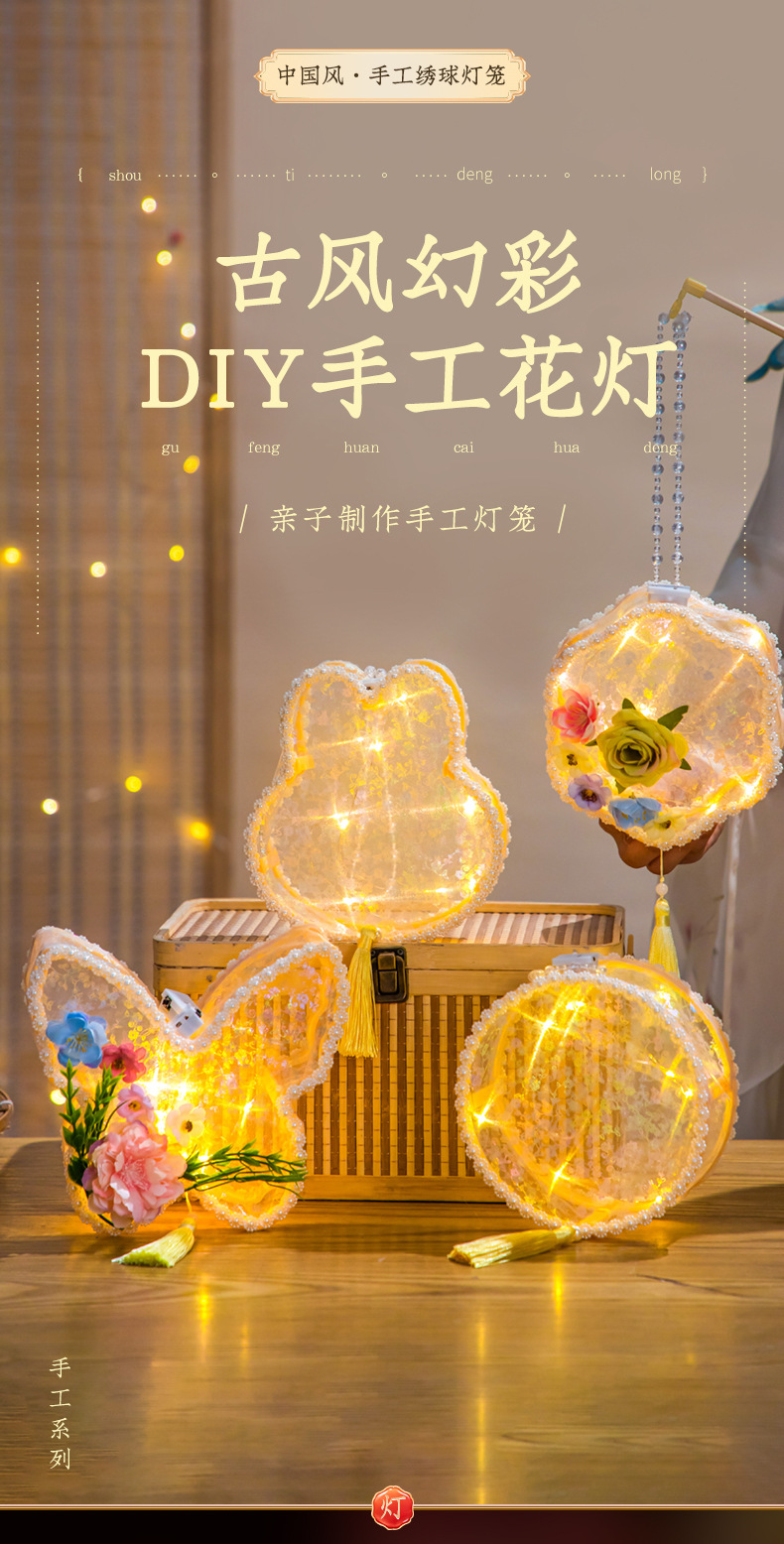 中秋灯笼新款古风小兔子蝴蝶发光手提儿童手工diy材料包幻彩花灯