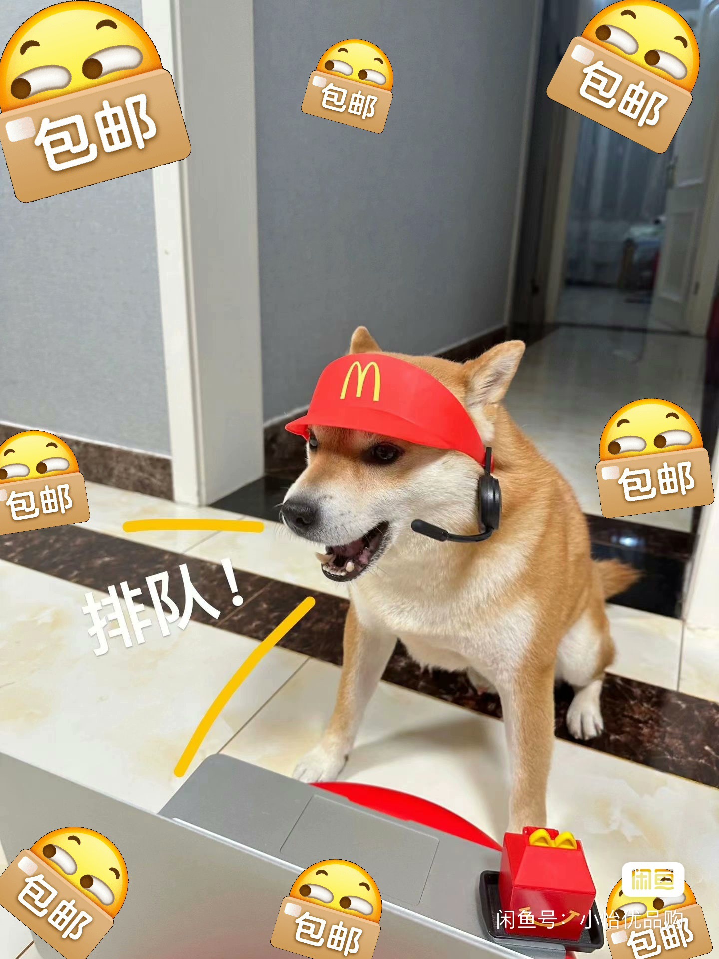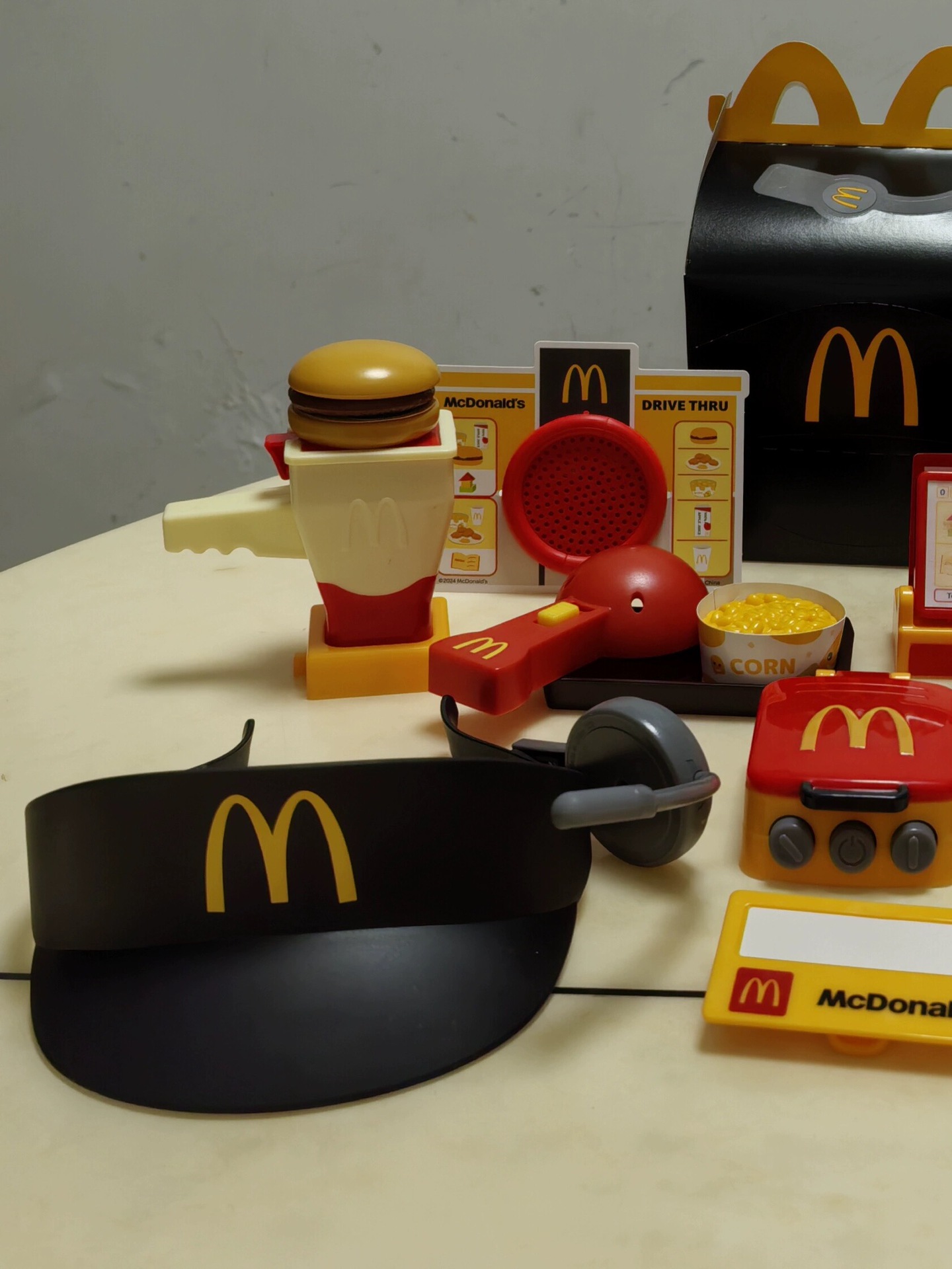 麦当劳帽子遮阳帽过家家玩具套装对讲机帽子麦当劳红帽子一件代发
