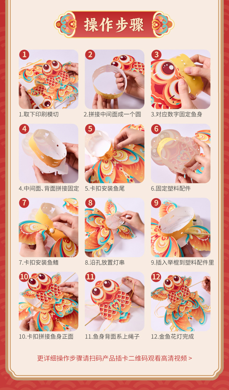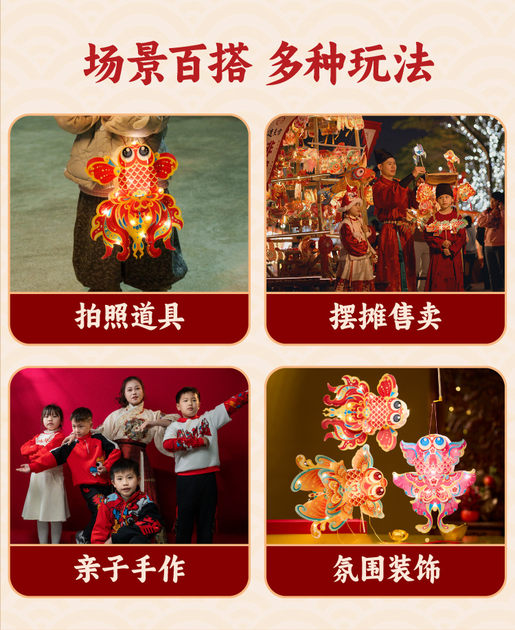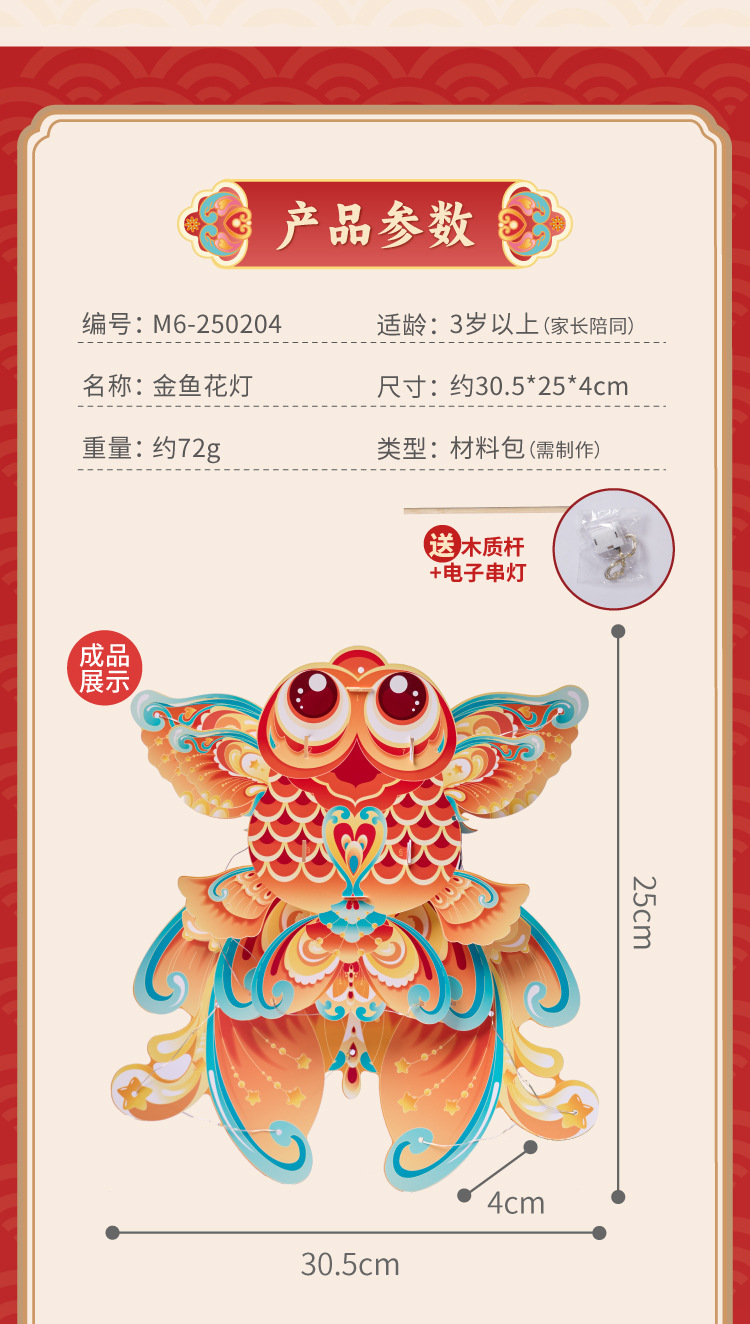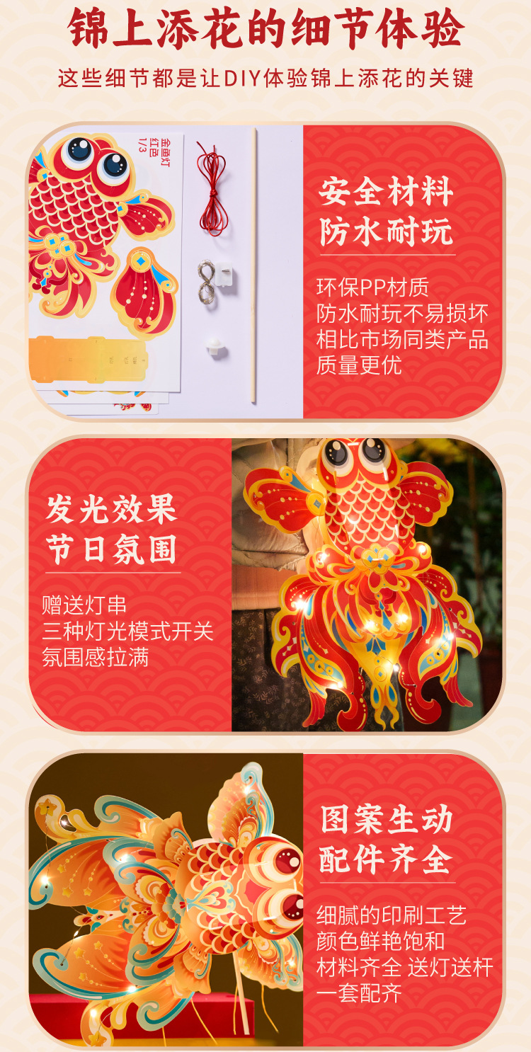 中秋节礼物非遗金鱼花灯手工材料包儿童diy金鱼古风灯笼拍照道具