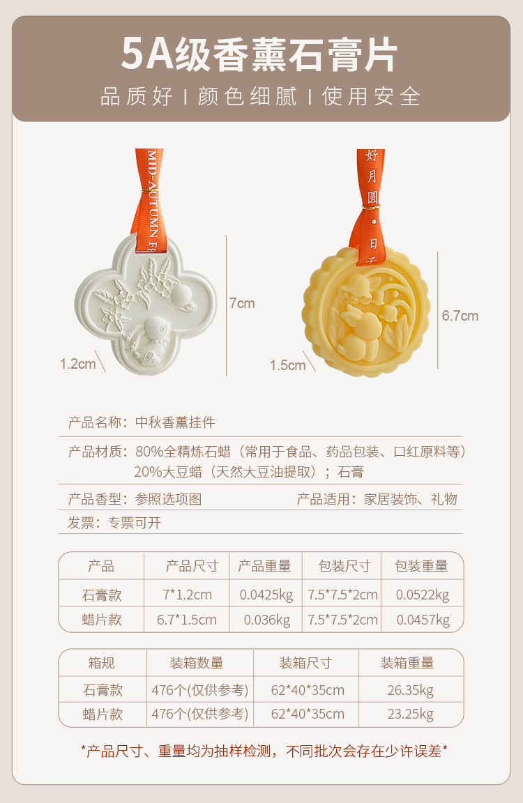 创意中秋礼物定制伴手礼衣柜香薰蜡片手工香氛家用扩香石膏片挂件