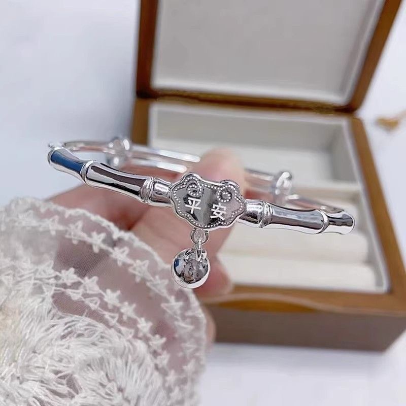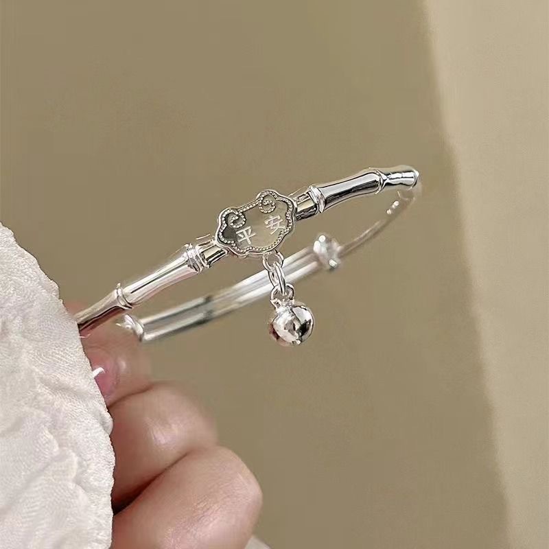 竹节手镯女平安锁铃铛镯子小众年轻款送女友礼物