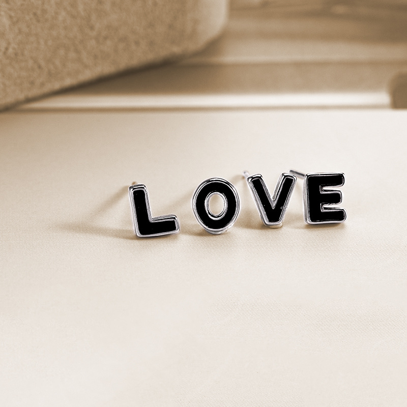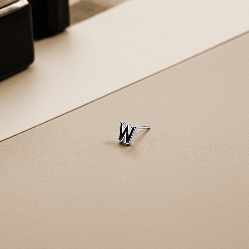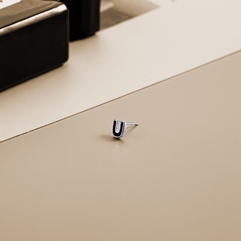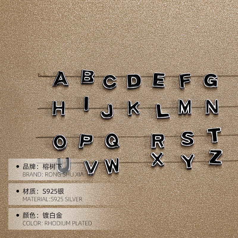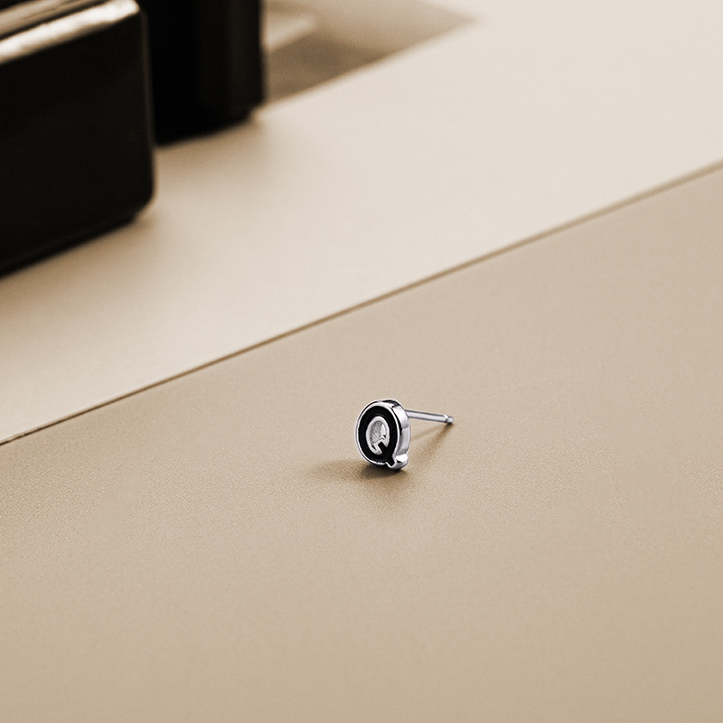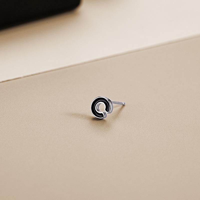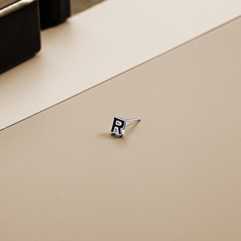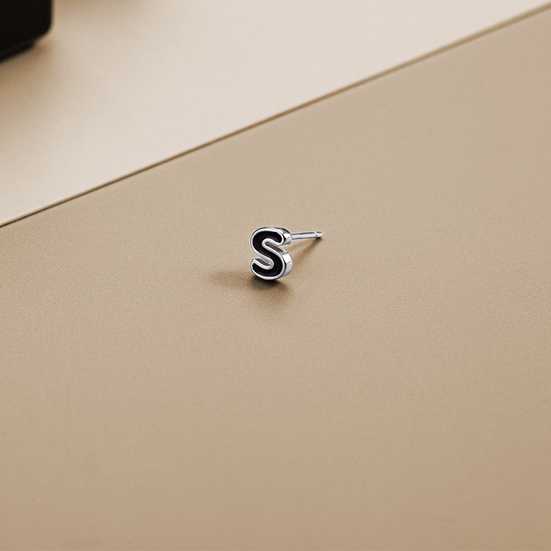 榕树下S925银黑色滴胶26个字母耳钉简约个性男女潮酷单只耳环耳饰