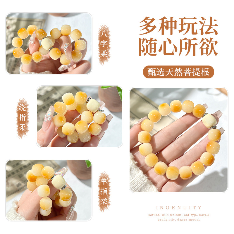 天然炭烧白玉菩提根绕指柔菩提子手串女文玩佛珠男盘玩手饰品批发